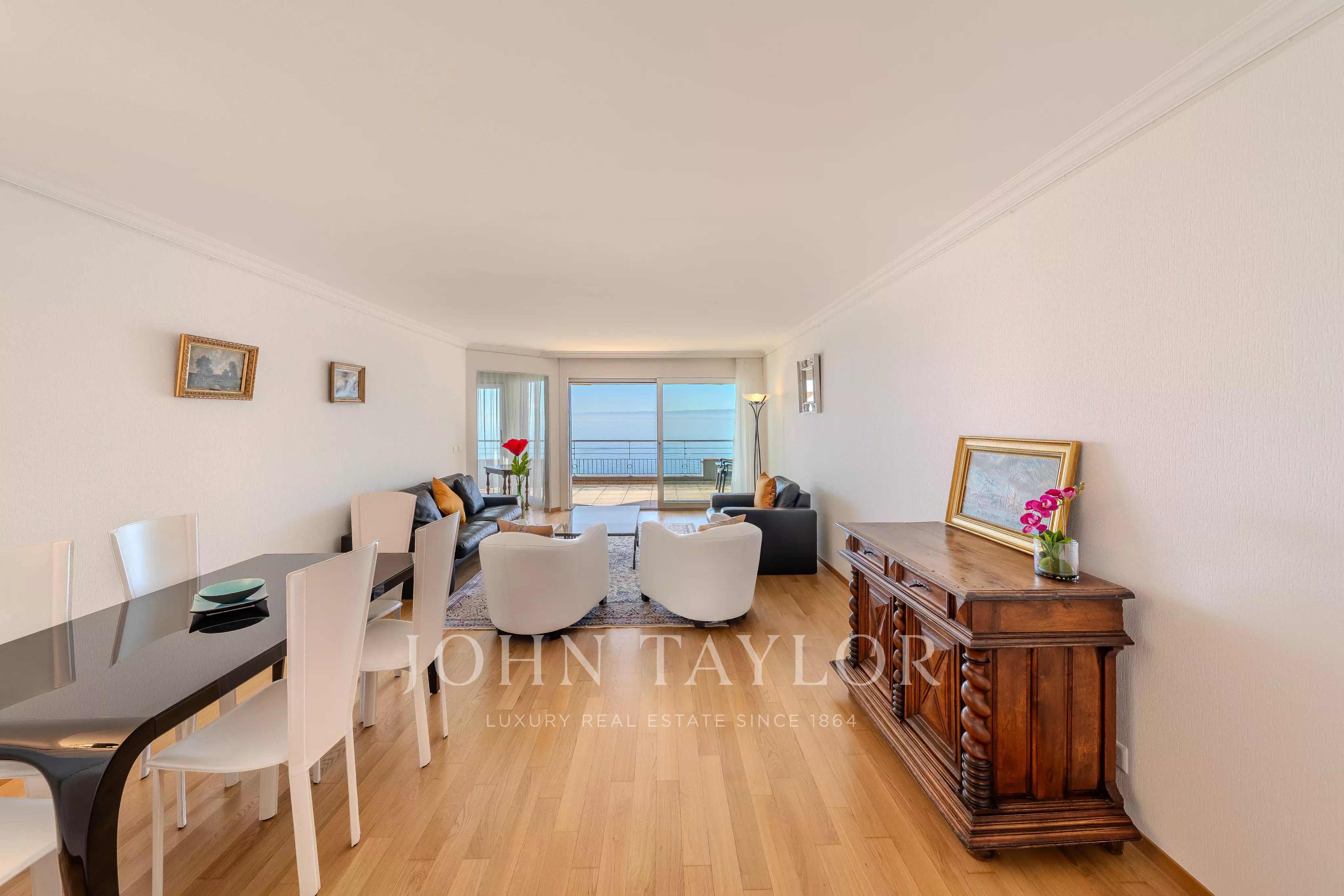 Bietet einen seltenen und begehrten Lebensraum, überzeugt diese Immobilie durch ihre harmonischen Volumen und ihr außergewöhnliches Licht, dank großer Panoramafenster, die auf einen wunderschönen 18 m² großen Balkon öffnen, der eine echte Verlängerung des Wohnraums darstellt, mit Blick auf das spektakuläre Panorama des Sees und der Alpen.