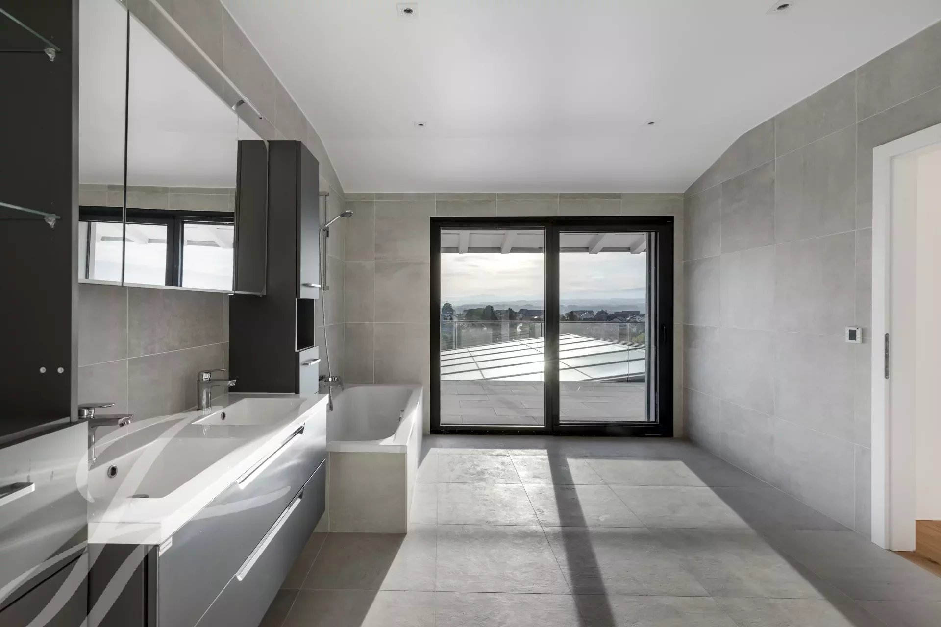 Das Untergeschoss wurde ebenfalls sorgfältig ausgebaut und beherbergt eine Waschküche, ein Dampfbad, eine Sauna, einen Weinkeller sowie verschiedene technische Räume für Ihren Komfort.