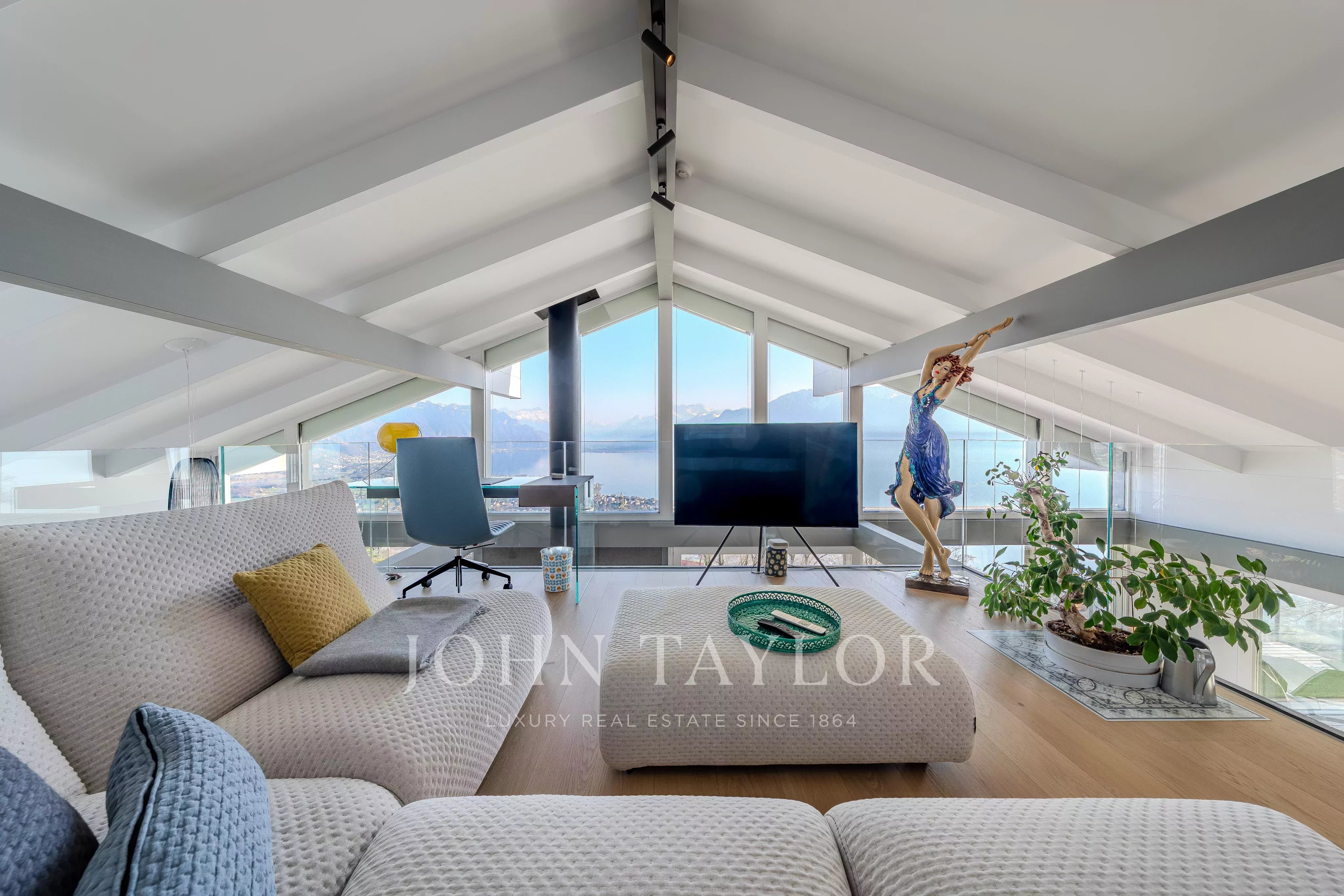 -Sie genießt einen spektakulären Blick auf den Genfer See und die Alpen, der zu den schönsten der Region gehört.