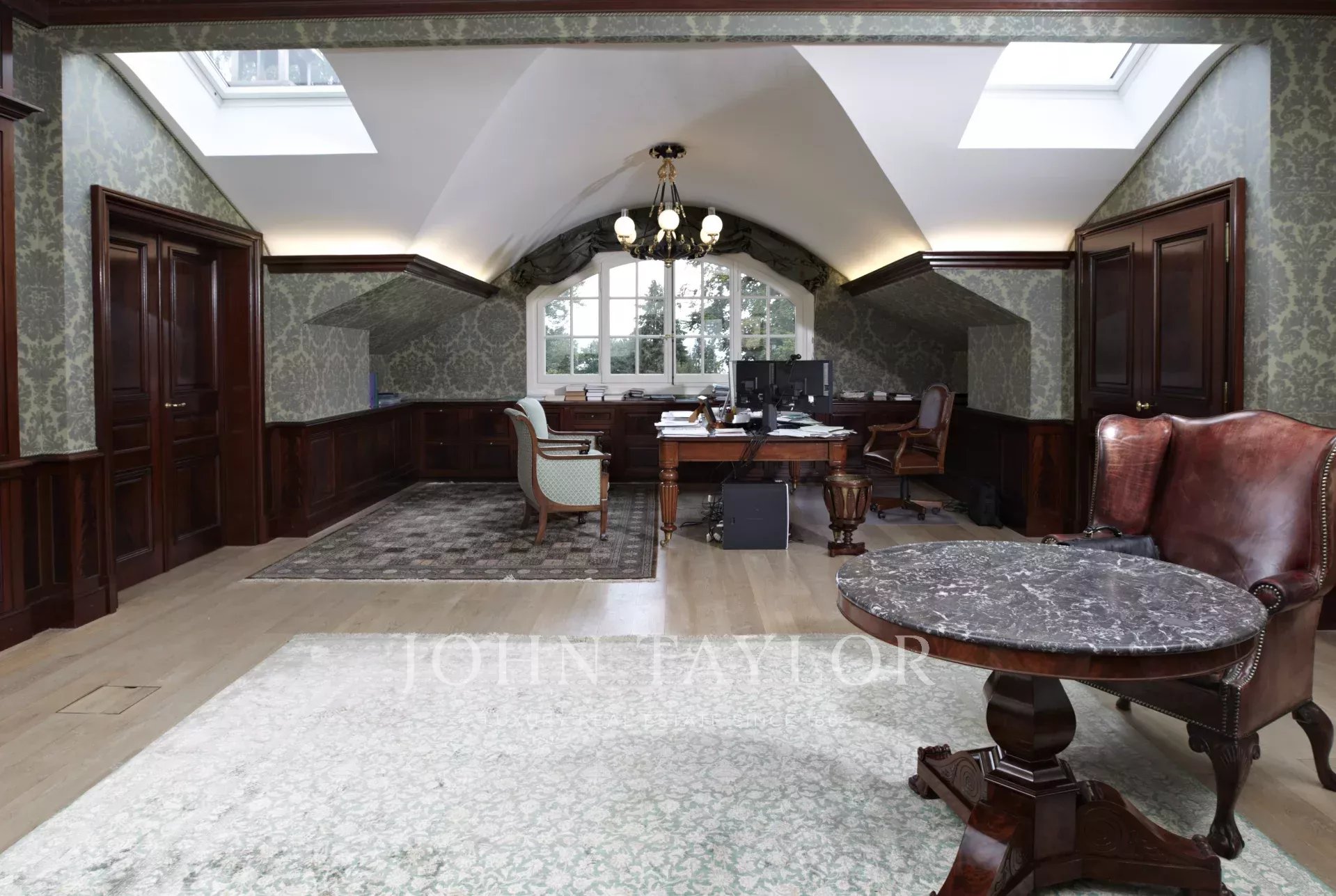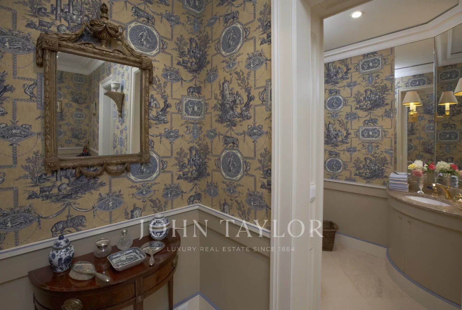 Alle Etagen sind über eine majestätische Treppe oder einen Aufzug erreichbar. Die Küche ist voll ausgestattet, die großen und hellen Wohnräume gehen auf einen wunderschön gepflegten Garten hinaus. Die Schlafbereiche verfügen über neun Schlafzimmer, darunter sieben Suiten.
