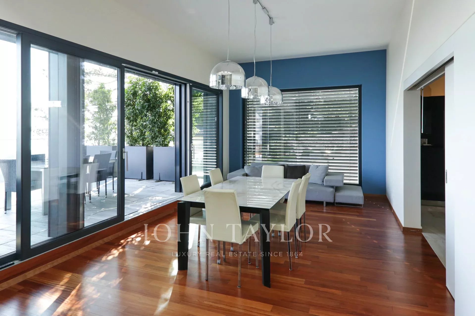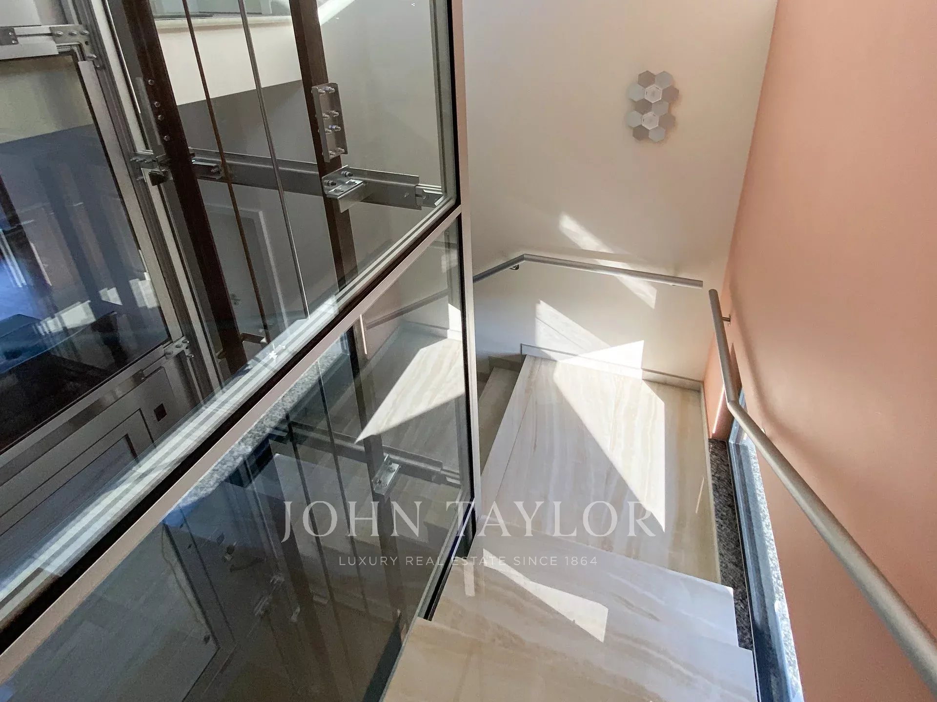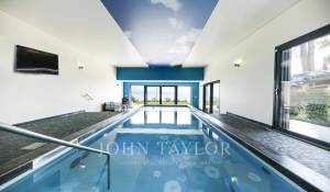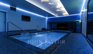 Zu den modernen Annehmlichkeiten gehören ein Aufzug, ein Fitnessraum mit Sauna und ein in den großen Innenpool integrierter Whirlpool, der für unvergleichliche Entspannungsmomente sorgt. Der von Landschaftslichtern gesäumte Entspannungspool im Freien im ersten Stock wird während der Sommermonate zum Anziehungspunkt. Elektrische Jalousien und ein ausgeklügeltes Alarmsystem tragen zum Komfort und zur Sicherheit dieser Residenz bei.