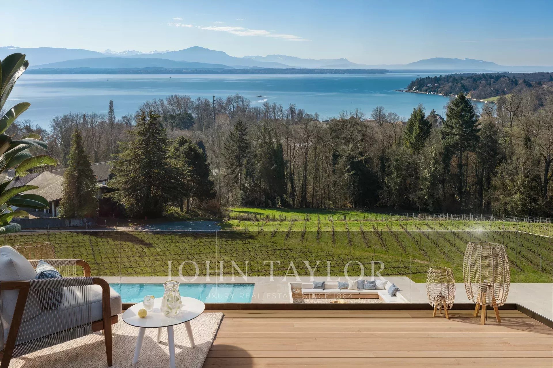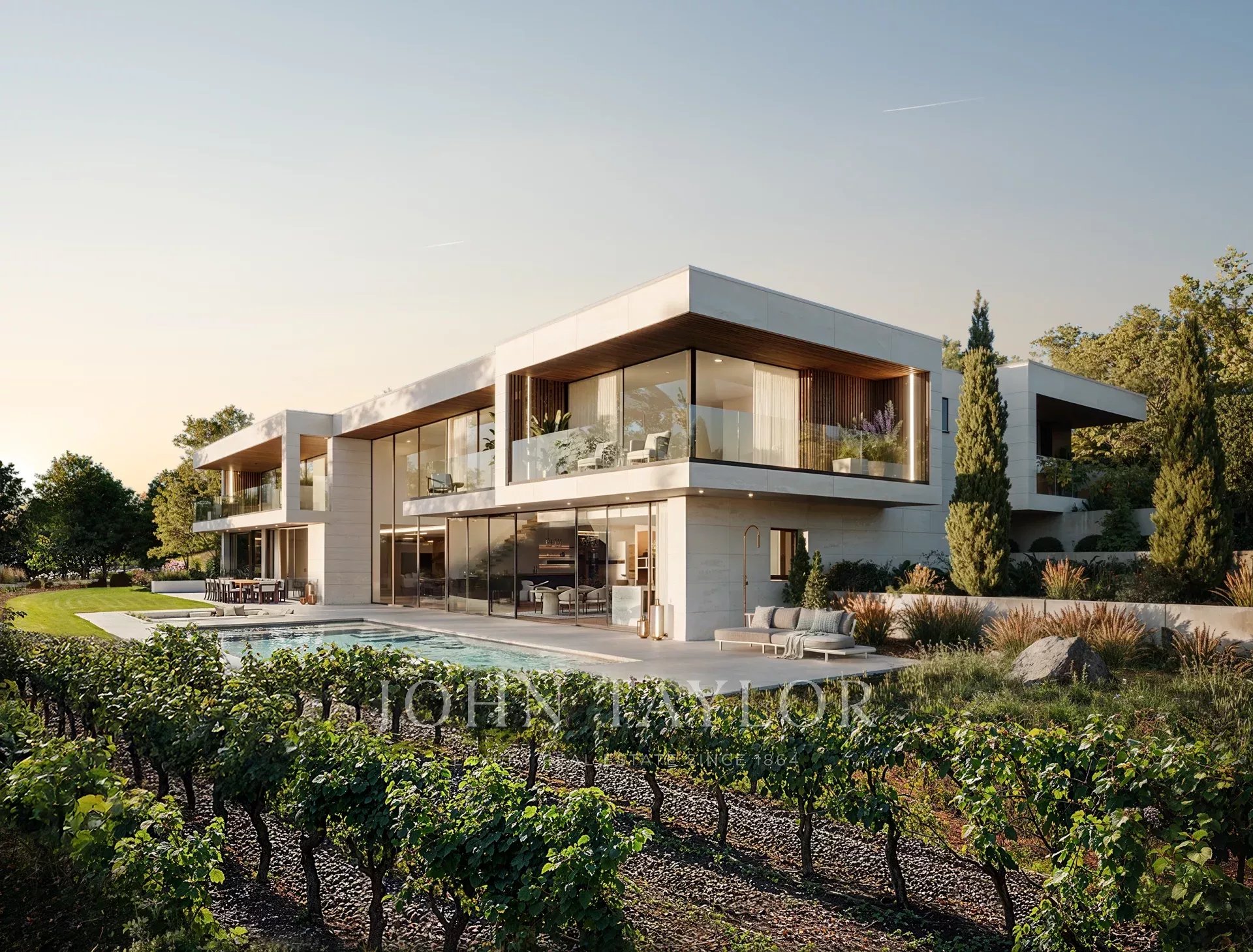 -Zeitgenössische Architektur mit klaren Linien und edlen Materialien.