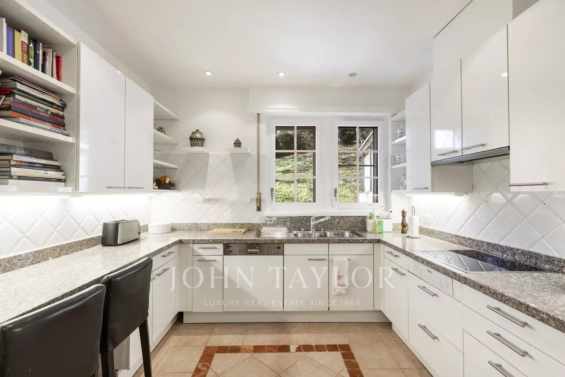 Beide Wohnzimmer bieten Zugang zu einer komfortablen Terrasse und zum Garten. Eine geräumige Küche mit Esszimmer, die sich zum wunderschönen Garten hin öffnet, sowie eine zweite Terrasse bieten die Möglichkeit, die schönen späten Sommerabende zu genießen.