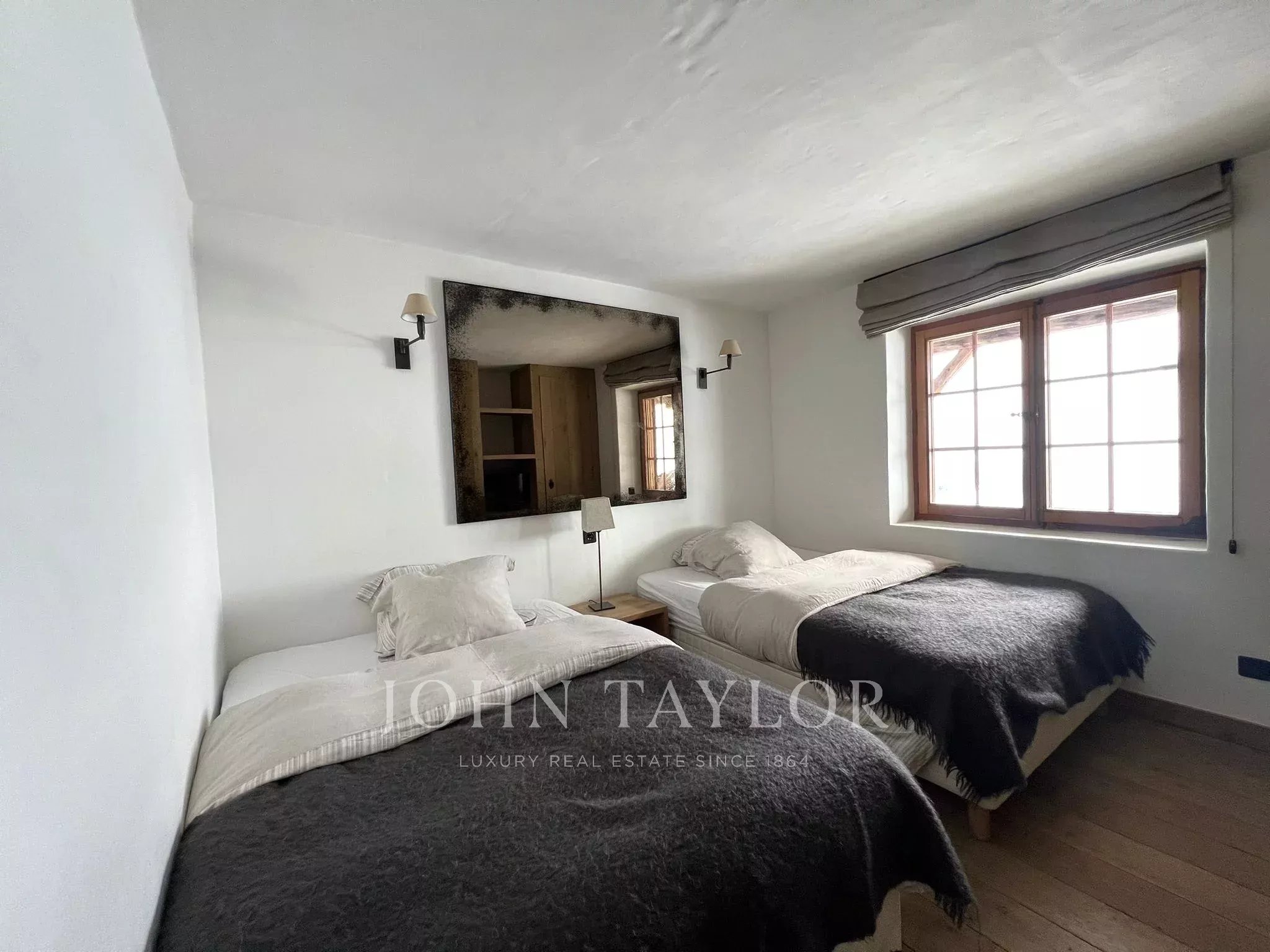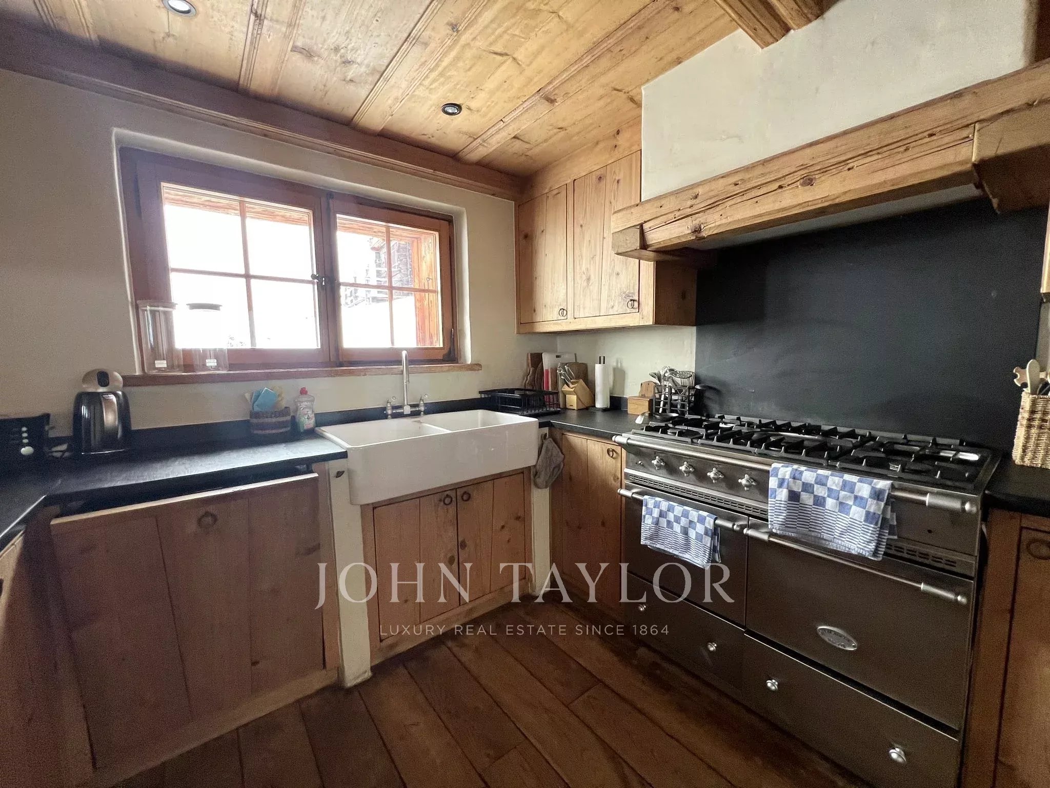 Im Inneren bietet die Immobilie helle und komfortable Wohnräume mit großen Fenstern, die das spektakuläre Bergpanorama perfekt einrahmen. Die Schlafzimmer sind ruhig und einladend gestaltet, mit natürlichen Materialien und sanften Farbtönen, die nach einem Tag auf der Piste einen erholsamen Rückzugsort bieten. Das Chalet verfügt zudem über gut ausgestattete Badezimmer sowie eine vollständig eingerichtete Küche im charmanten rustikalen Stil.