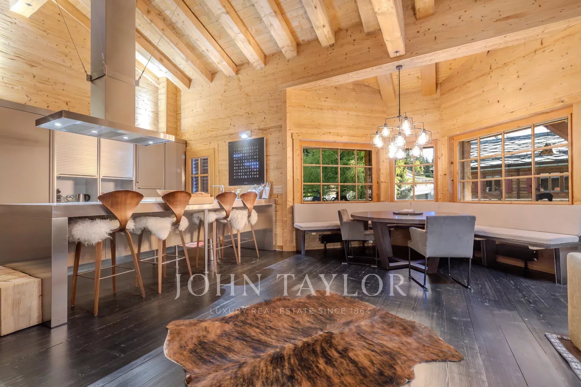Das großzügige Wohnzimmer ist mit einem Kamin ausgestattet – perfekt für gemütliche Abende am knisternden Feuer. Die elegante und moderne Einrichtung schafft eine einladende Atmosphäre, in der Sie sich sofort wie zu Hause fühlen. Die großen Fenster im Wohnzimmer bieten einen herrlichen Blick auf die majestätische Alpenlandschaft von Crans-Montana.