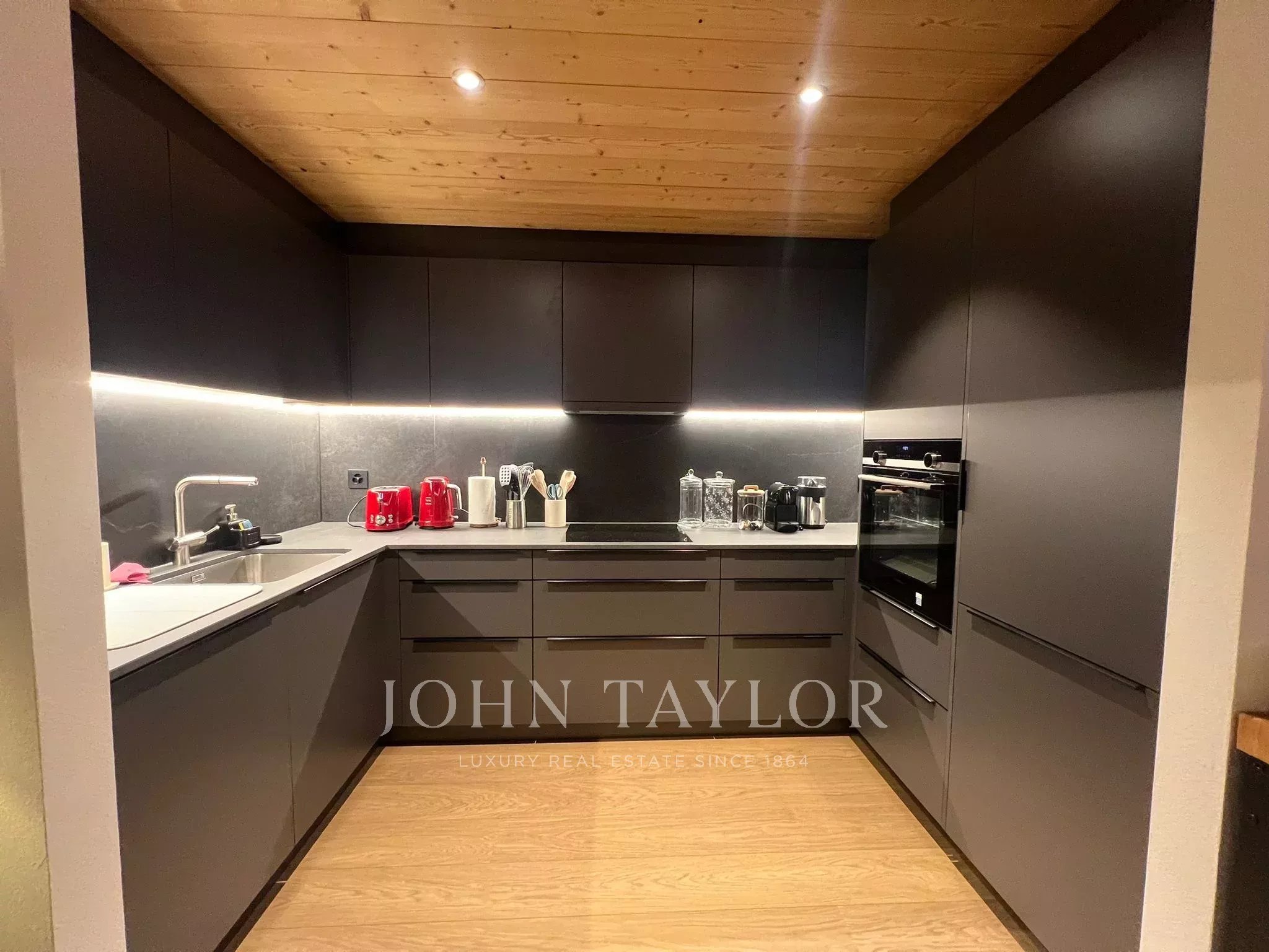 Gestaltet mit edlen Materialien, natürlichem Holz und klaren architektonischen Linien, vereint das Apartment modernes Design mit alpiner Authentizität. Der großzügige, offen gestaltete Wohn- und Essbereich wird durch einen Kamin ergänzt, der an Winterabenden eine gemütliche Atmosphäre schafft, während große Fensterflächen viel Tageslicht hereinlassen und eine angenehme Verbindung zur umliegenden Natur ermöglichen.