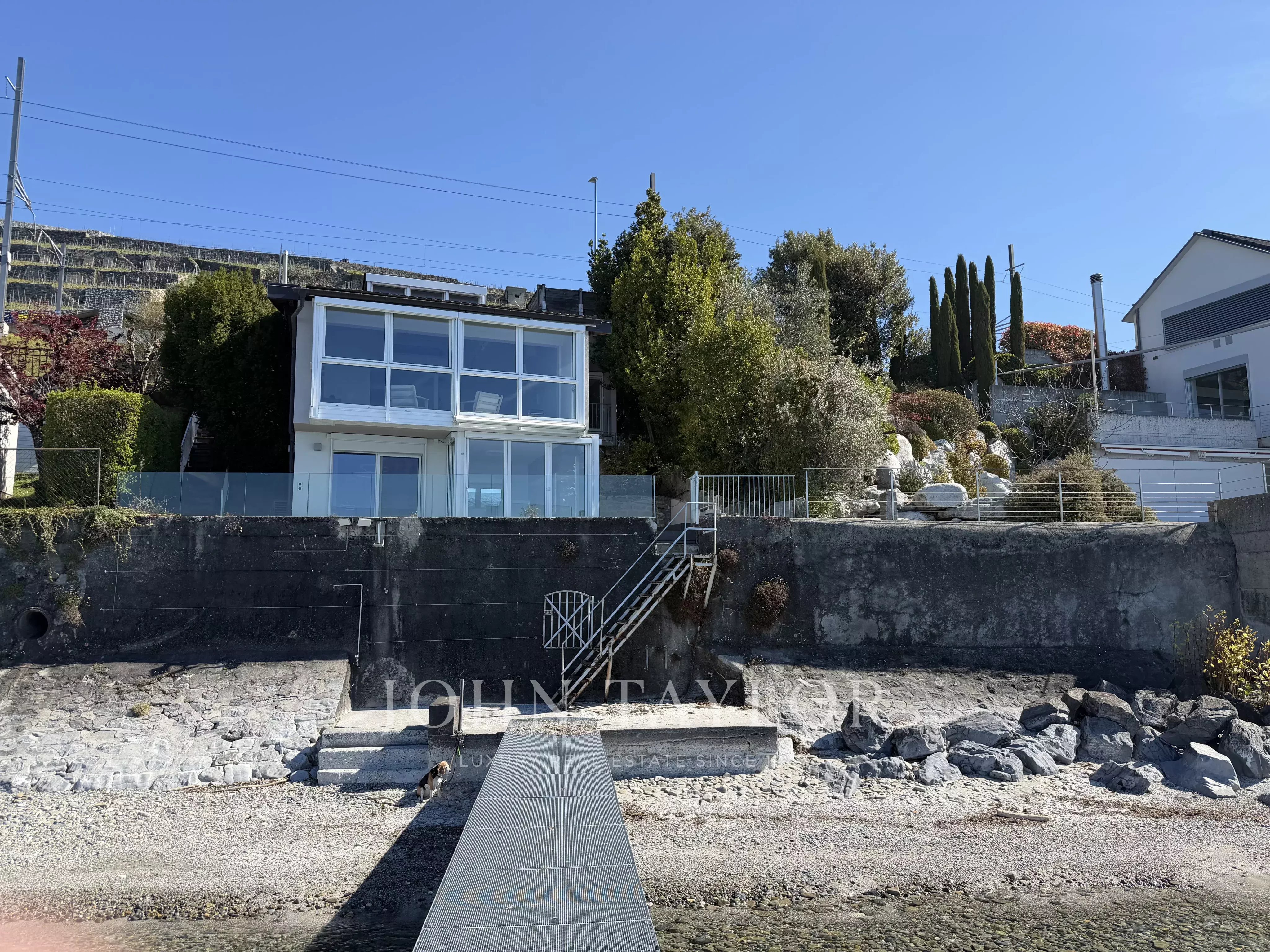 Im Außenbereich genießen Sie einen umzäunten Bereich, ideal für Haustiere, eine Außenbeleuchtung, einen privaten Steg für Ihr Boot sowie eine Terrasse mit Blick auf den See. Haustiere sind willkommen. Dieses einzigartige Haus in Cully bietet eine seltene Gelegenheit, in einer ruhigen und idyllischen Umgebung zwischen den Weinbergen des Lavaux und kristallklarem Wasser zu leben.