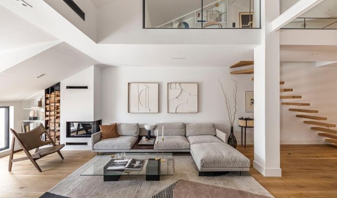 Im obersten Stockwerk eines klassischen Gebäudes befindet sich diese spektakuläre ...