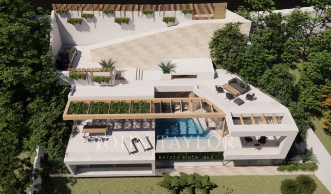 Neues Villenprojekt auf einem Grundstück von 850 Quadratmetern mit einer bebauten ...