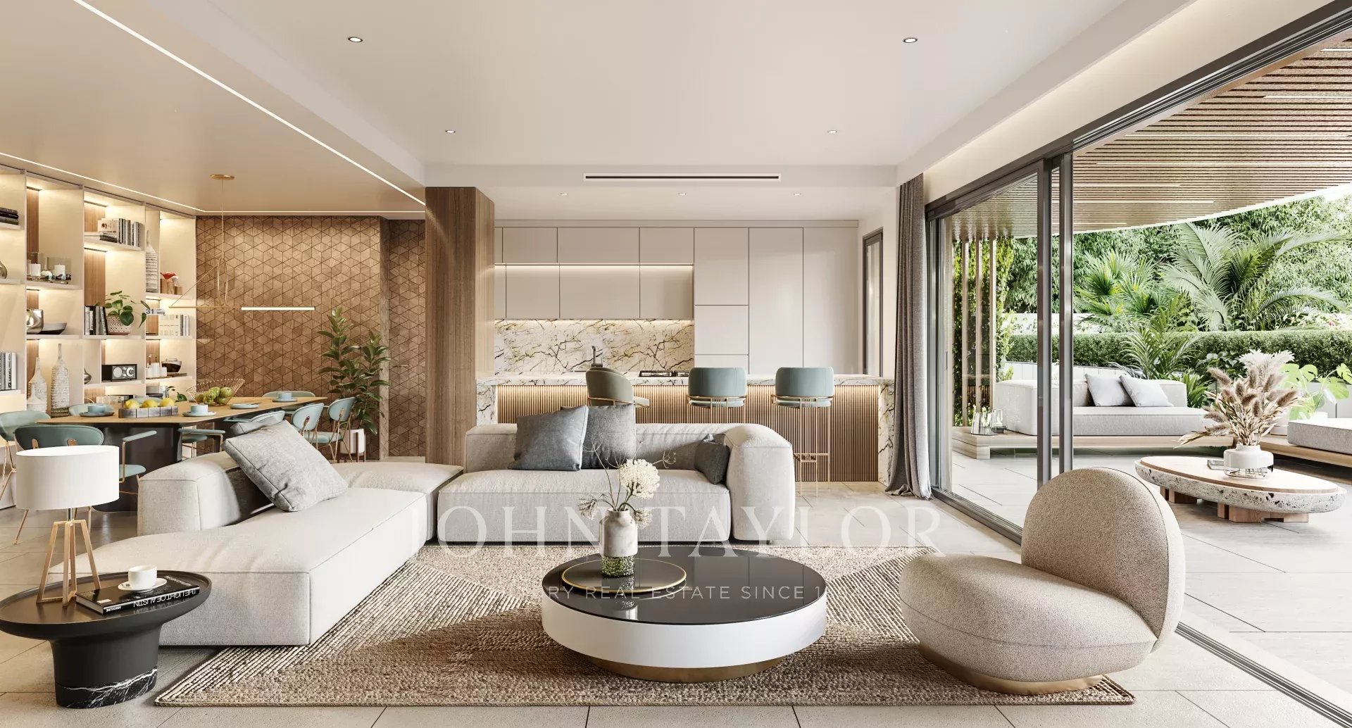 Alle verwendeten Materialien sind von höchster Qualität und die Ausführungen sind modern und elegant. Die Küchen werden vollständig möbliert und ausgestattet geliefert – mit Glaskeramikkochfeld, Dunstabzugshaube, Backofen und Spüle. Die en-suite Badezimmer sind mit Designerarmaturen und -sanitärobjekten ausgestattet. Zudem verfügen die Wohnungen über ein Smart-Home-System zur Steuerung von Beleuchtung und Klimaanlage. Jede Einheit umfasst außerdem einen Garagenstellplatz und einen Abstellraum.