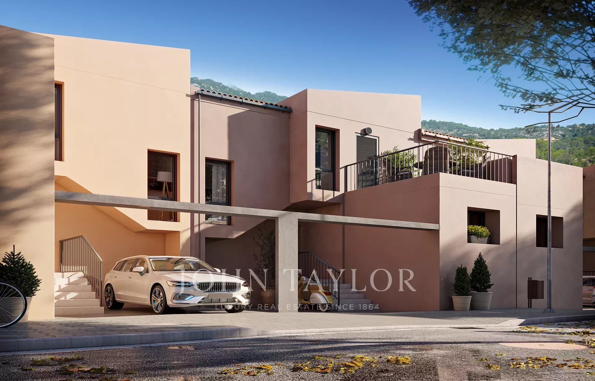 Die Häuser verfügen über große, nach Südwesten ausgerichtete Terrassen und einen eigenen Garten mit Zugang zum Gemeinschaftspool und den angelegten Gartenbereichen. Jedes Haus hat einen eigenen Parkplatz mit direktem Zugang.