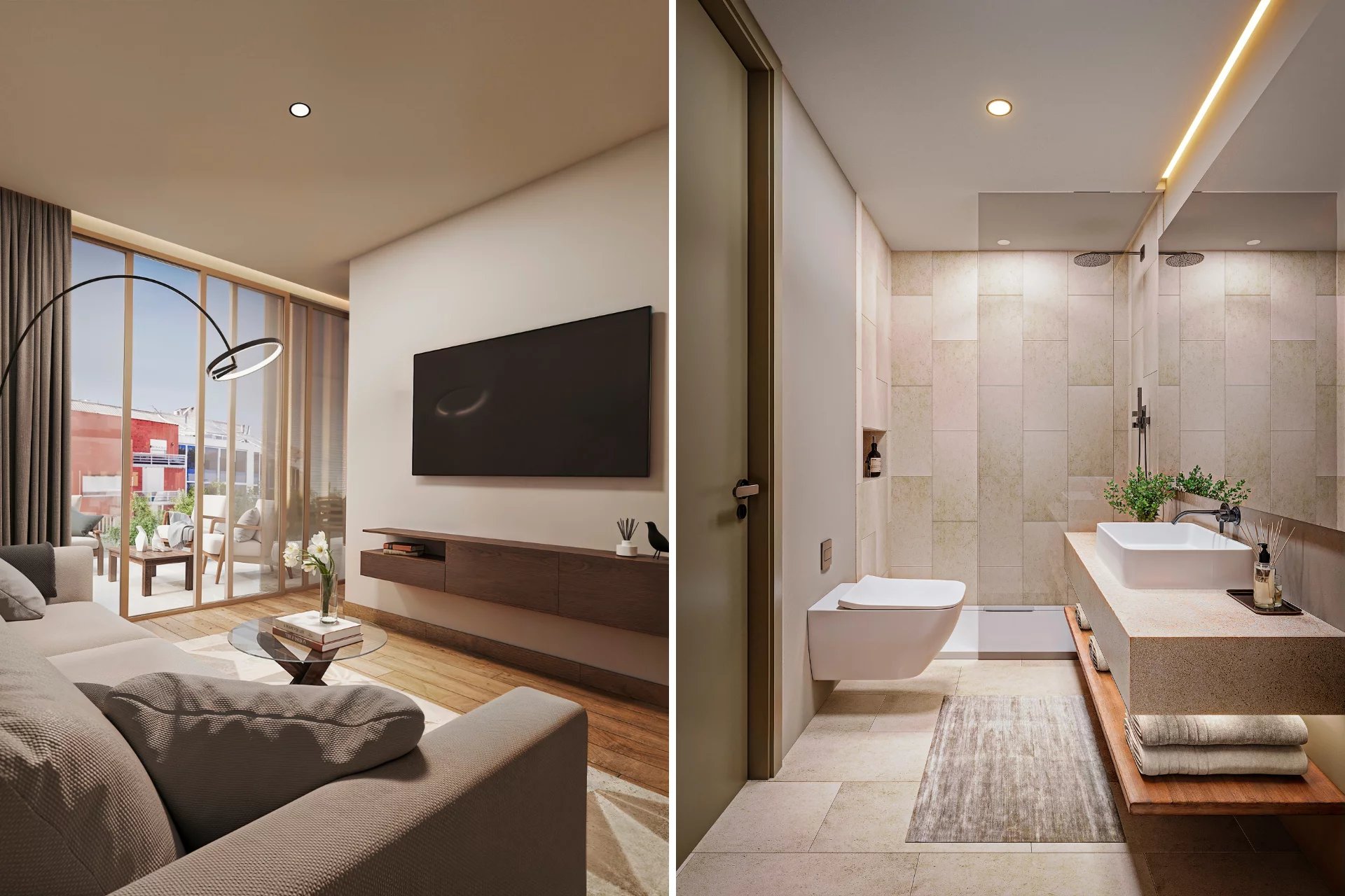 Das Projekt bietet komfortable Schlafzimmer und Bäder mit eigenem Bad, je nach Grundriss der gewählten Wohnung. Die geräumigen Zimmer, offene Räume, mit großen Fenstern, die es Ihnen ermöglichen, das Beste aus dem natürlichen Licht zu machen.