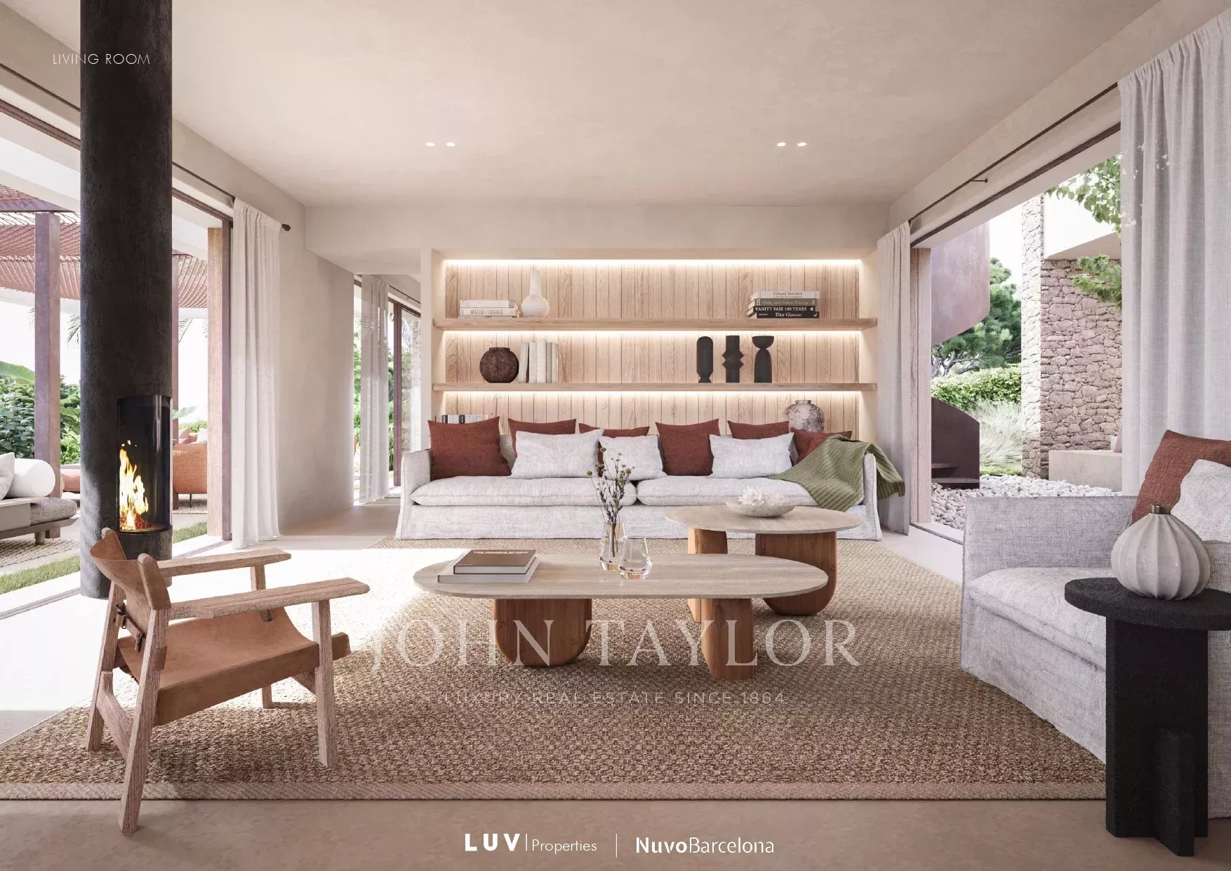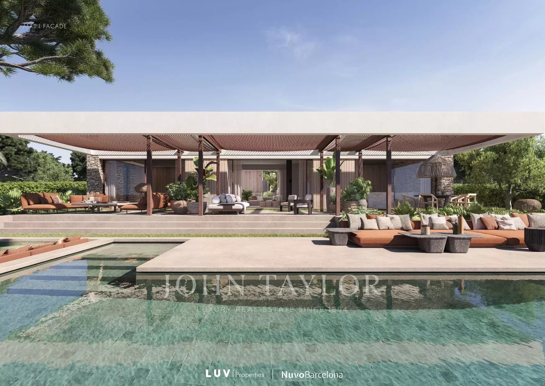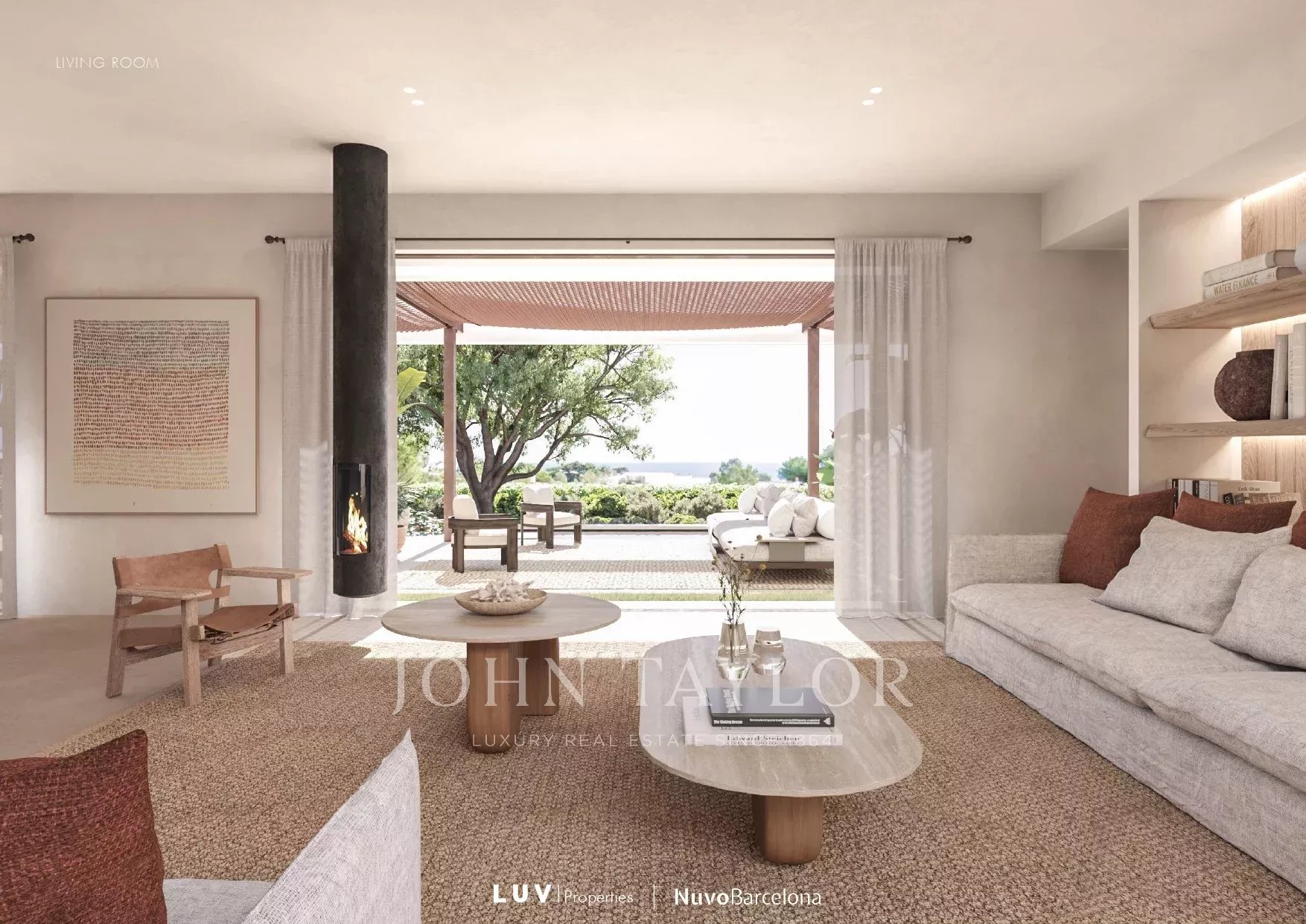 Das geräumige, offen gestaltete Wohn- und Esszimmer ist in den Außenbereich integriert, zu dem eine Terrasse mit Pergola, ein Lounge-Bereich mit Außenkamin und ein 46,8 m² großer Infinity-Pool gehören. Auf der Dachterrasse finden Sie einen beeindruckenden Chill-out-Bereich mit Panoramablick auf die natürliche Umgebung und das Meer.