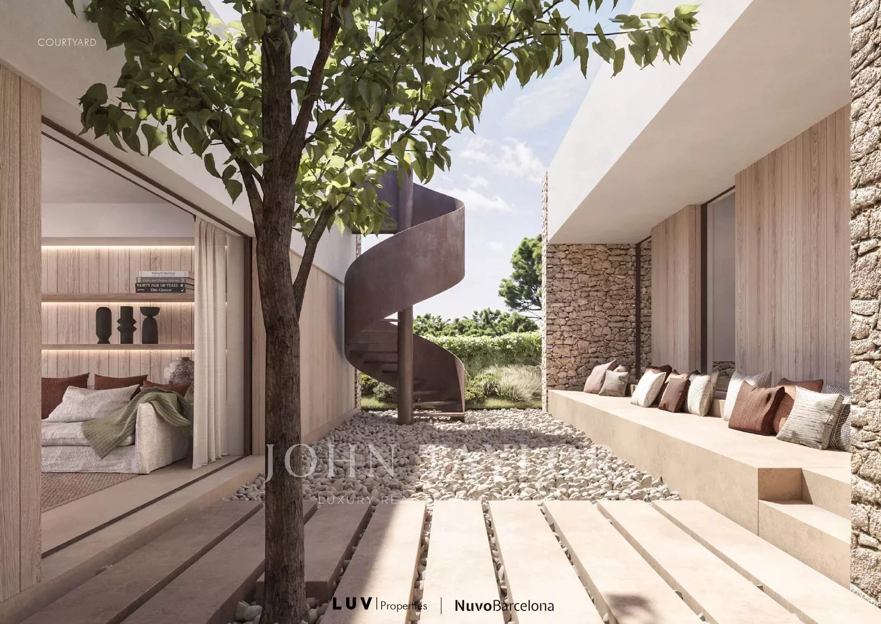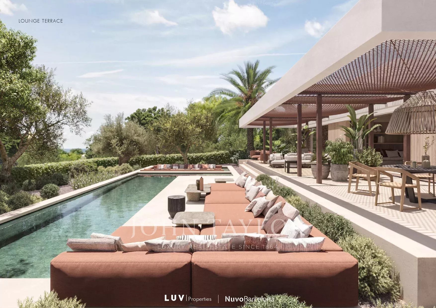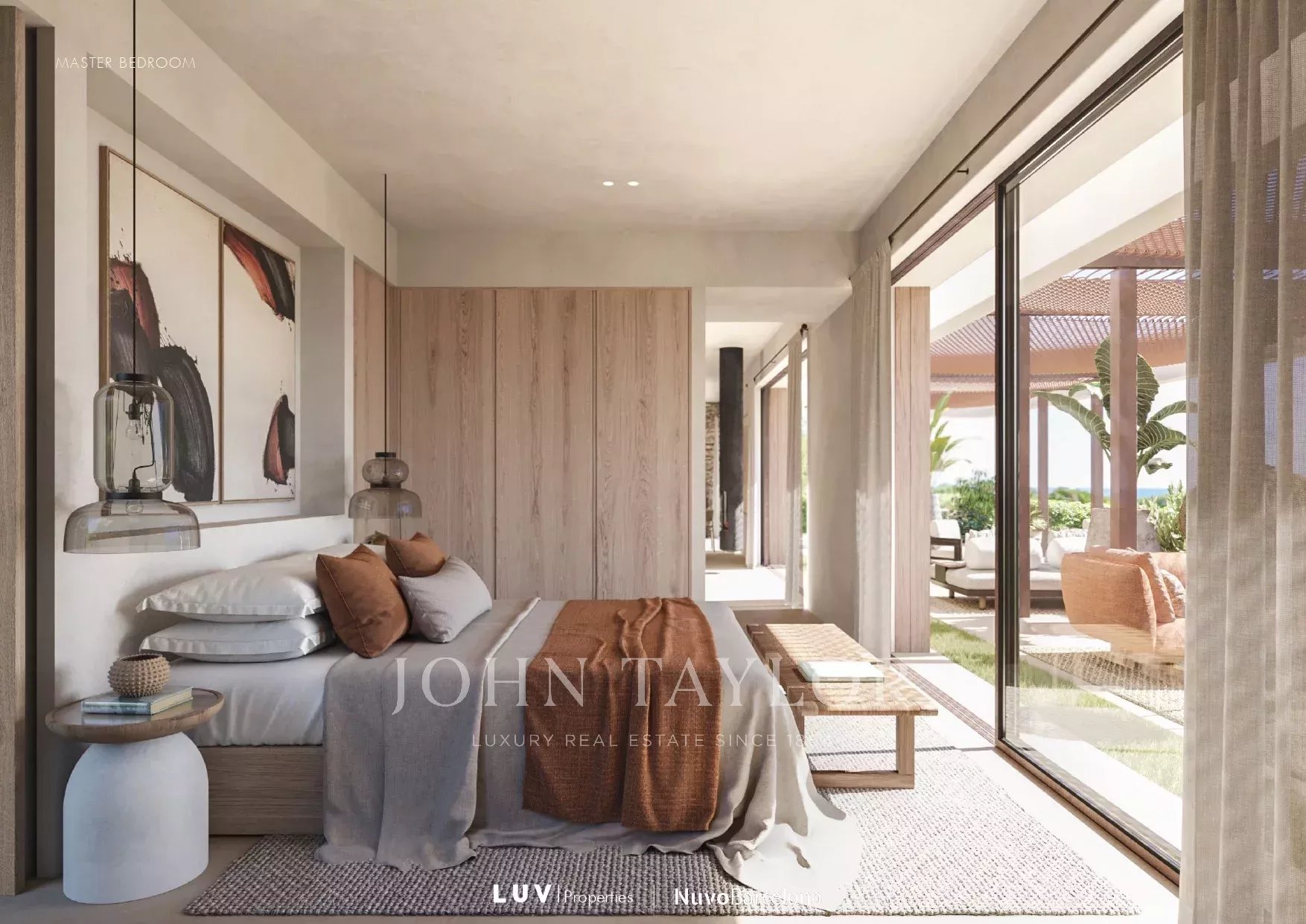 Das geräumige, offen gestaltete Wohn- und Esszimmer ist in den Außenbereich integriert, zu dem eine Terrasse mit Pergola, ein Lounge-Bereich mit Außenkamin und ein 46,8 m² großer Infinity-Pool gehören. Auf der Dachterrasse finden Sie einen beeindruckenden Chill-out-Bereich mit Panoramablick auf die natürliche Umgebung und das Meer.