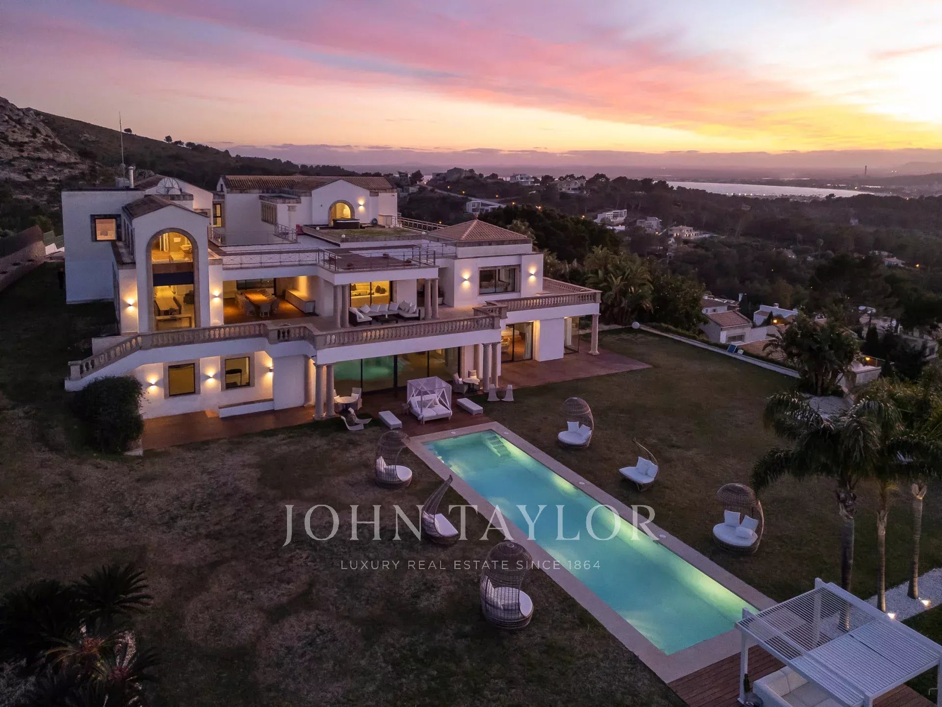 Auf dem höchsten Punkt von Mal Pas-Bonaire, Alcudia, gelegen und mit spektakulärem Meerblick über die Bucht von Pollensa, ist dieses Anwesen wirklich einzigartig und mit nichts im Norden Mallorcas zu vergleichen. Gebaut nach den höchsten Spezifikationen, die ein Maximum an Komfort gewährleisten, und entworfen, um zu beeindrucken, ist "Cielo de Bonaire" eine Erfahrung für sich.