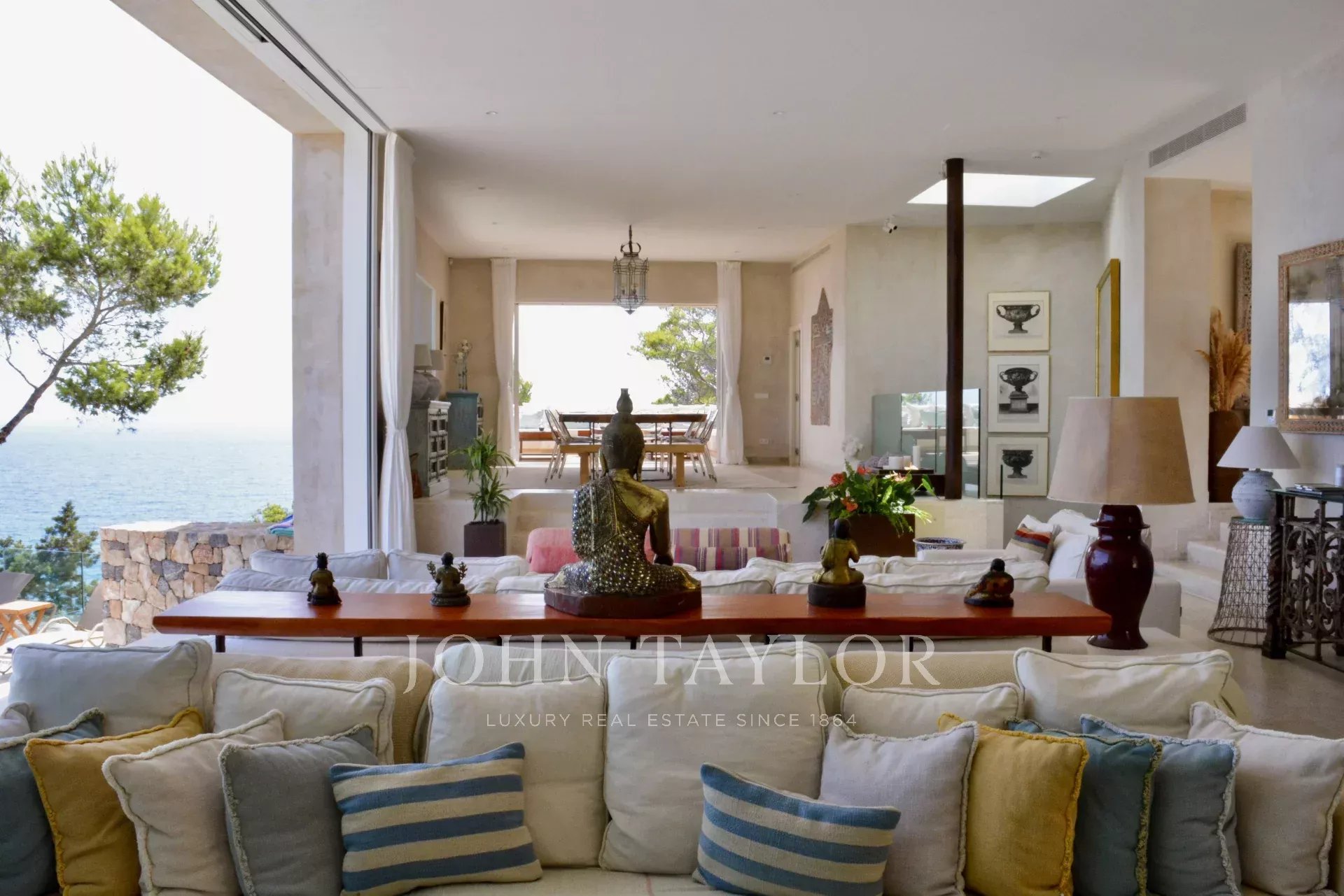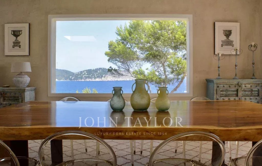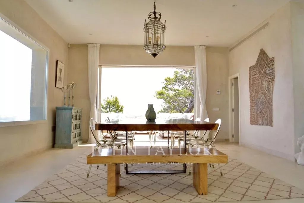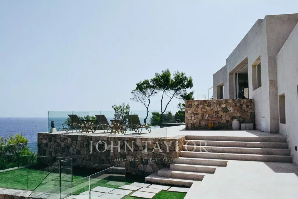 Diese eindrucksvolle Villa in erster Meereslinie bietet ein einzigartiges Erlebnis an der Küste Ibizas. Mit über 800 m² eleganten Innen- und großzügigen Außenbereichen vereint sie Luxus, Privatsphäre und Natur auf harmonische Weise. Die privilegierte Lage ermöglicht es, während der warmen Monate eine angenehme Meeresbrise zu genießen, während sich die Terrassen zu einem atemberaubenden Blick auf das Mittelmeer öffnen.
