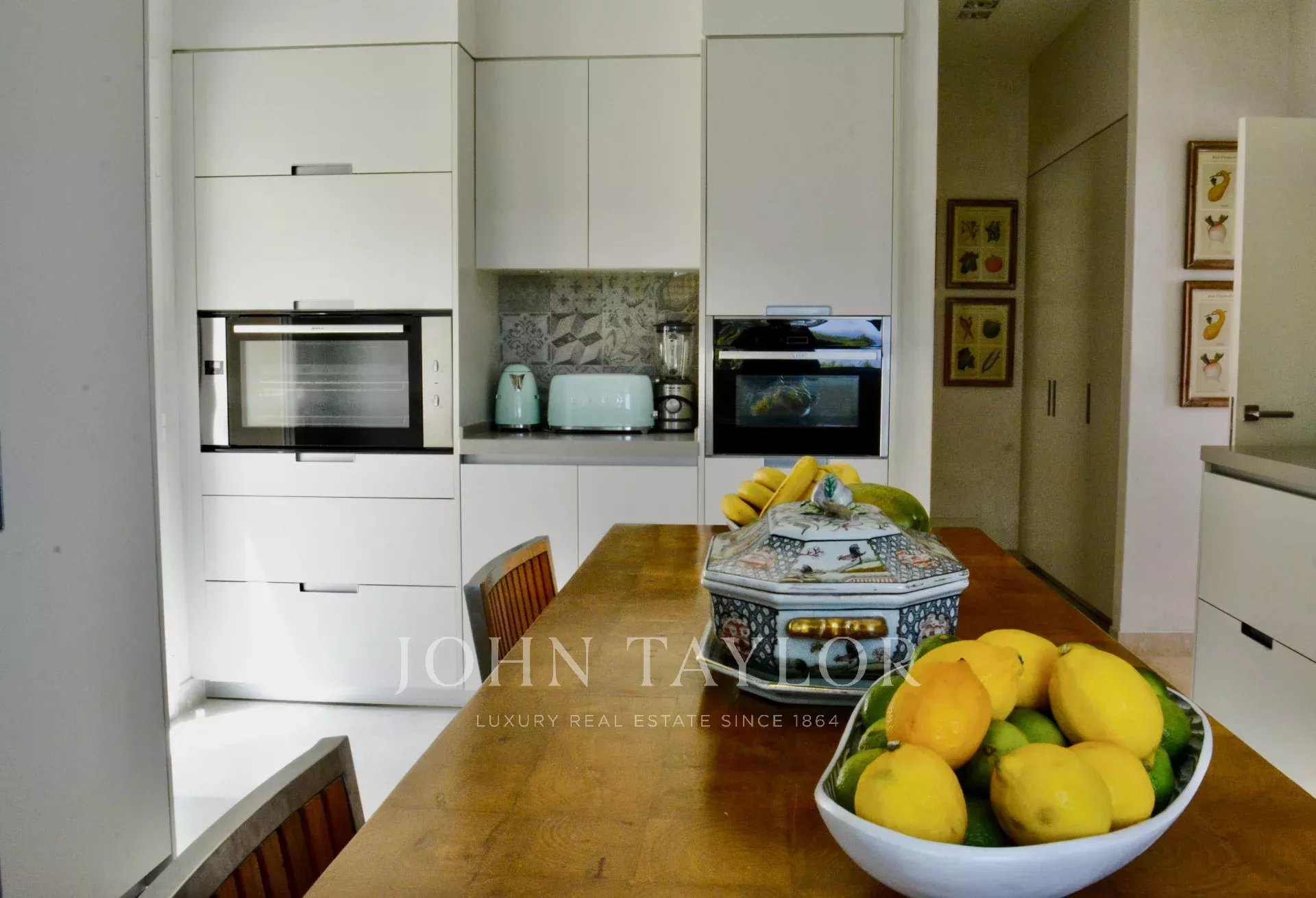 Schon bei der Ankunft begrüßt ein über tausendjähriger Olivenbaum neben dem Parkplatz die Gäste und unterstreicht den besonderen Charakter der Immobilie. Im Inneren sorgen hohe Decken im Wohnbereich für ein helles, luftiges Ambiente. Der Essbereich bietet Platz für zehn oder mehr Gäste – ideal für gesellige Abende. Vier Doppelschlafzimmer, jeweils mit eigenem Bad und Meerblick, sowie ein separater Bereich für Personal stehen zur Verfügung.