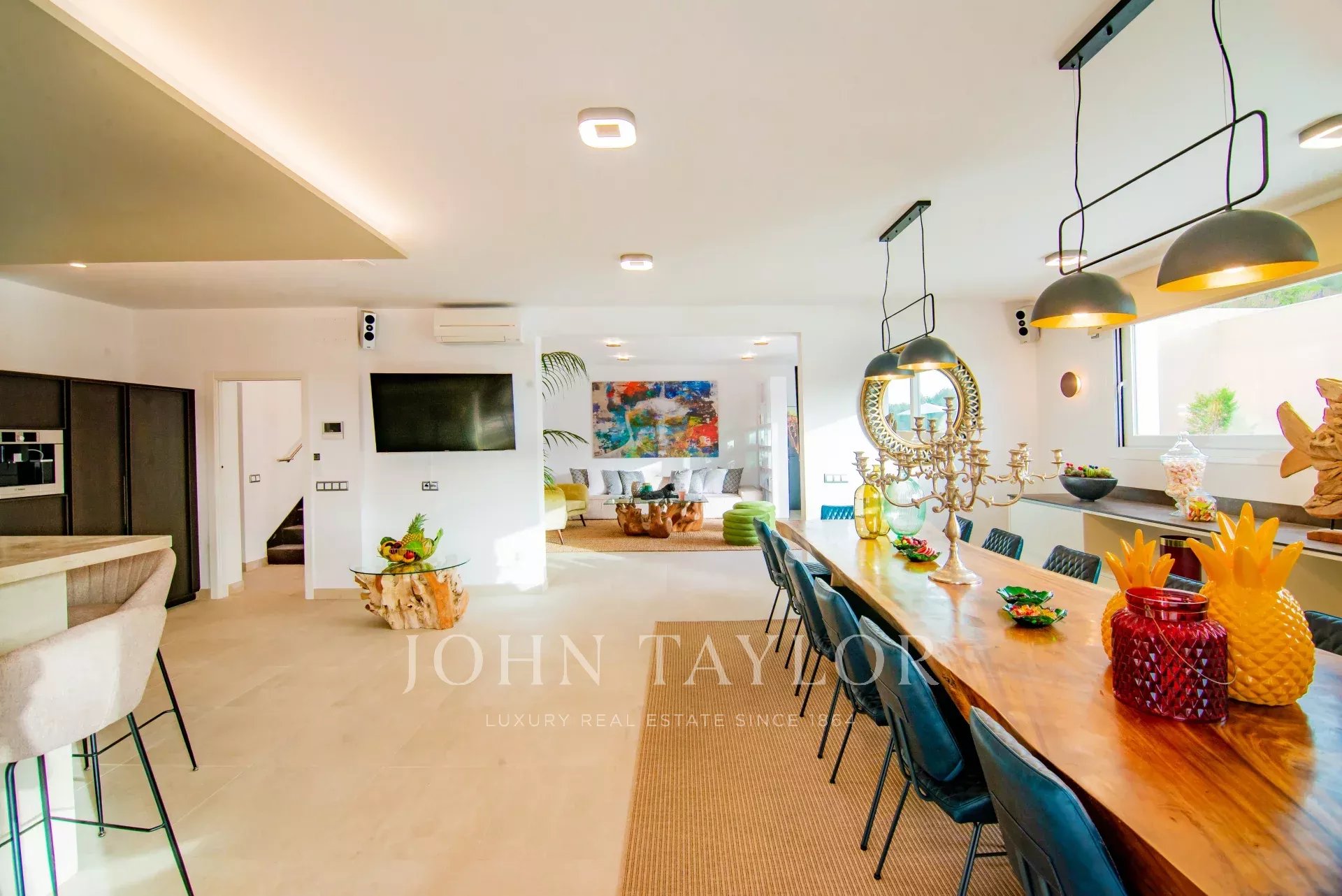 In einer natürlichen und ruhigen Umgebung, zwischen dem charmanten Dorf Santa Eulalia und dem pulsierenden Ibiza gelegen, bietet Ihnen diese Villa ein unvergleichliches Erlebnis. Umgeben von einem üppigen Pinienwald, zeichnet sich diese Residenz durch ihren unvergleichlichen Komfort und ihr Design aus, das sich perfekt für große Familien und Gruppen von Freunden eignet.