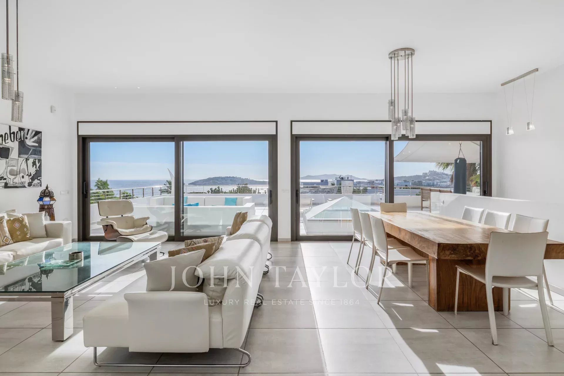 Entdecke den Luxus in diesem beeindruckenden Refugium in Cap Martinet, Ibiza. Mit atemberaubendem Meerblick verbindet diese Immobilie die Ruhe einer friedlichen Umgebung mit dem pulsierenden Nachtleben von Ibiza, nur wenige Minuten entfernt.