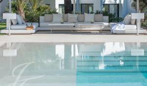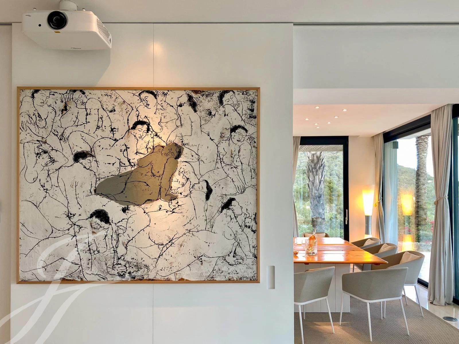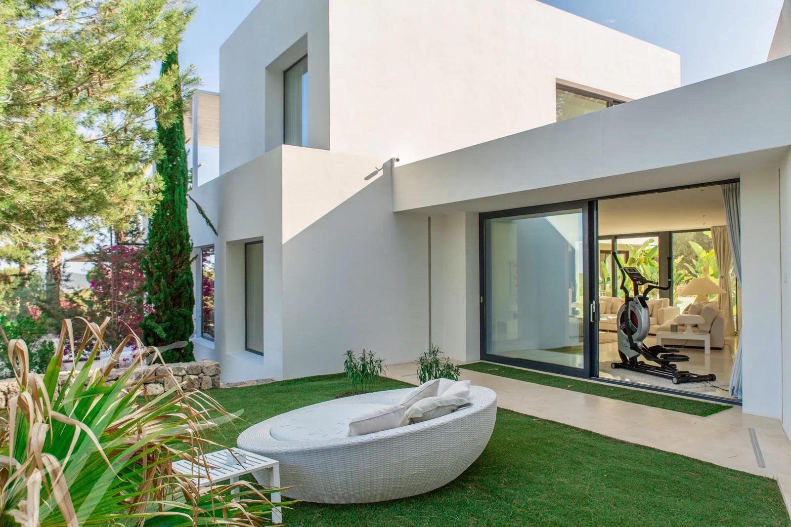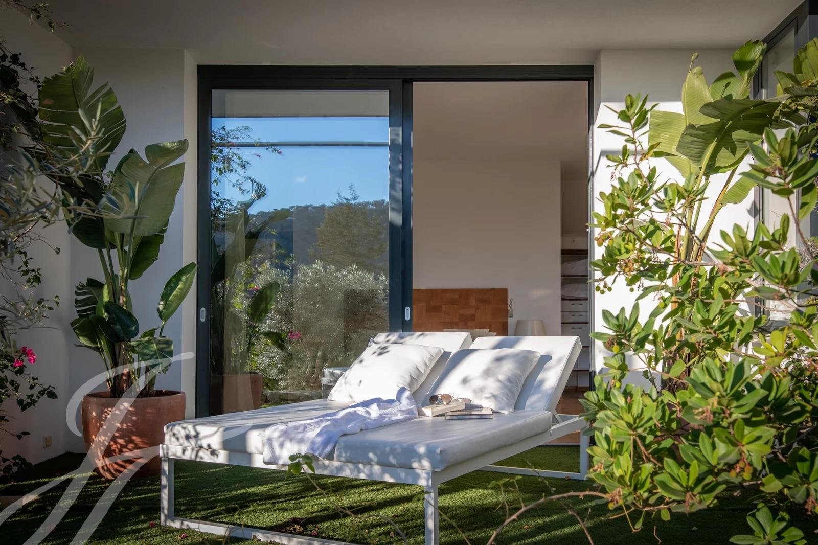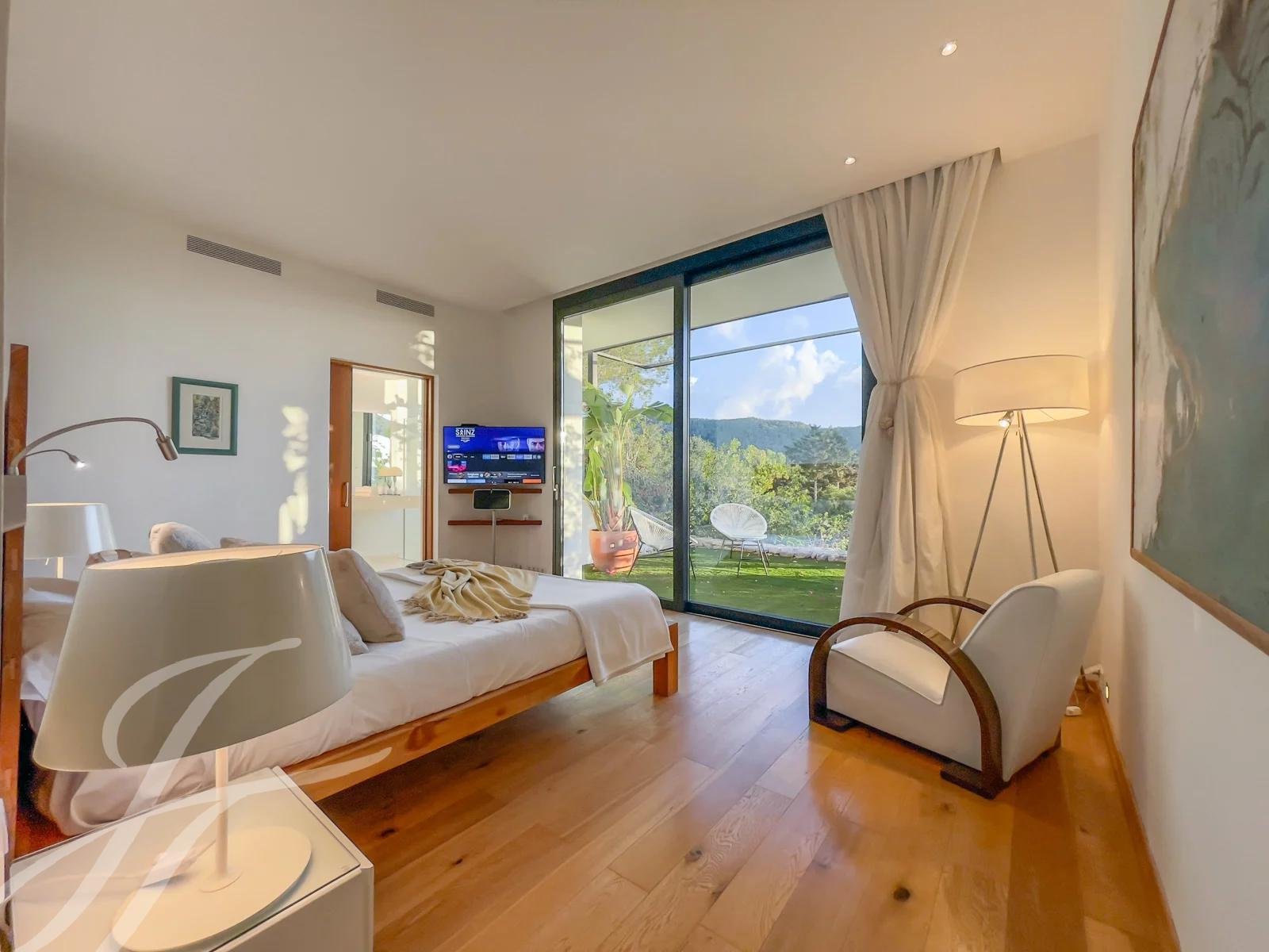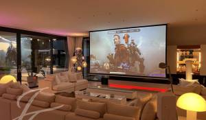 Alle diese Räume haben einen fantastischen Blick auf das Meer. Das Design der Villa ist rollstuhlgerecht, mit barrierefreien Wegen zur Küche, Esszimmer, Wohnzimmer und zwei Suiten im Erdgeschoss. High-Speed-Glasfaser-Internet und WiFi 6 deckt die gesamte Villa, einschließlich der Gärten, Pool und Parkplatz. Jede Suite sowie das Wohnzimmer und das Fernsehzimmer sind mit 4K-Fernsehern ausgestattet. Das Wohnzimmer verfügt außerdem über eine 5-Meter-Leinwand mit einem nativen 4K-Projektor. Ein SONOS-Soundsystem ist in allen Suiten, Chill-out-Bereichen und im Poolbereich installiert.