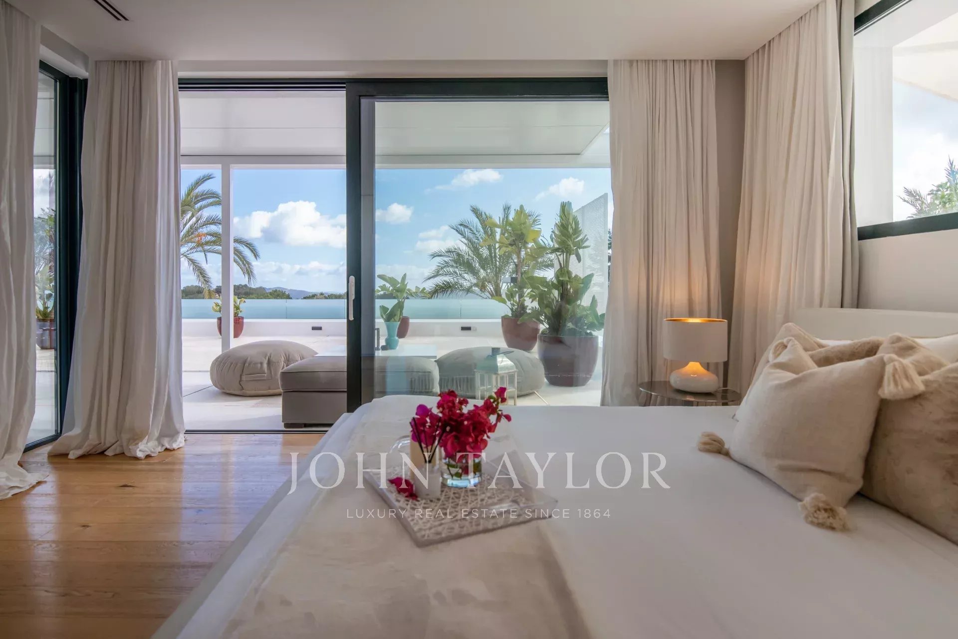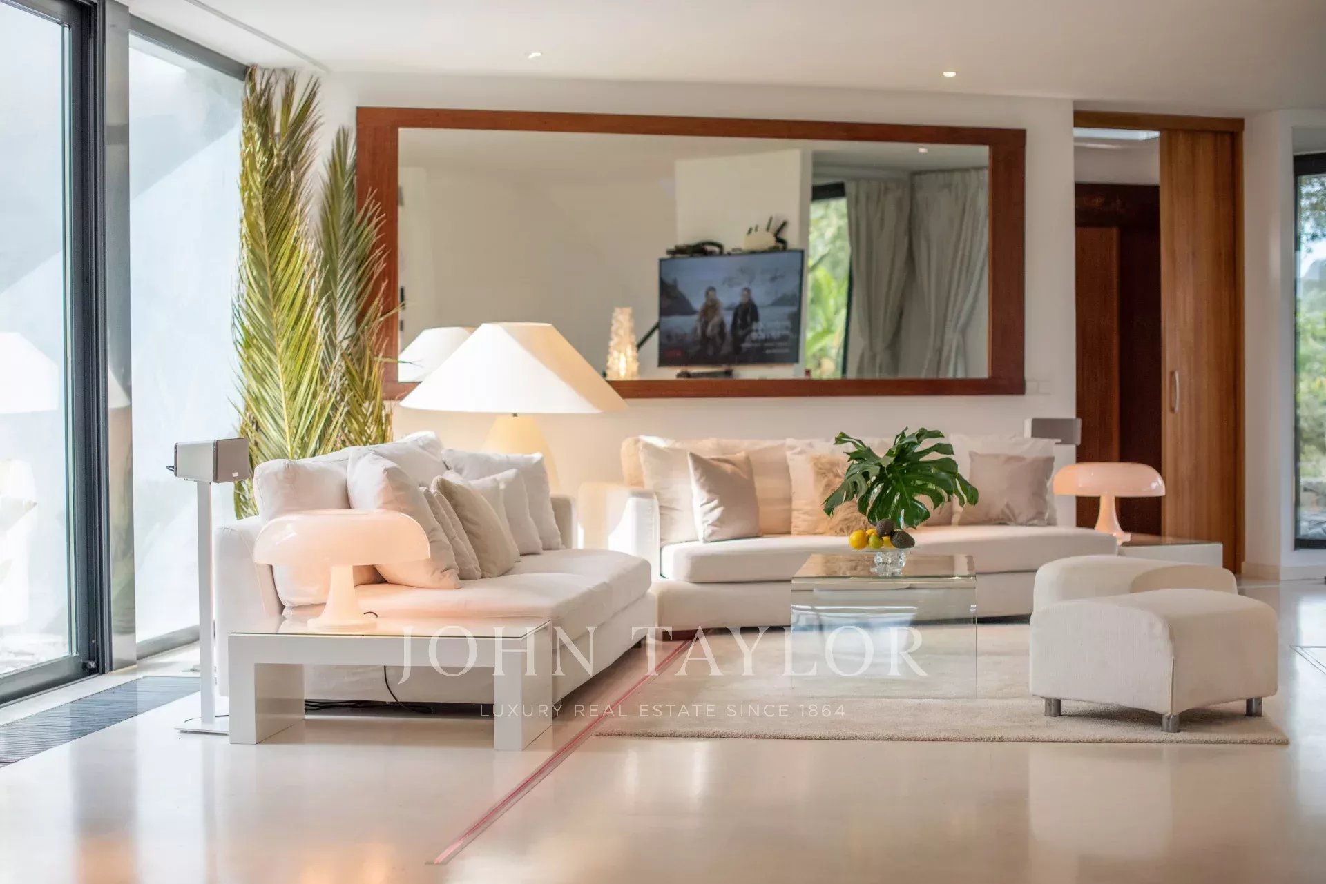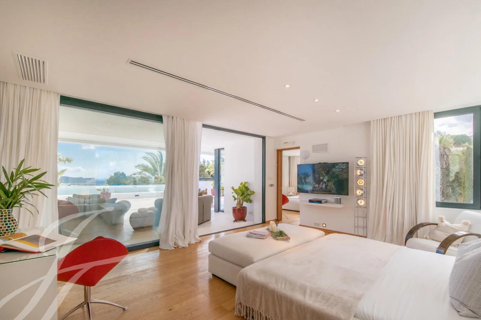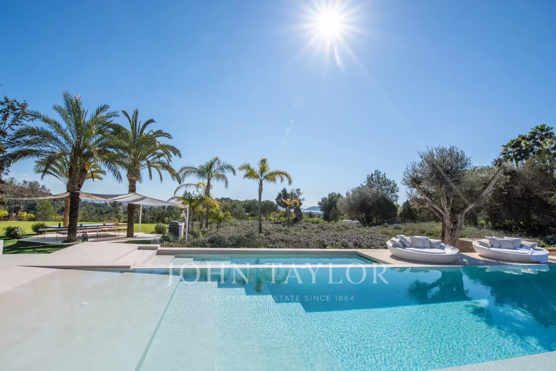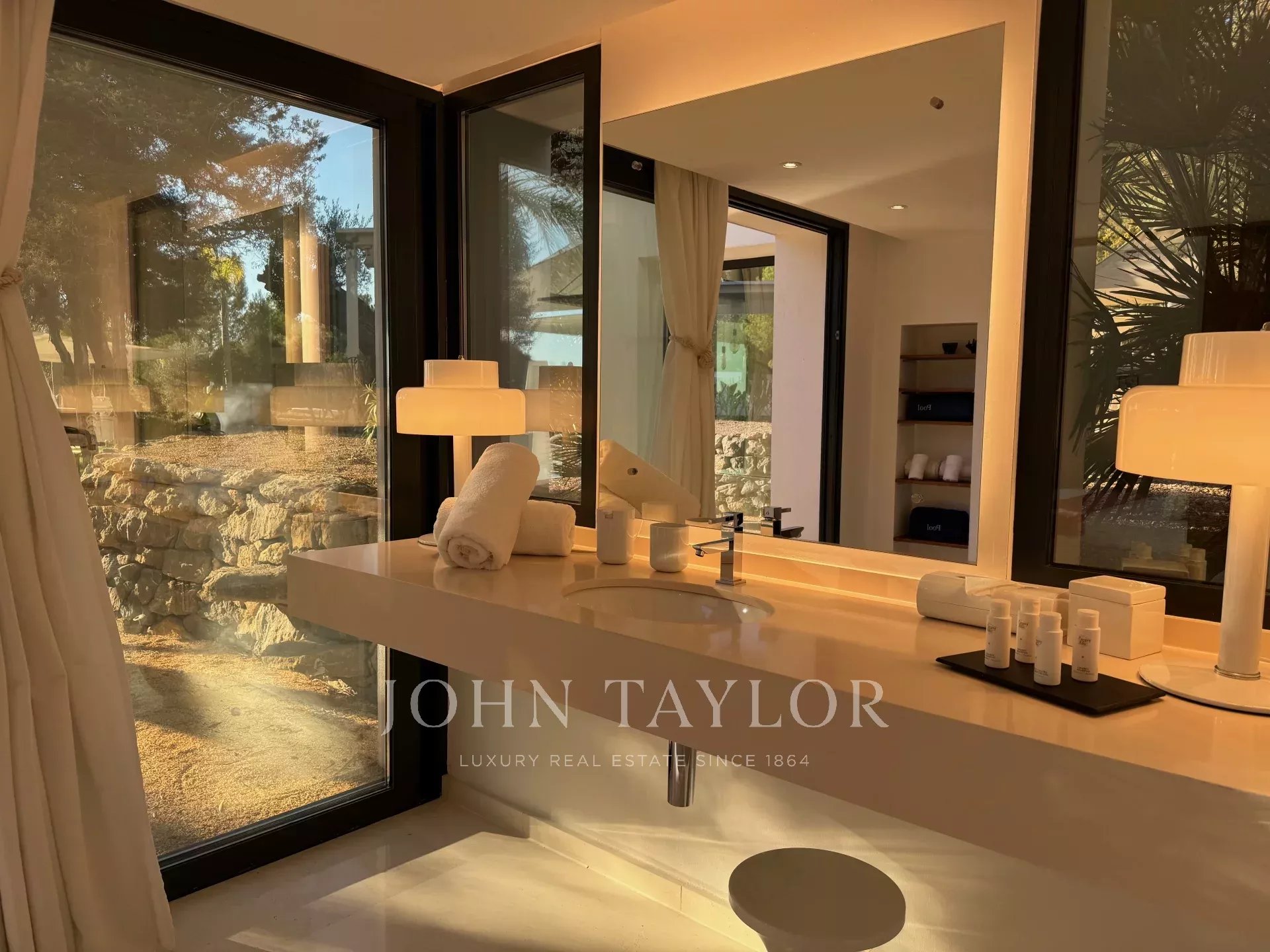 Diese prächtige Villa liegt nur 4 km von der pulsierenden Stadt Ibiza entfernt und bietet Ihnen einen unvergleichlichen Panoramablick auf die Salinen von Ibiza, Cap Falco, Playa den Bossa und die Insel Formentera. Mit sechs exquisit eingerichteten Suiten und einem Personalraum verbindet dieser himmlische Rückzugsort Modernität und Raffinesse und verspricht zu jeder Jahreszeit ein unvergessliches Erlebnis. Tauchen Sie ein in eine Atmosphäre der Ruhe und des Luxus, in der jeder Sonnenauf- und -untergang zu einem Spektakel für Ihre Sinne wird.