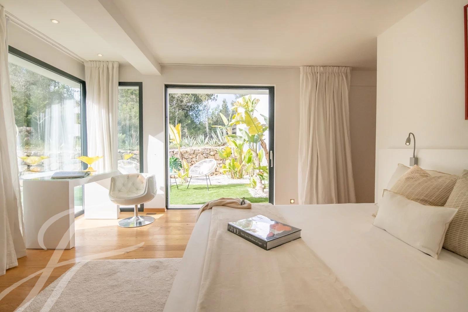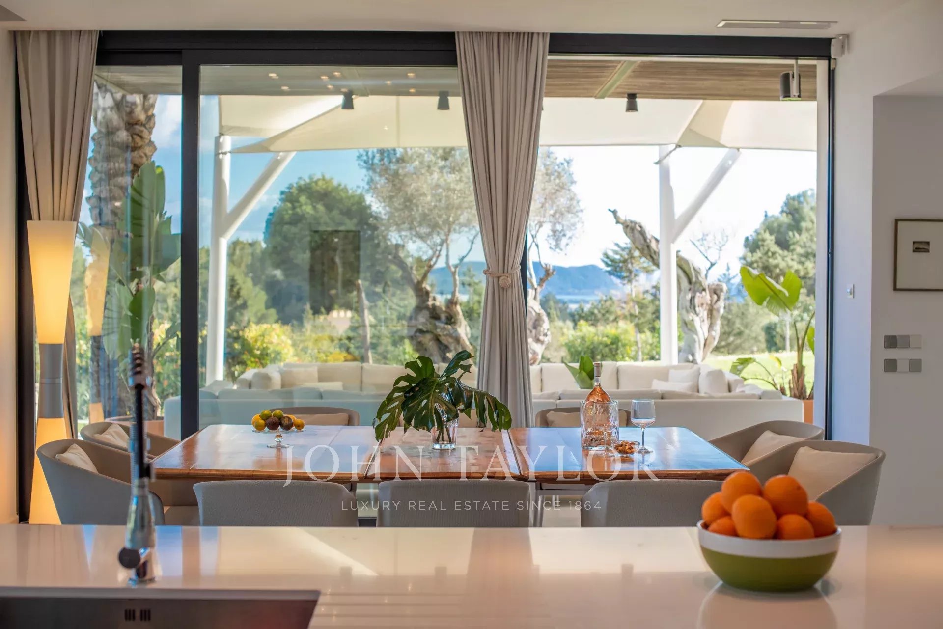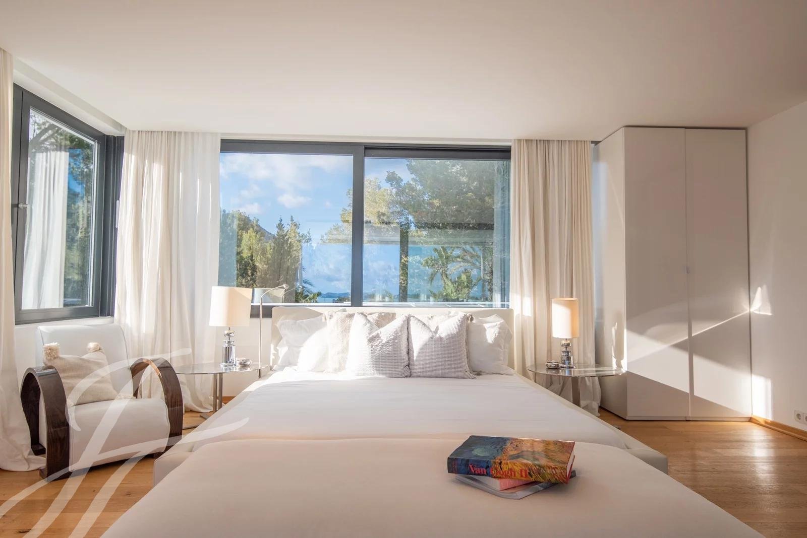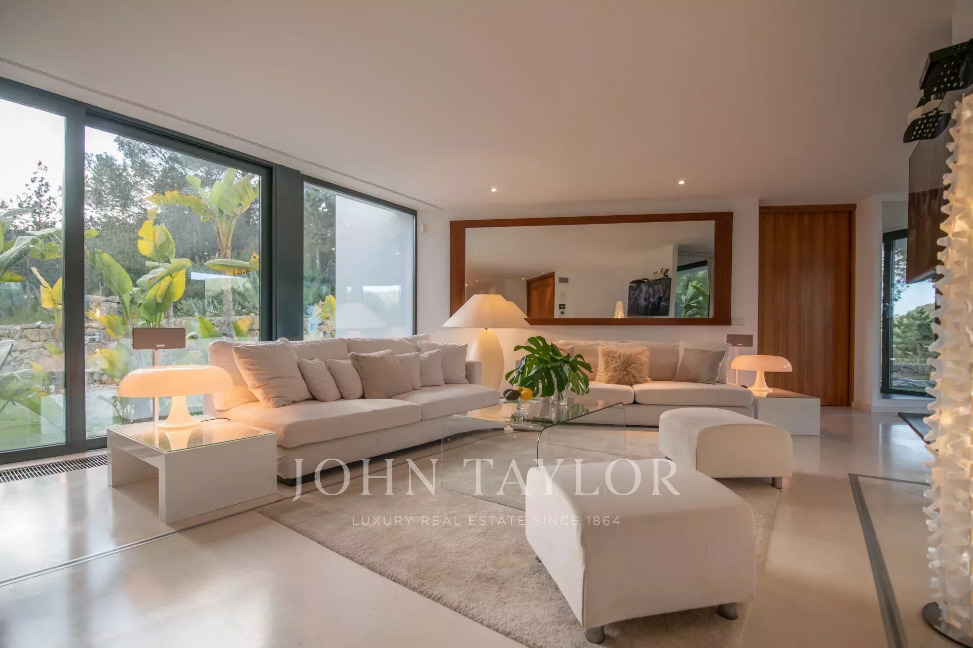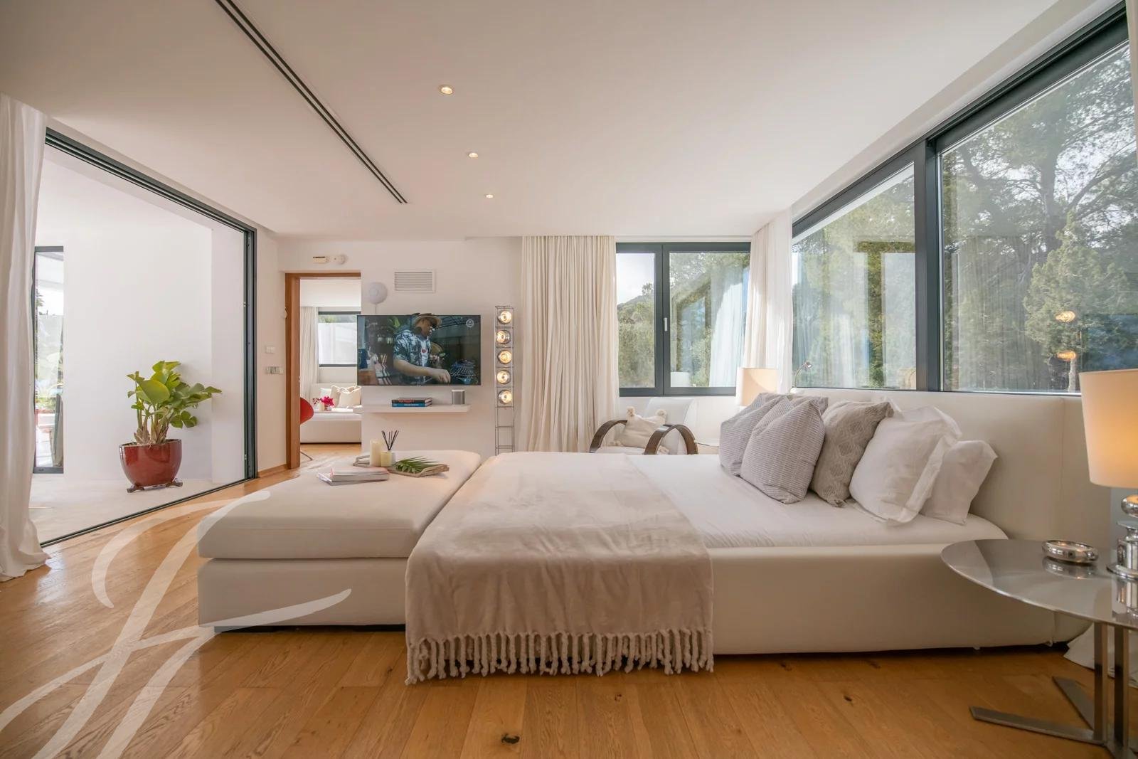 Diese prächtige Villa liegt nur 4 km von der pulsierenden Stadt Ibiza entfernt und bietet Ihnen einen unvergleichlichen Panoramablick auf die Salinen von Ibiza, Cap Falco, Playa den Bossa und die Insel Formentera. Mit sechs exquisit eingerichteten Suiten und einem Personalraum verbindet dieser himmlische Rückzugsort Modernität und Raffinesse und verspricht zu jeder Jahreszeit ein unvergessliches Erlebnis. Tauchen Sie ein in eine Atmosphäre der Ruhe und des Luxus, in der jeder Sonnenauf- und -untergang zu einem Spektakel für Ihre Sinne wird.