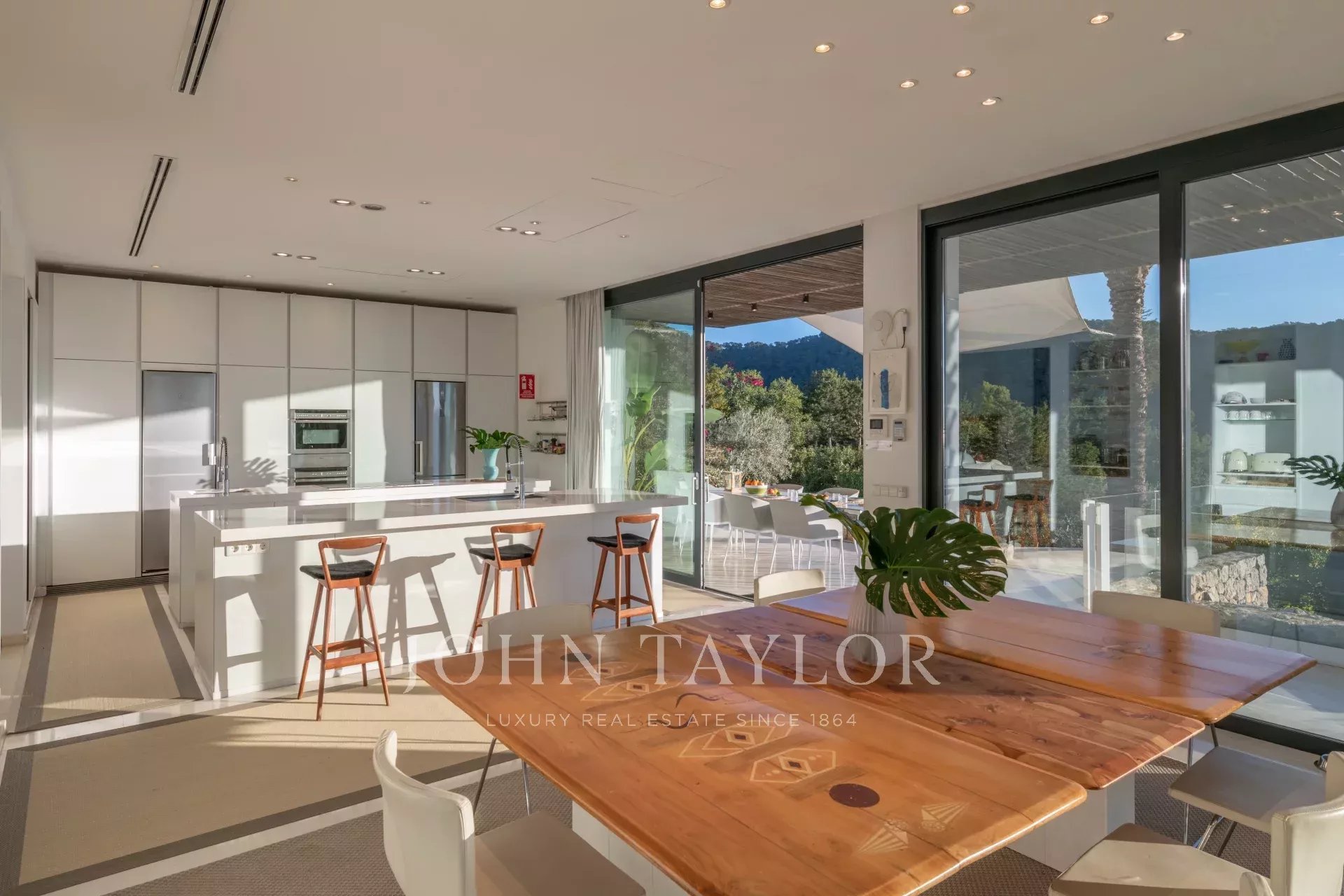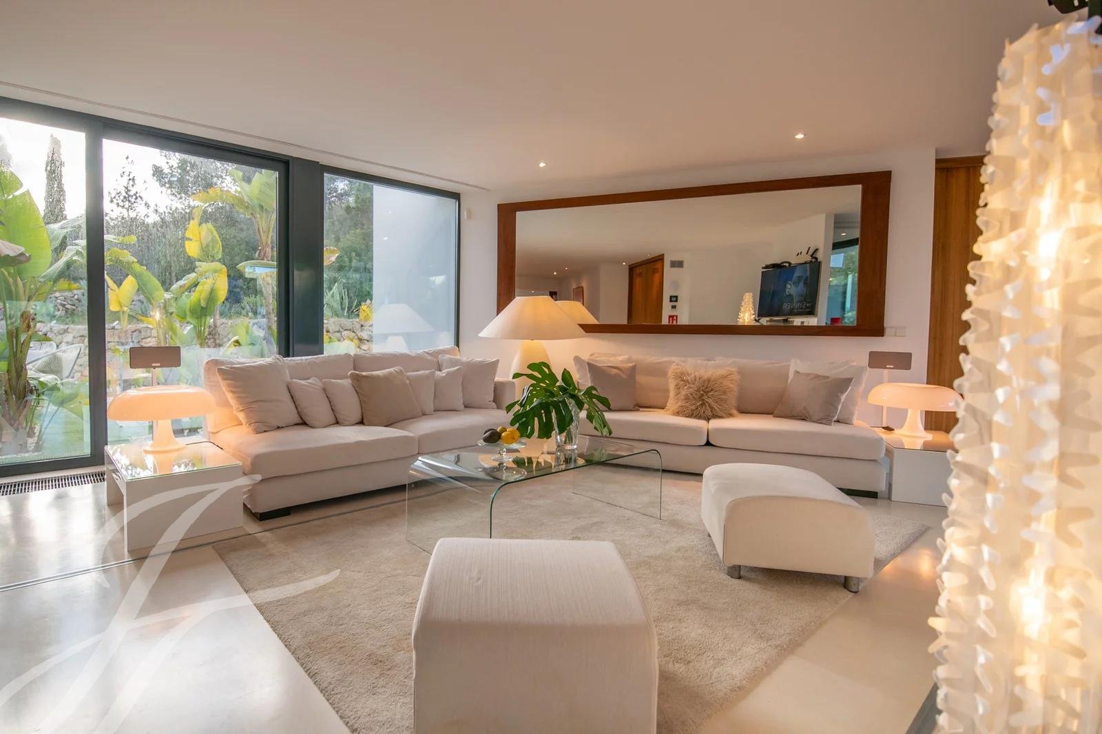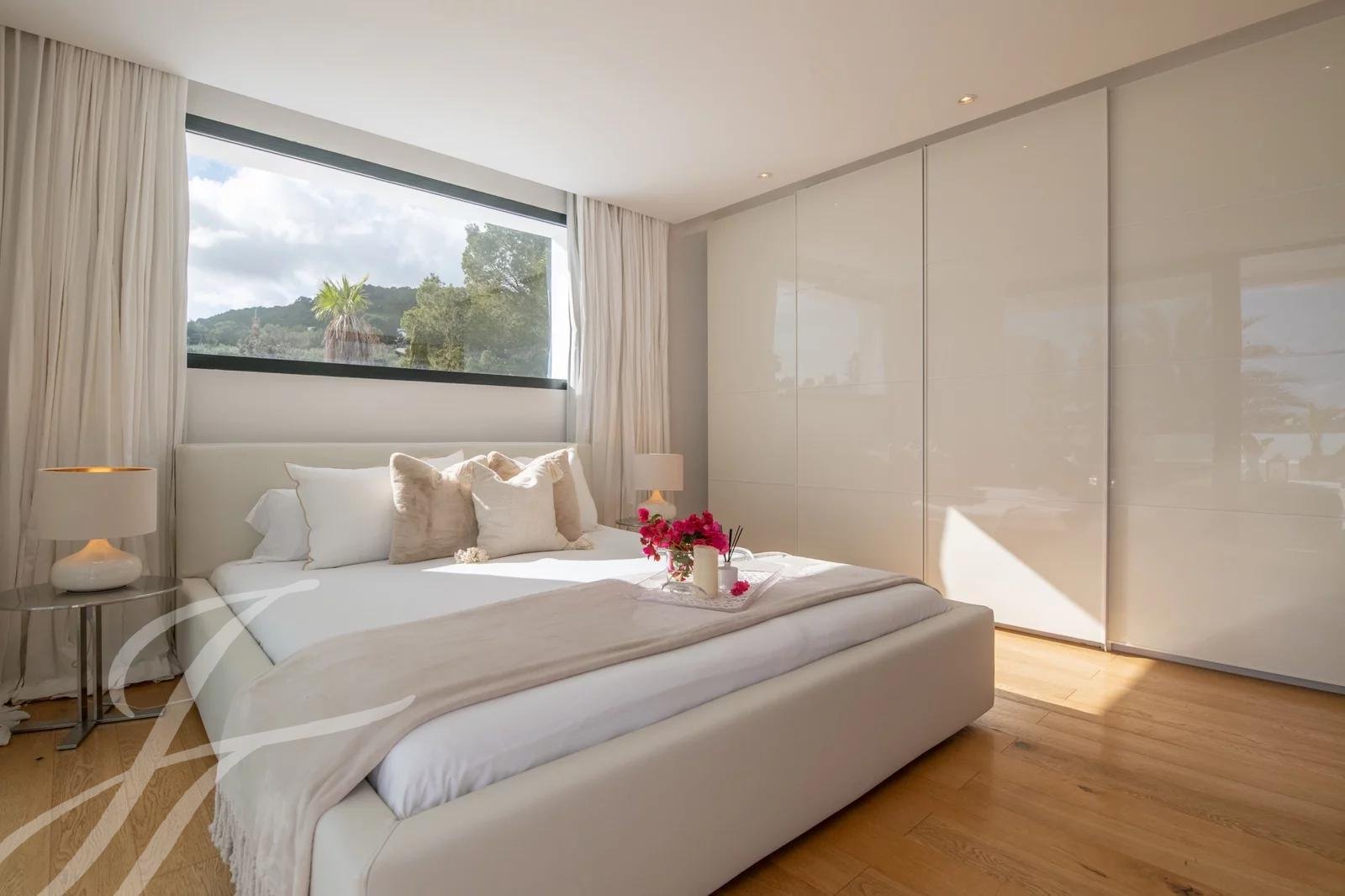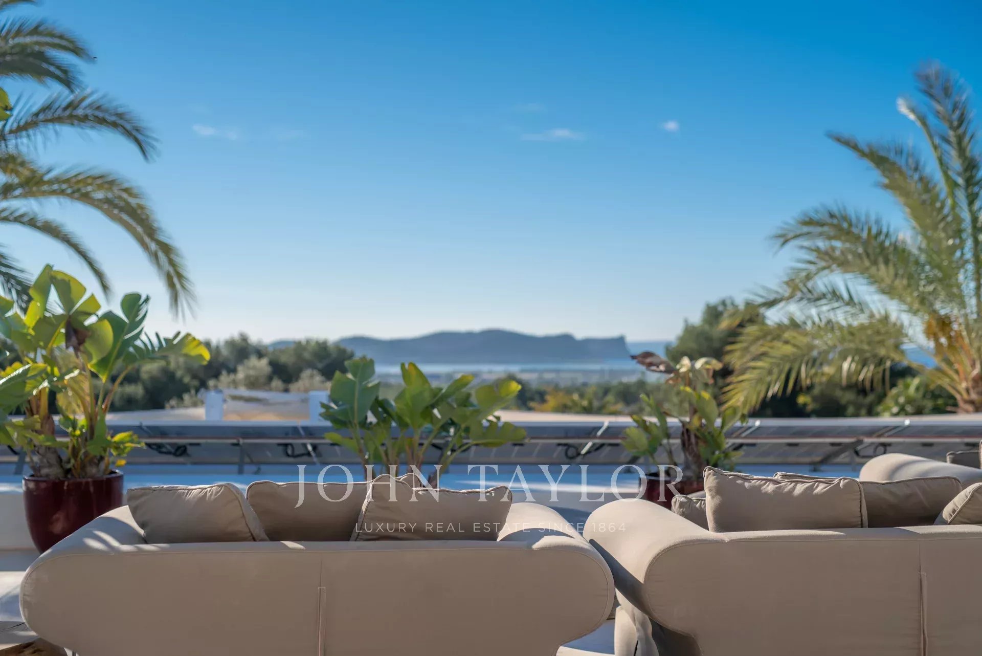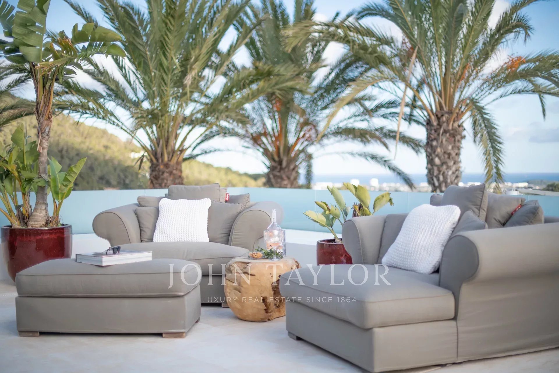 Diese prächtige Villa liegt nur 4 km von der pulsierenden Stadt Ibiza entfernt und bietet Ihnen einen unvergleichlichen Panoramablick auf die Salinen von Ibiza, Cap Falco, Playa den Bossa und die Insel Formentera. Mit sechs exquisit eingerichteten Suiten und einem Personalraum verbindet dieser himmlische Rückzugsort Modernität und Raffinesse und verspricht zu jeder Jahreszeit ein unvergessliches Erlebnis. Tauchen Sie ein in eine Atmosphäre der Ruhe und des Luxus, in der jeder Sonnenauf- und -untergang zu einem Spektakel für Ihre Sinne wird.