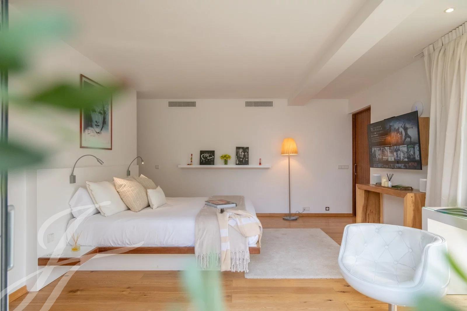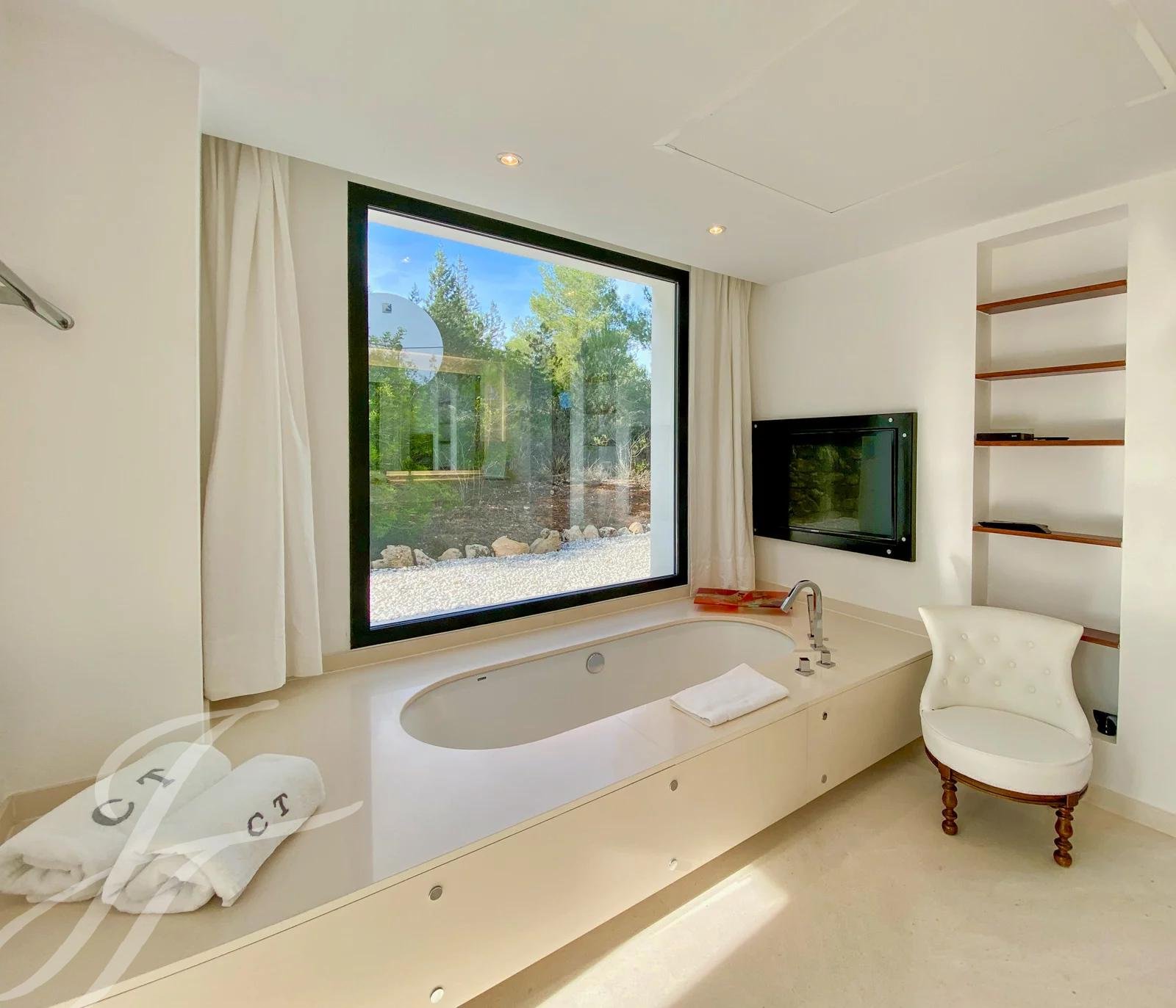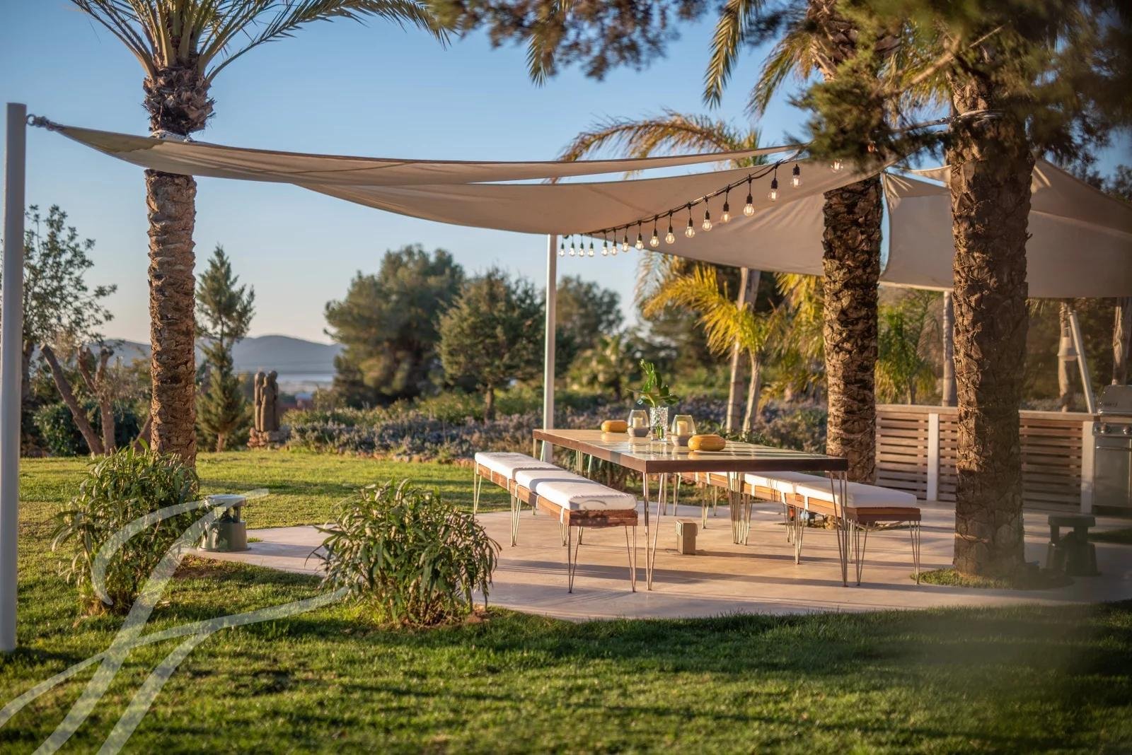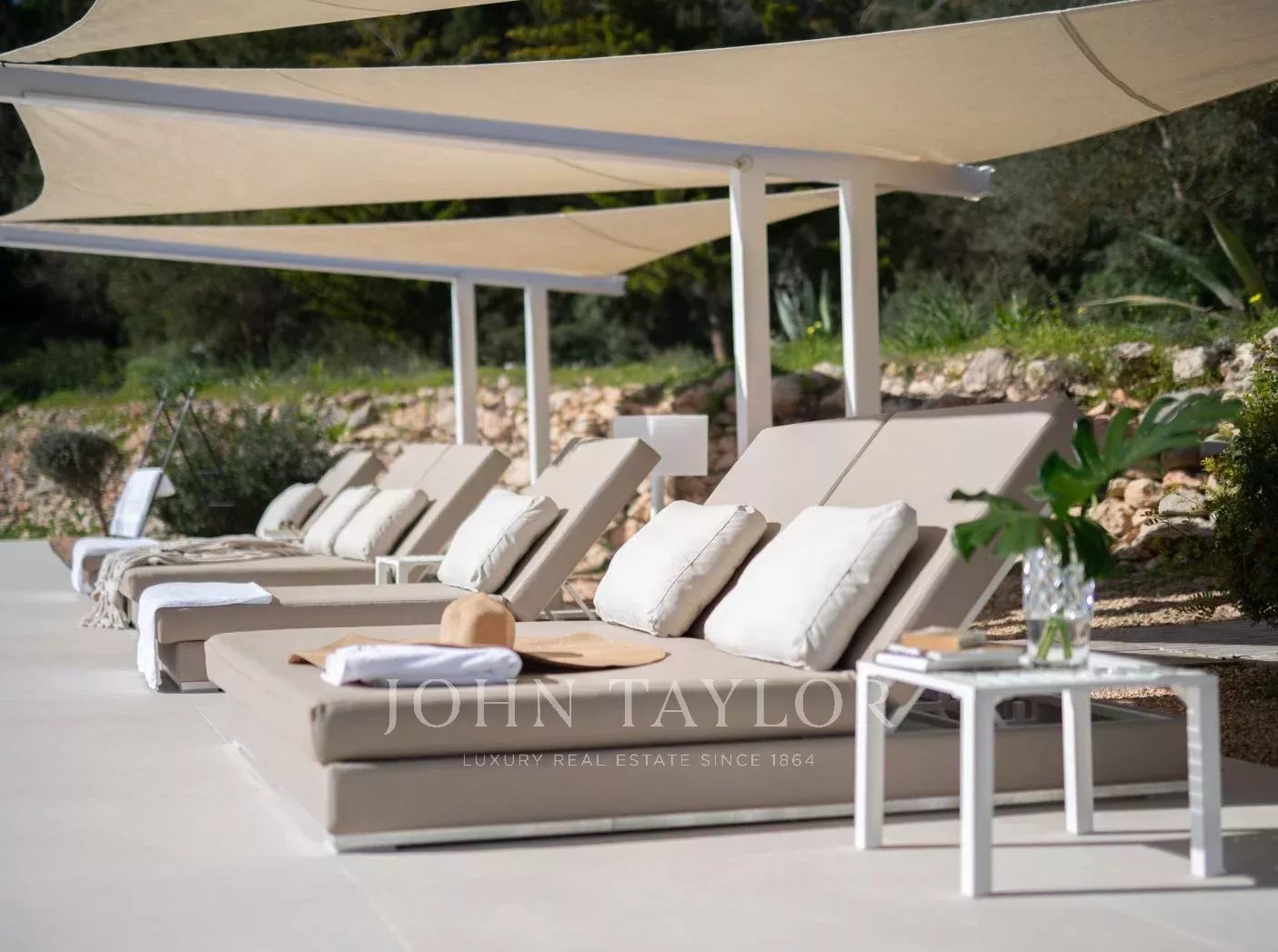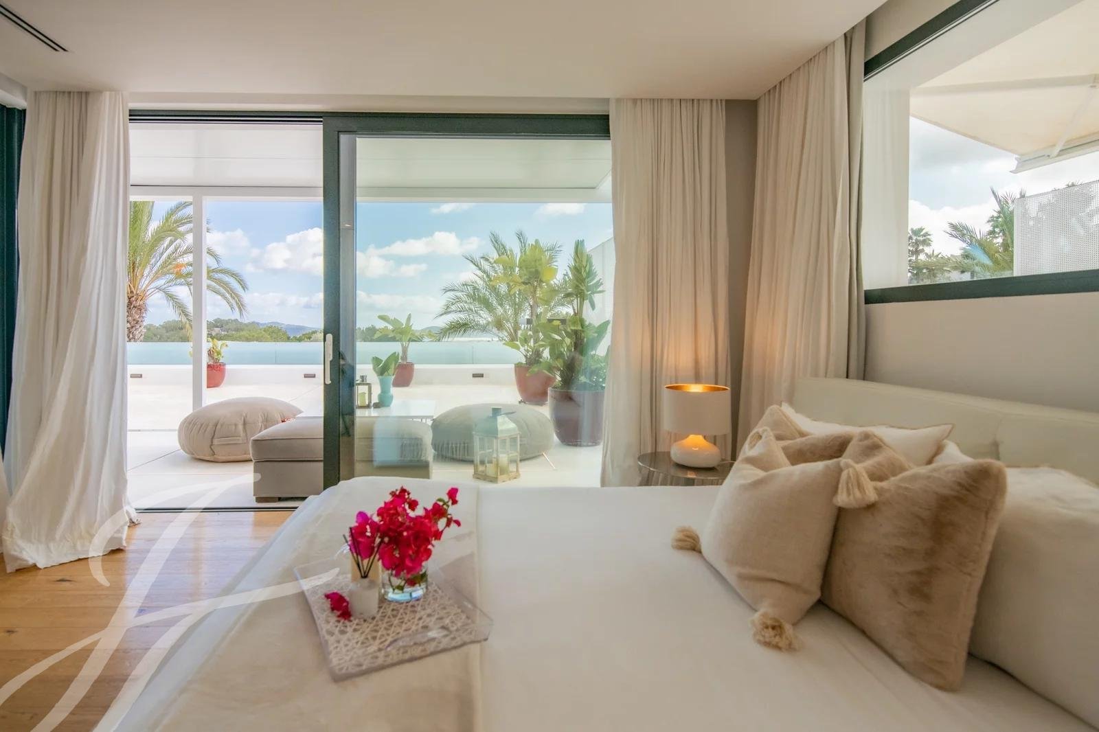 Diese prächtige Villa liegt nur 4 km von der pulsierenden Stadt Ibiza entfernt und bietet Ihnen einen unvergleichlichen Panoramablick auf die Salinen von Ibiza, Cap Falco, Playa den Bossa und die Insel Formentera. Mit sechs exquisit eingerichteten Suiten und einem Personalraum verbindet dieser himmlische Rückzugsort Modernität und Raffinesse und verspricht zu jeder Jahreszeit ein unvergessliches Erlebnis. Tauchen Sie ein in eine Atmosphäre der Ruhe und des Luxus, in der jeder Sonnenauf- und -untergang zu einem Spektakel für Ihre Sinne wird.