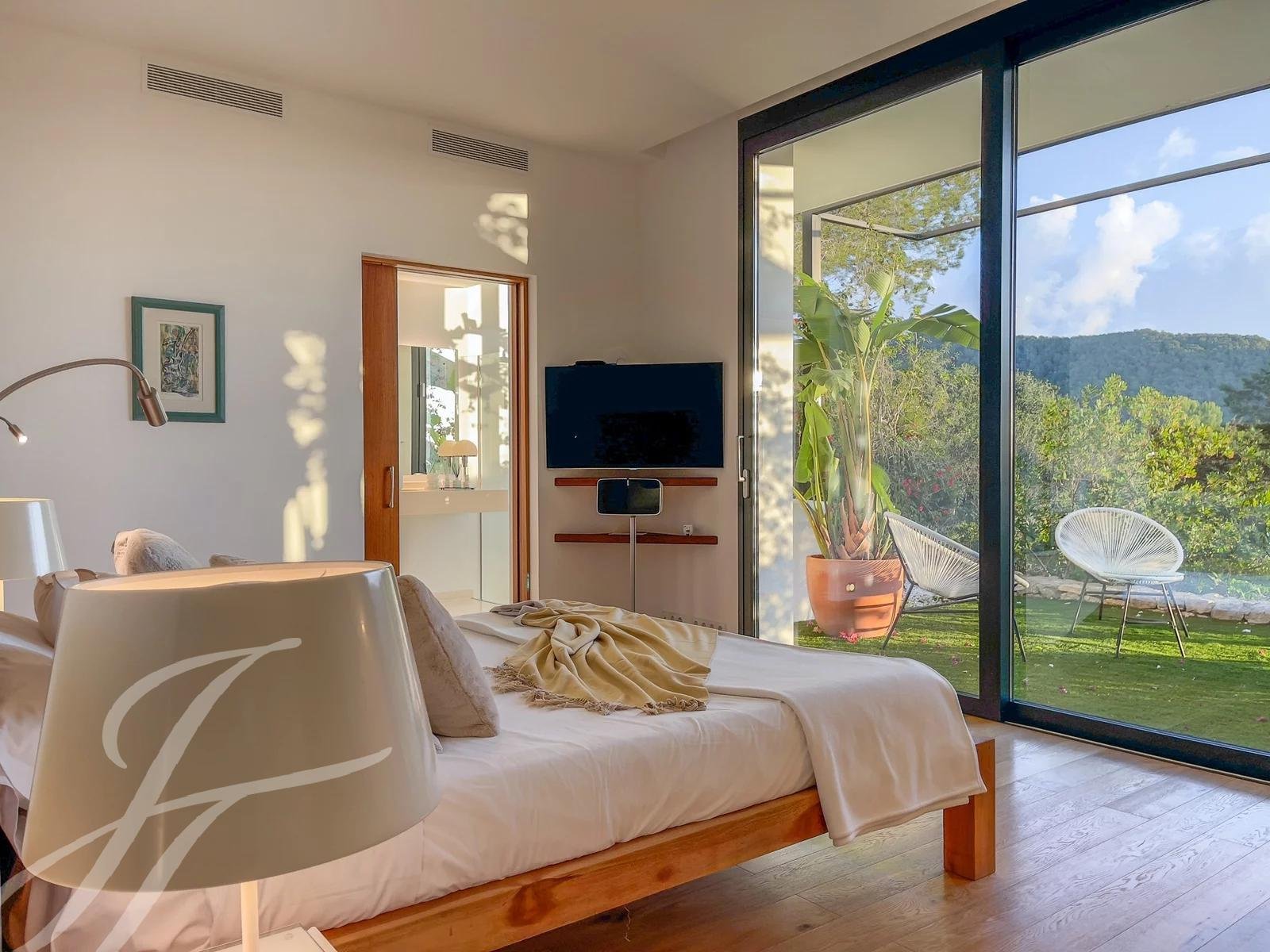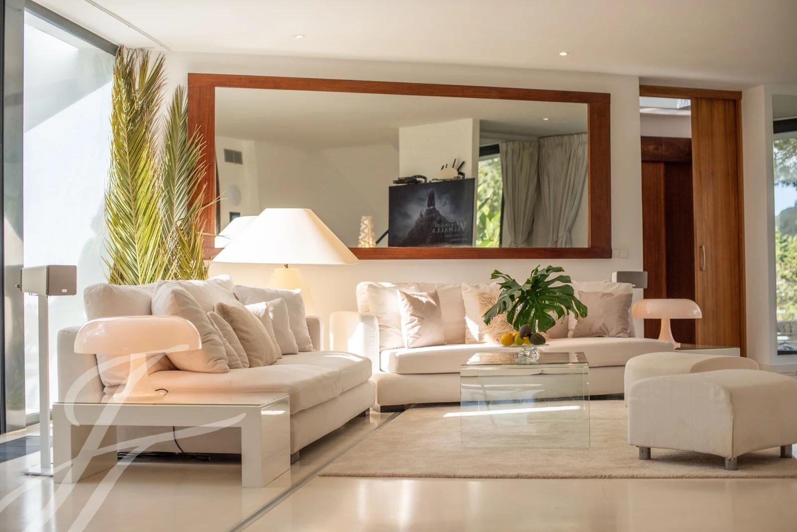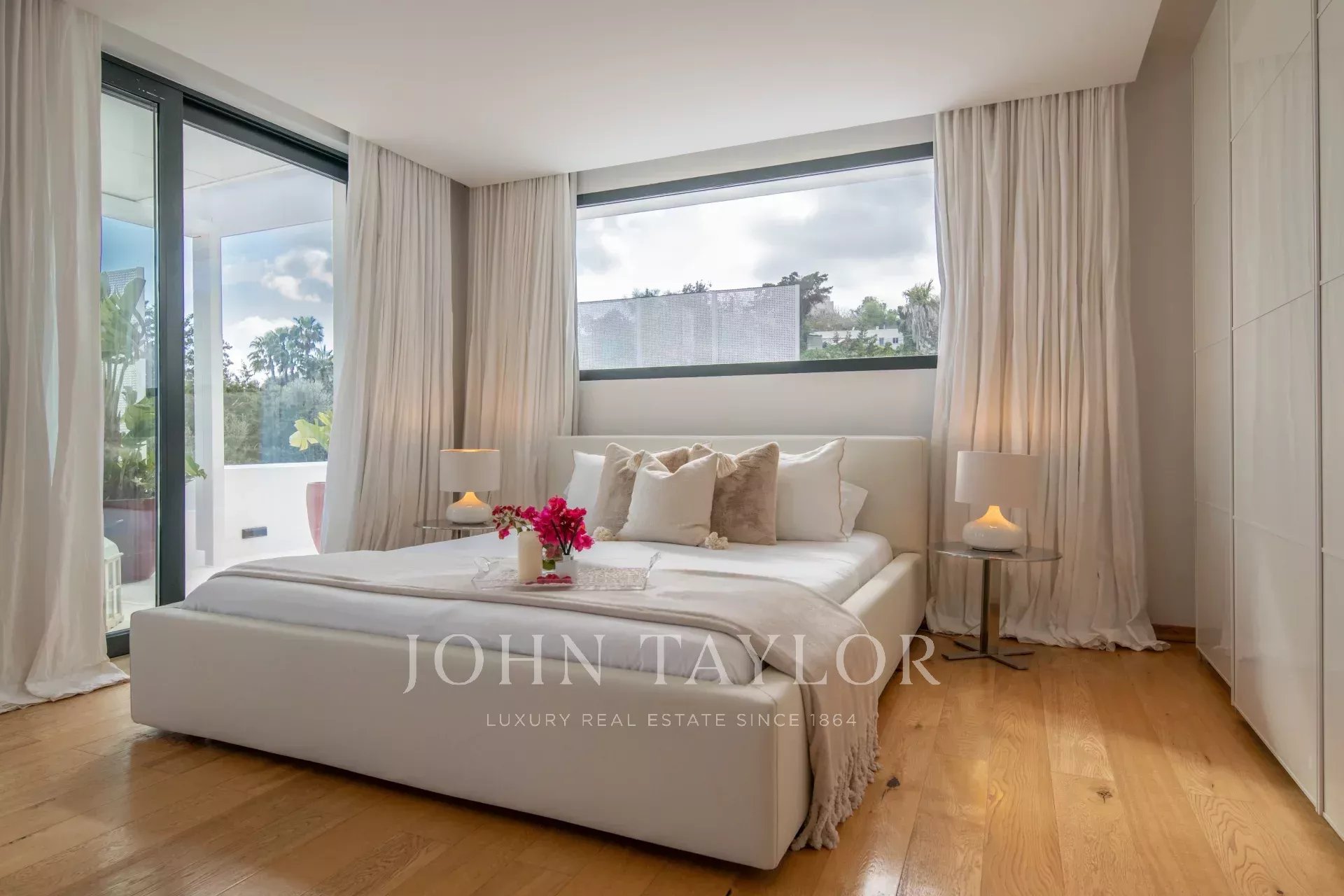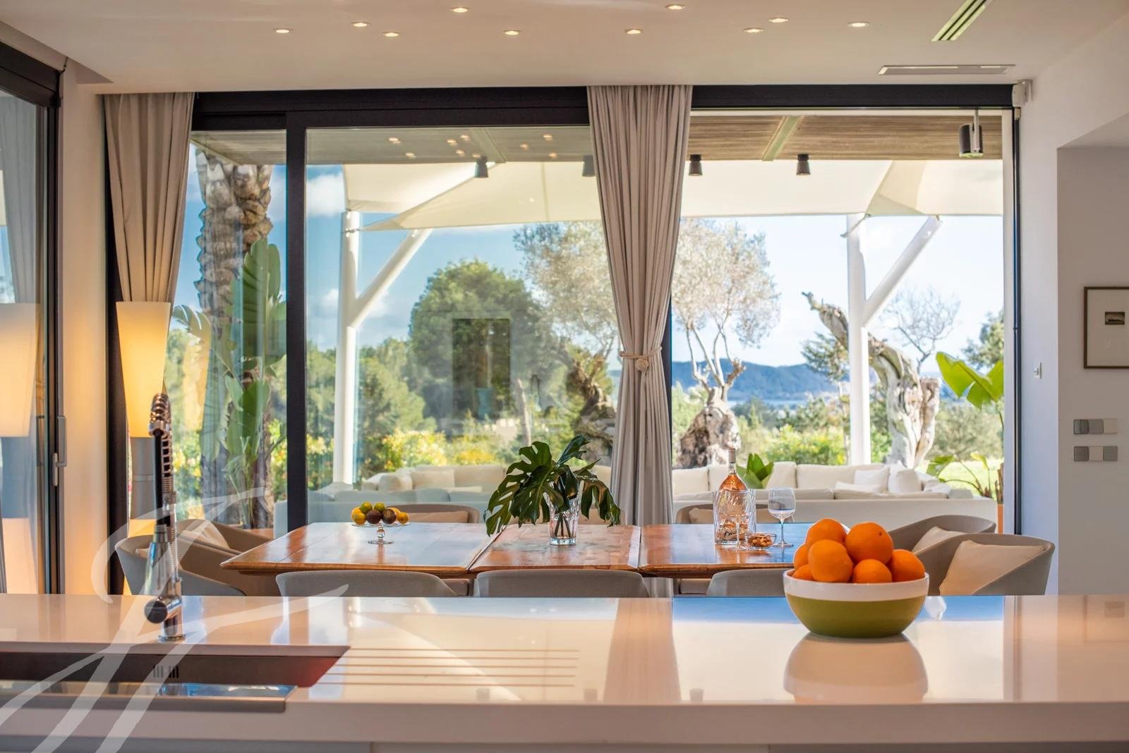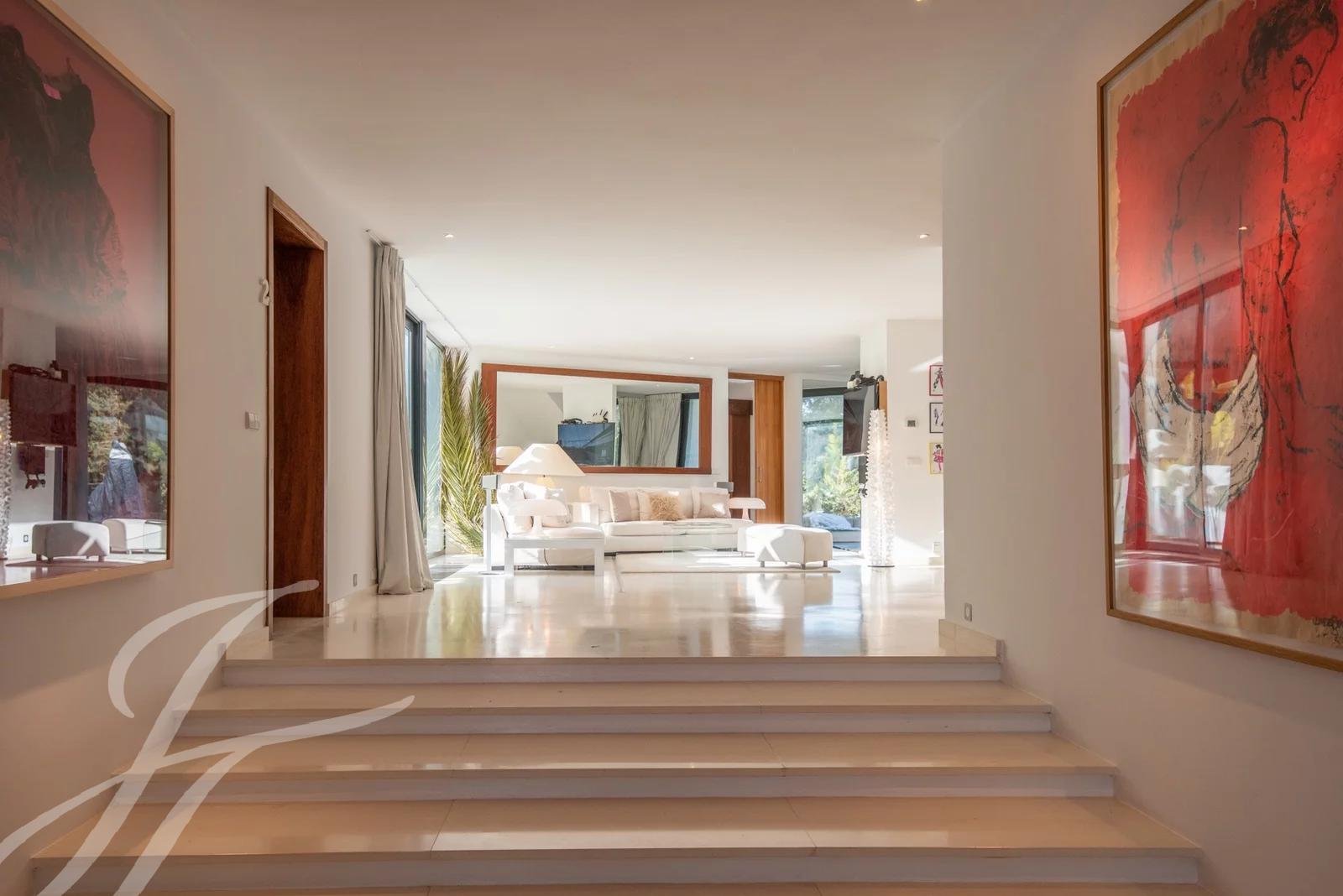 Diese prächtige Villa liegt nur 4 km von der pulsierenden Stadt Ibiza entfernt und bietet Ihnen einen unvergleichlichen Panoramablick auf die Salinen von Ibiza, Cap Falco, Playa den Bossa und die Insel Formentera. Mit sechs exquisit eingerichteten Suiten und einem Personalraum verbindet dieser himmlische Rückzugsort Modernität und Raffinesse und verspricht zu jeder Jahreszeit ein unvergessliches Erlebnis. Tauchen Sie ein in eine Atmosphäre der Ruhe und des Luxus, in der jeder Sonnenauf- und -untergang zu einem Spektakel für Ihre Sinne wird.
