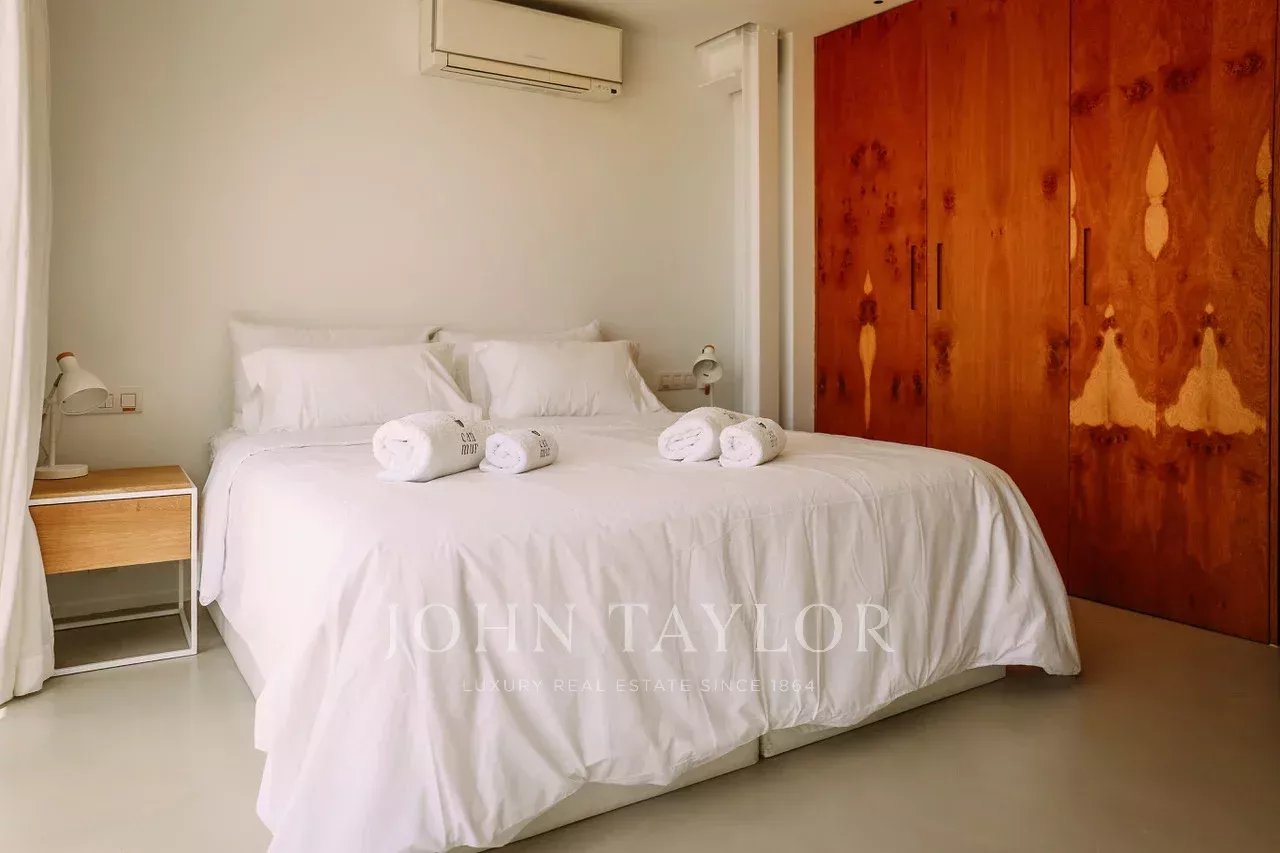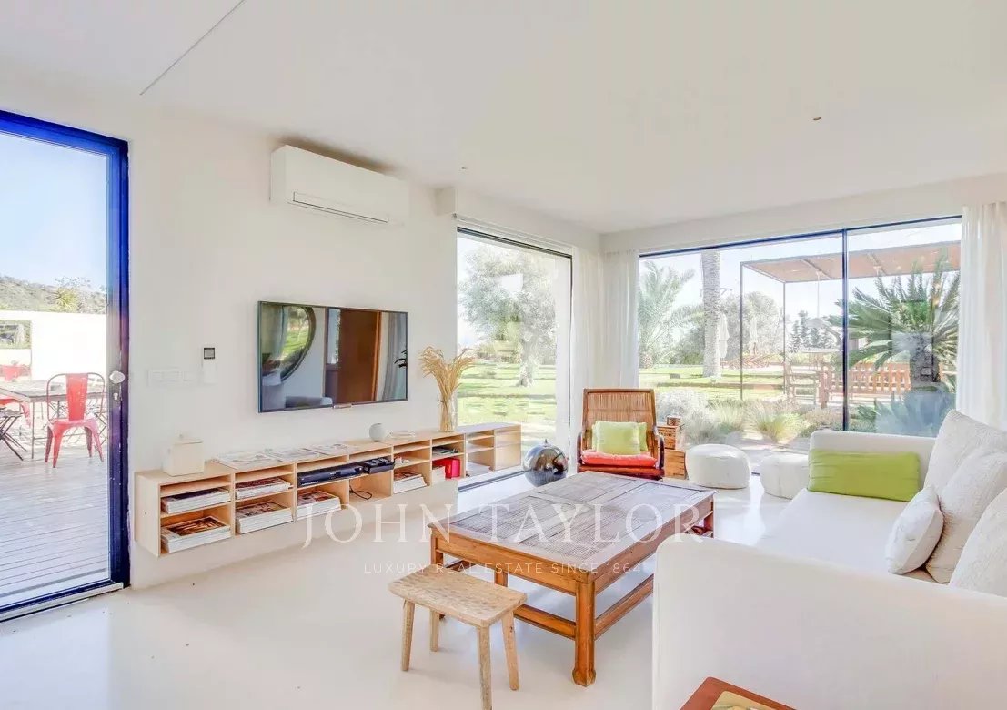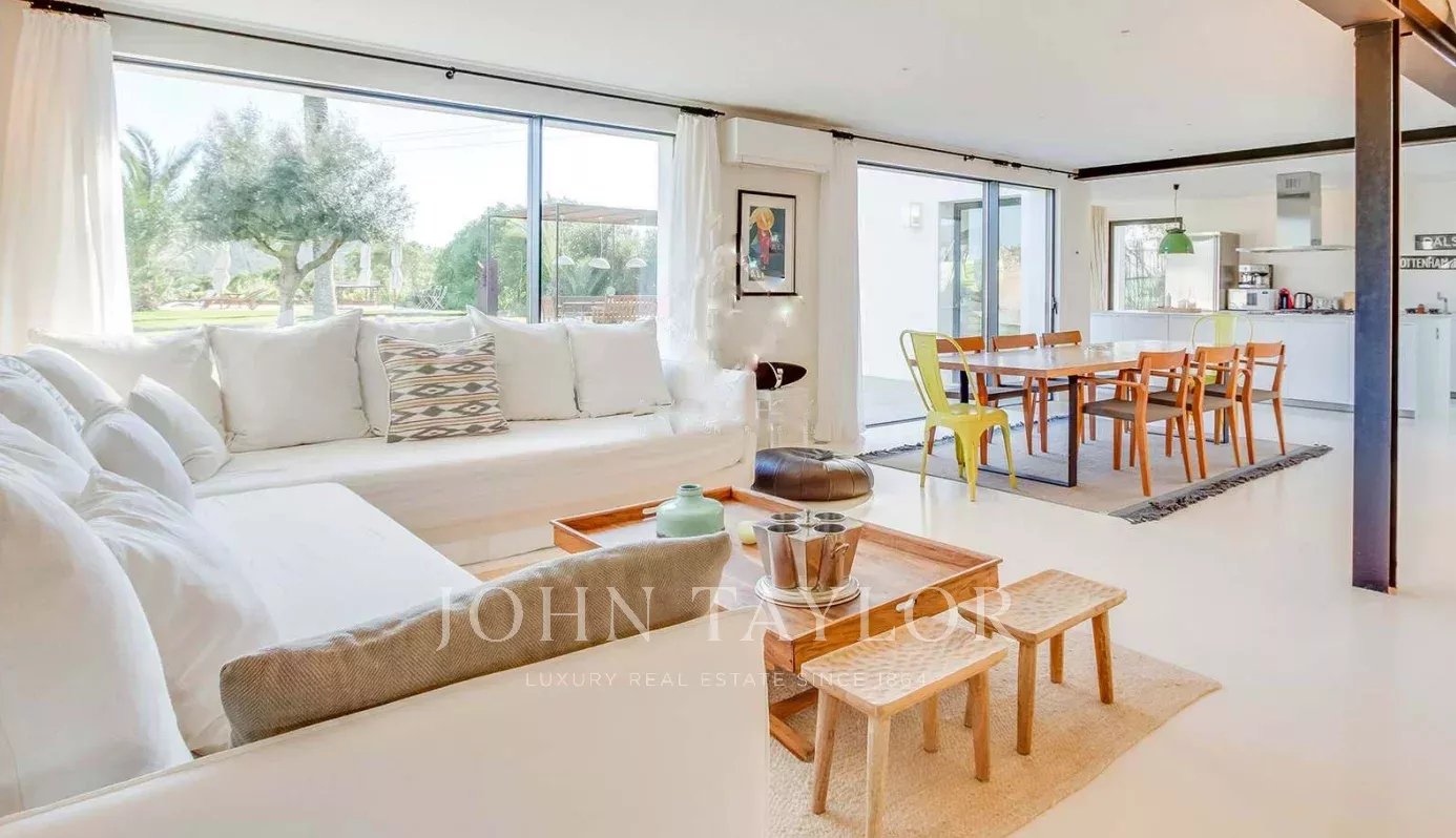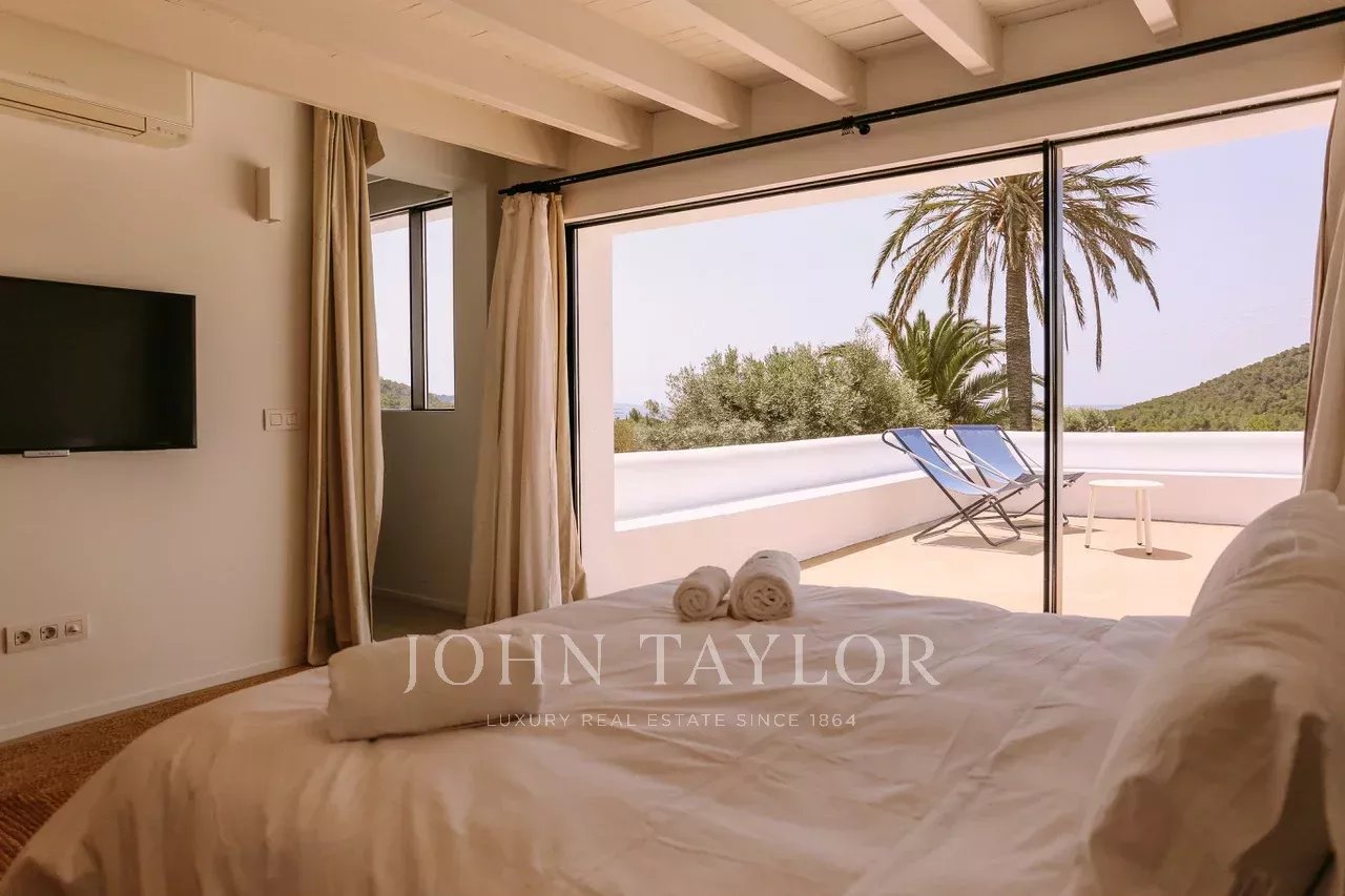 Nur wenige Minuten von den begehrten Stränden von Sa Caleta und Cala Jondal entfernt, bietet diese Villa nach einem sonnigen Tag oder einem Nachmittag in den exklusivsten Lokalen der Insel eine Oase der Ruhe.