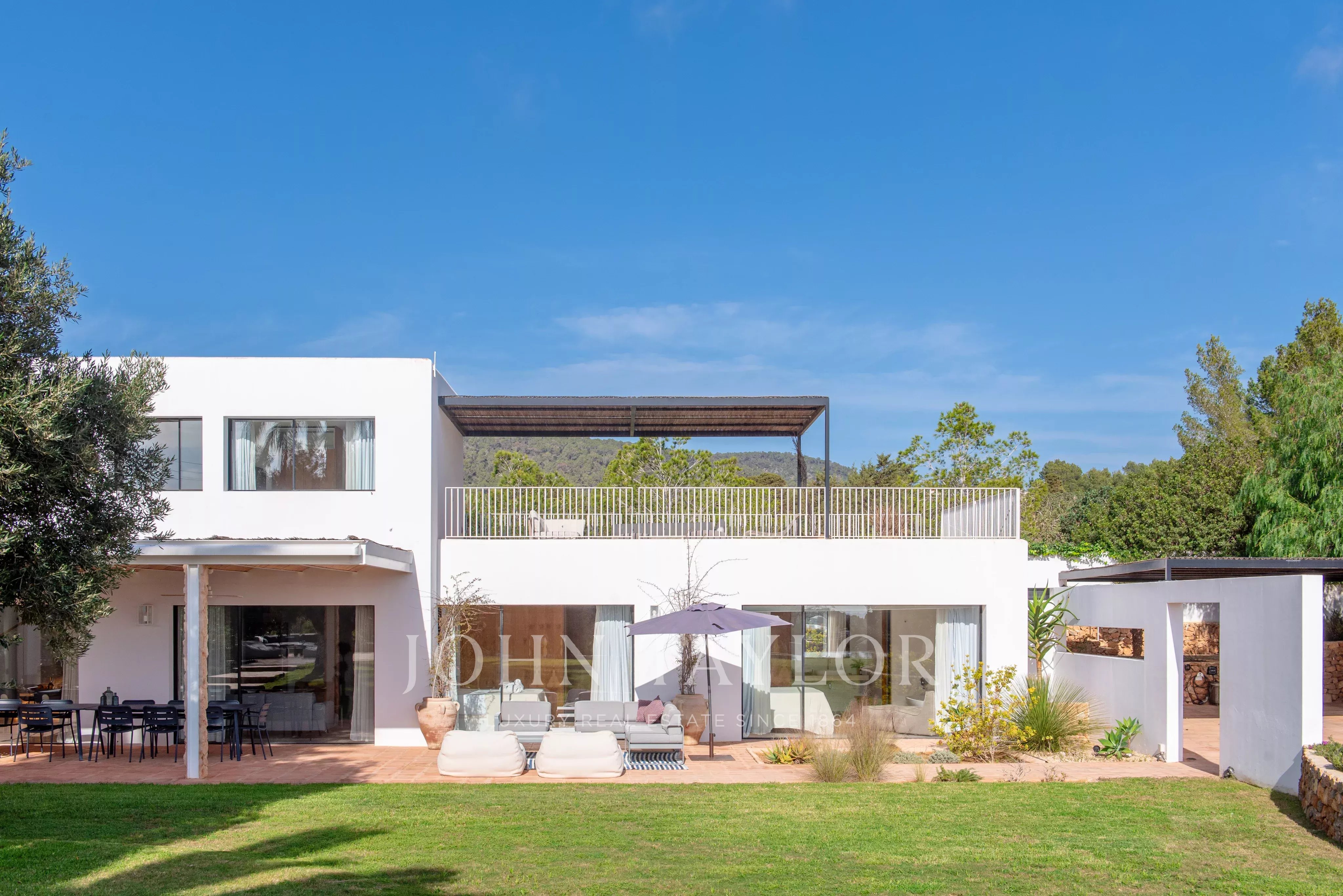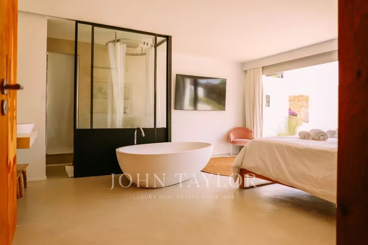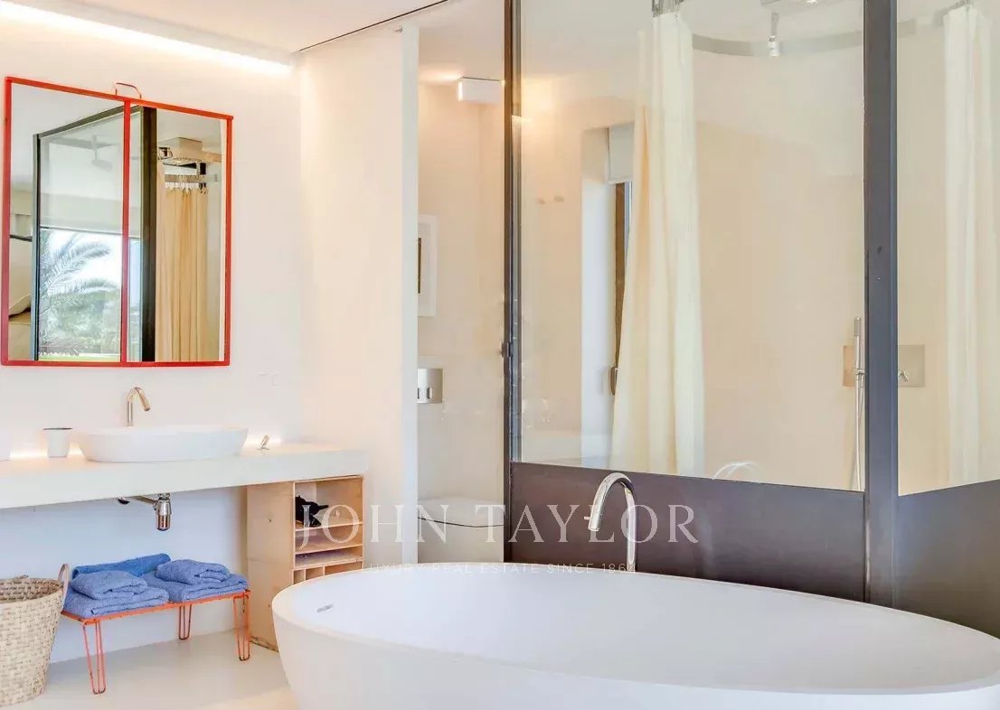 Nur wenige Minuten von den begehrten Stränden von Sa Caleta und Cala Jondal entfernt, bietet diese Villa nach einem sonnigen Tag oder einem Nachmittag in den exklusivsten Lokalen der Insel eine Oase der Ruhe.