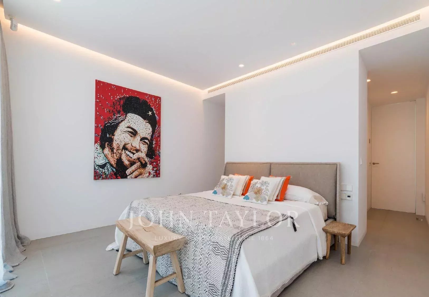 Die Immobilie ist auf einer Ebene gebaut, was für täglichen Komfort sorgt. Sie bietet fünf Doppelschlafzimmer mit jeweils eigenem Bad, einen eleganten offenen Wohnbereich und eine moderne Küche mit hochwertigen Geräten. Die Gemeinschaftsbereiche öffnen sich zur Terrasse, zum Garten und zum 20 Meter langen Infinity-Pool, der im April, Mai, Oktober und November ohne Aufpreis beheizt werden kann.