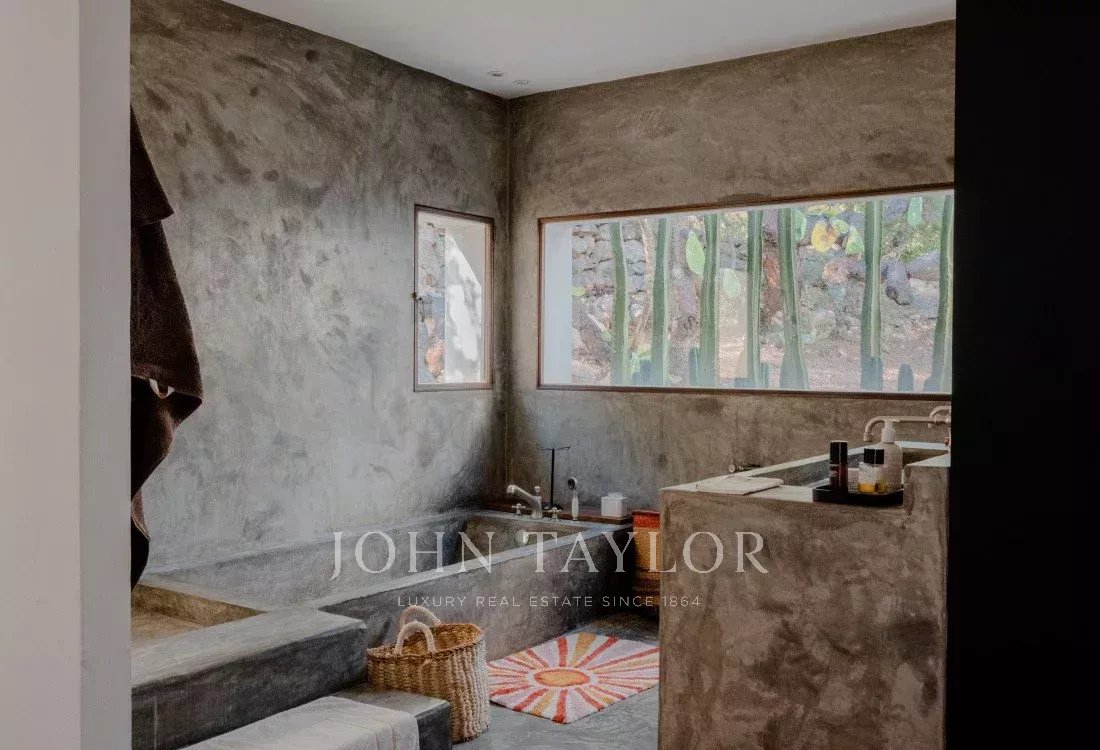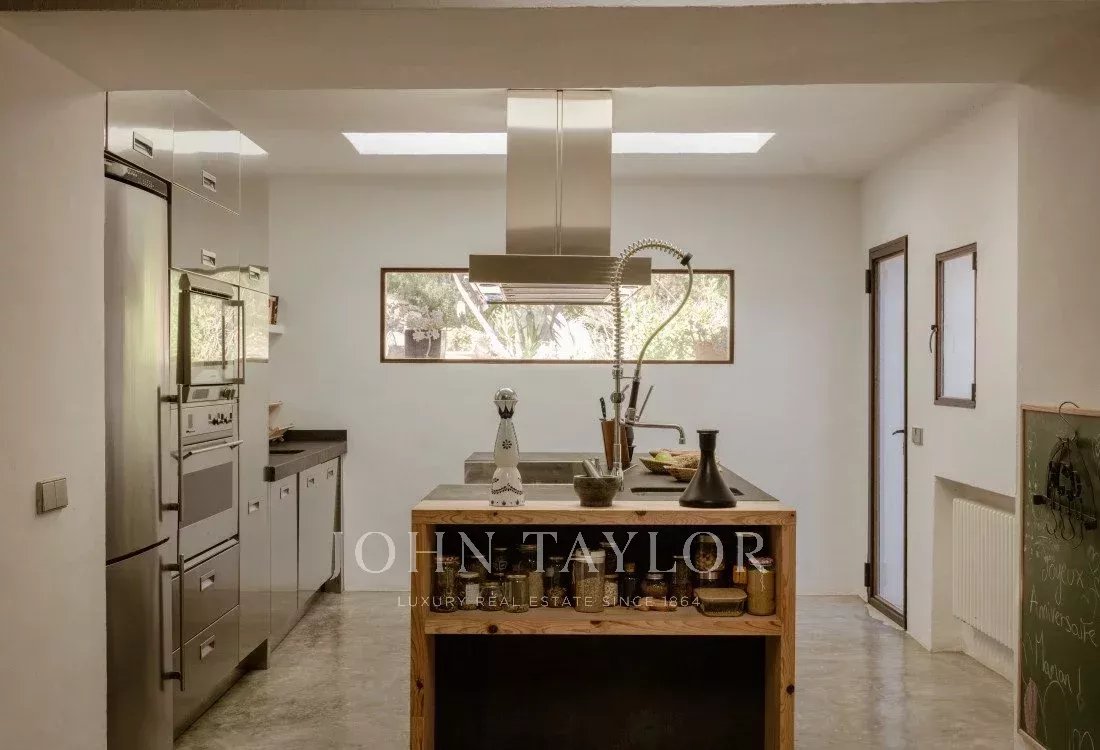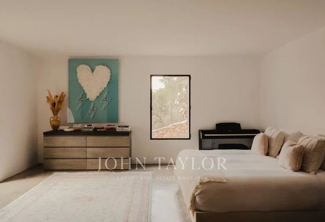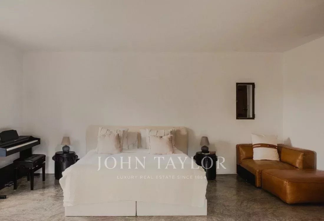 Mit einer Fläche von 550 Quadratmetern bietet Can Nikita sechs luxuriöse Schlafzimmer, jedes mit eigenem Bad, was Privatsphäre und Komfort für bis zu zwölf Personen garantiert. Auch der Außenbereich beeindruckt mit einem Infinity-Salzwasserpool, ruhigen Terrassen und üppigen Gärten, die zu Entspannung und Erholung einladen und eine perfekte Umgebung schaffen, um die Ruhe der Natur zu genießen.