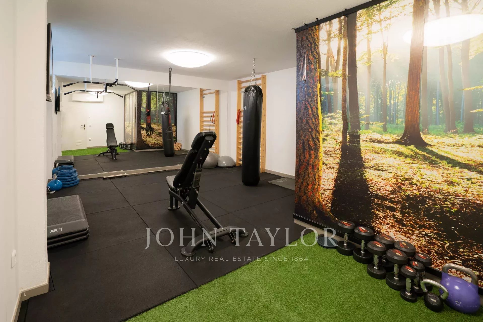 Umgeben von 17.000 Quadratmetern üppiger Gärten, bietet dieses Anwesen unter anderem einen Swimmingpool, ein Gästehaus, einen Grillplatz, einen Fitnessraum und einen Miniclub.