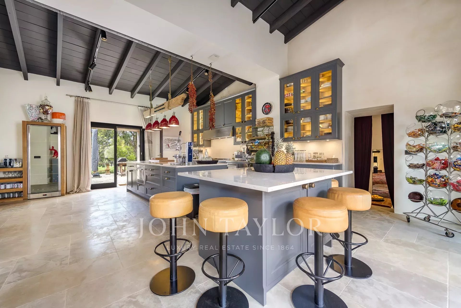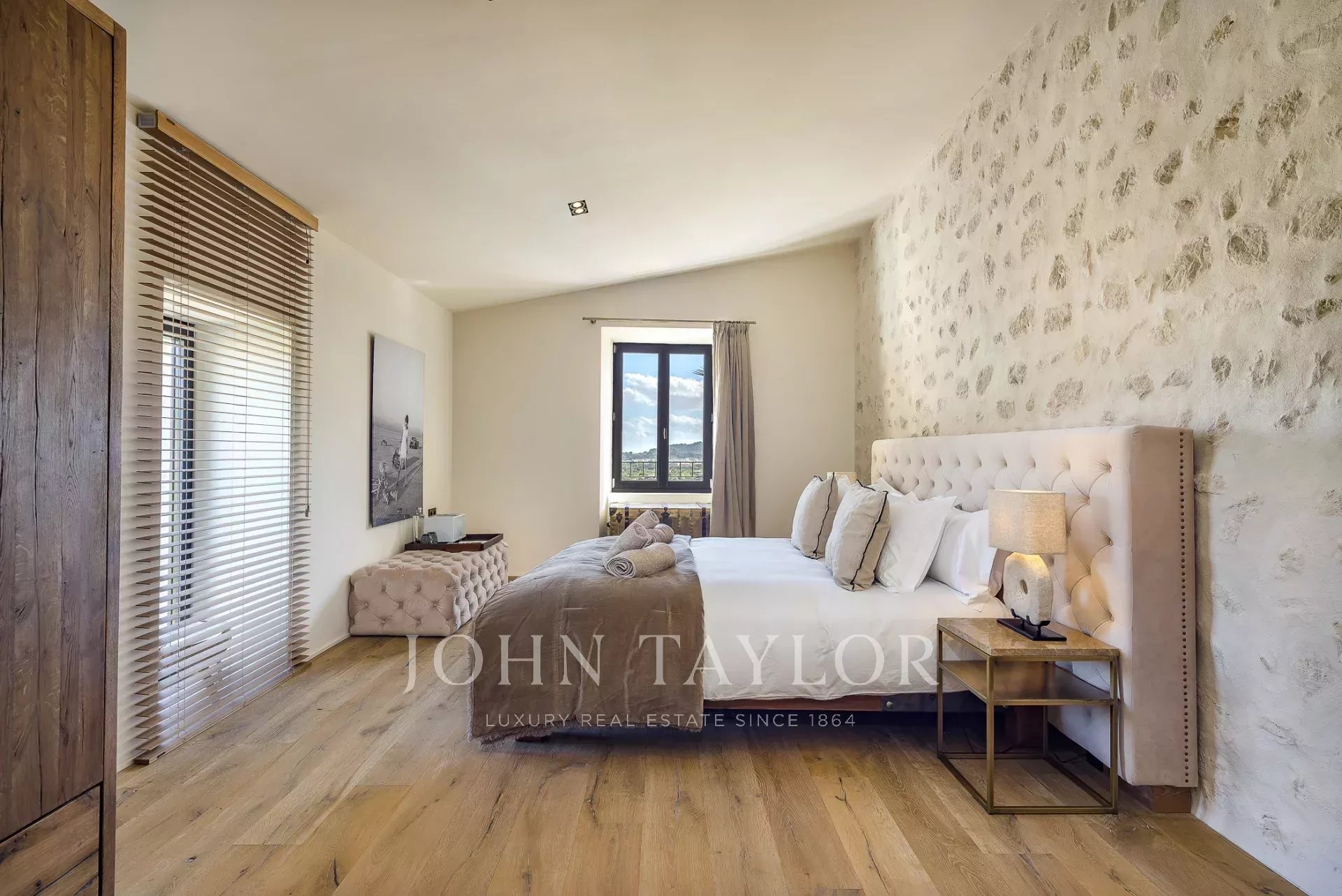 Dieses einzigartige Anwesen Spirit of Son Fuster bietet Besuchern einen exklusiven Service in einem privaten Luxushotel. Das Fincahotel bietet viel Privatsphäre und ist ideal für Geschäftstreffen oder einen Aufenthalt mit Freunden und Familie ohne Kompromisse. Diskreter Service unter Wahrung der Privatsphäre ist rund um die Uhr verfügbar. Die Finca kann bis zu 20 Personen in 10 Doppelzimmern beherbergen. Jedes der Schlafzimmer verfügt über Kingsize-Betten, ein eigenes Bad und Fußbodenheizung. Verschiedene Speisesäle, Konferenzräume, ein Kino, ein Spa-Bereich und ein privater Nachtclub bieten viel Abwechslung. Ein professioneller Küchenchef erfüllt höchste Ansprüche und stellt sich auf jeden Gast individuell ein. Hier erwartet die Gäste ein reichhaltiges, gesundes und frisches Verpflegungskonzept ohne Kompromisse bei der Qualität. Ein großer Poolbereich mit Sonnenliegen und marokkanischen Berberzelten bietet viel Platz zum Entspannen und Sonnenbaden. Der Wellnessbereich verfügt über ein Dampfbad, eine Infrarotsauna und eine traditionelle Sauna. Neben dem Duschbereich befindet sich ein separater Raum für Schönheitsbehandlungen und Massagen. Jogging- und Wanderwege befinden sich in der Nähe des Anwesens. Ein gut ausgestatteter Fitnessraum und ein privater Padel-Platz sind ebenfalls vorhanden.