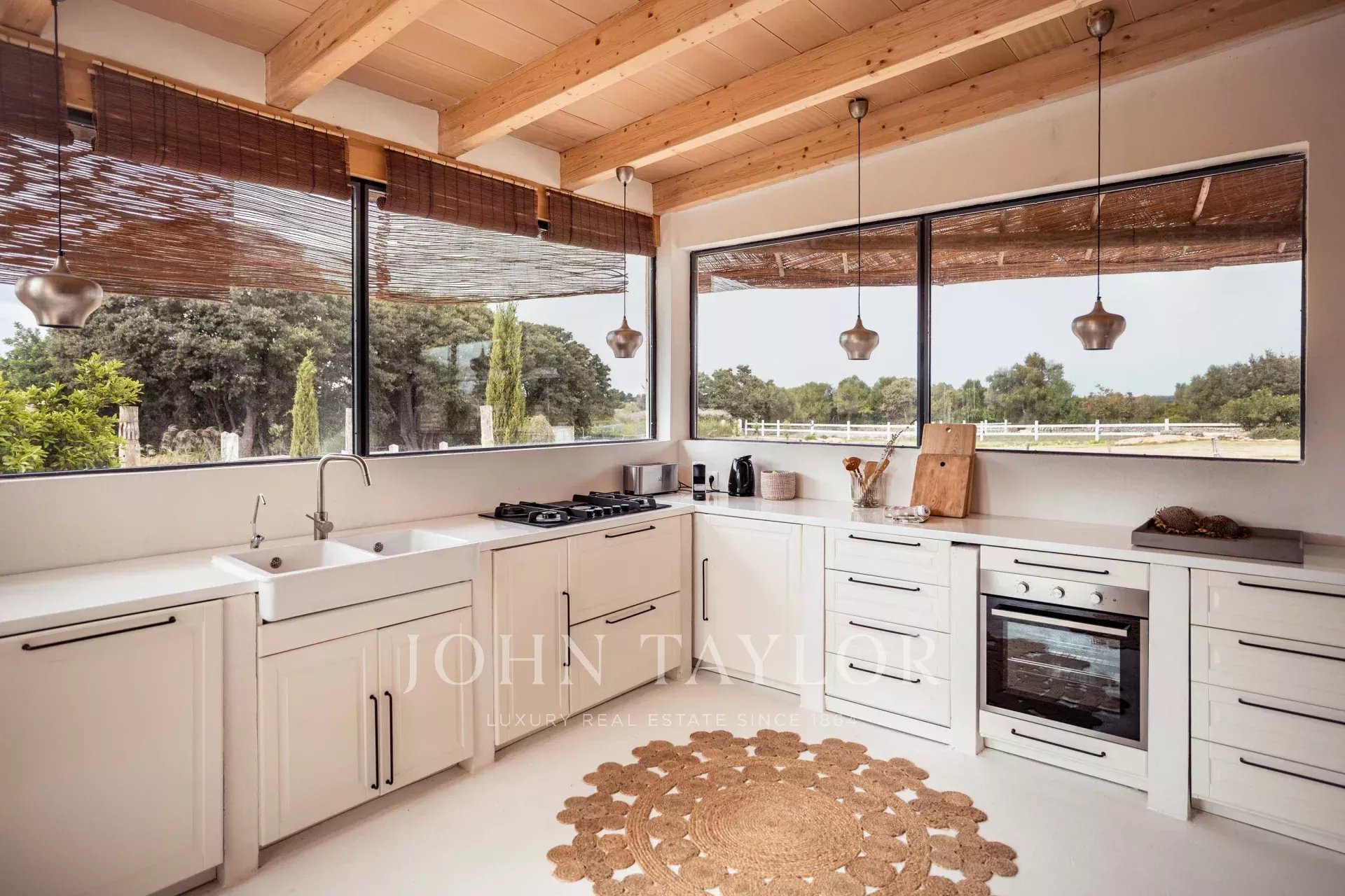 Die wunderschöne Finca Only Summer wurde im Jahr 2020 komplett renoviert und besticht mit ihrem außergewöhnlichen Design. Die Verbundenheit mit der Natur steht hier im Vordergrund. Warme Texturen und Farben, gepaart mit modernem Design sorgen für eine ganz besondere Wohlfühlatmosphäre. Ein exotischer Rückzugsort der Entspannung. Die Finca bietet Platz für bis zu 10 Personen in 5 Doppelschlafzimmern. 3 der Schlafzimmer befinden sich im Haupthaus, 2 im Nebengebäude. Alle Schlafzimmer verfügen über ein Badezimmer en-suite mit Dusche, Klimaanlage und Fußbodenheizung. Die offene Wohnküche ist hell und der angrenzende Wohnraum wird aufgrund der großen Fensterfront lichtdurchflutet. Das Haus verfügt über Satelliten TV, Wlan und eine Sonos Musikanlage. Ein großer Pool im Außenbereich (gegen Aufpreis beheizbar) sorgt für Erfrischung an heißen Tagen. Auf dem Anwesen im Herzen Mallorcas umgeben einer wunderschönen Landschaft mit Blick auf das Tramuntana Gebirge befinden sich zahlreiche Obstbäume und ein Bio-Gemüsegarten. Auf der Finca Only Summer befindet sich auch eine über 10.000 m2 große Pferdekoppel mit majestätisch schönen Pferden. Zum nahegelegenen Ort Llubi sind es nur wenige Minuten, die Inselhauptstadt Palma erreichen Sie nach ca. 45 Minuten mit dem PKW.