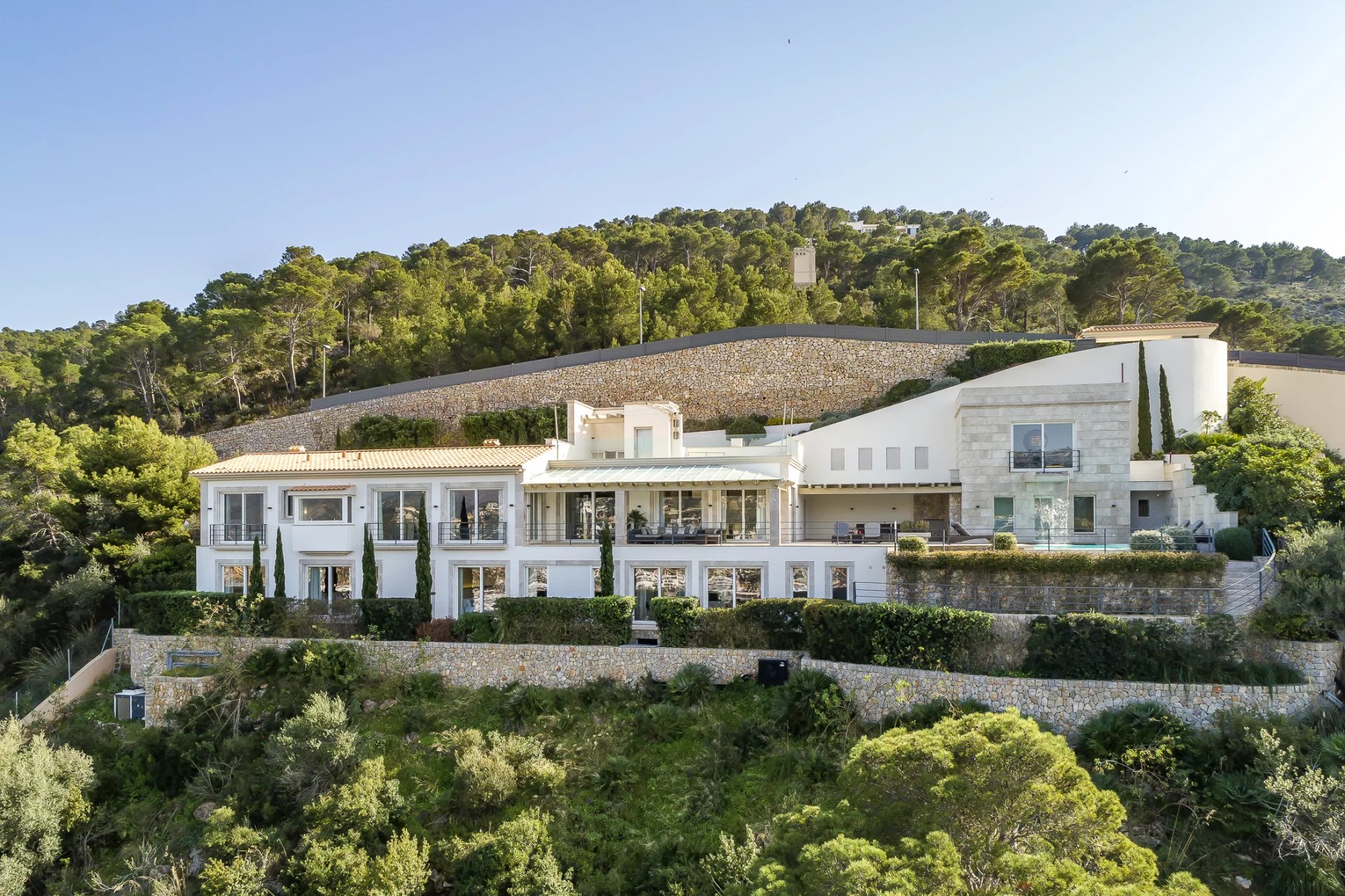 Die Villa verfügt über ein eigenes Domotiksystem, das von jedem Ort aus über ein iPad gesteuert werden kann. Der Hafen und die Promenade von Puerto de Andratx mit ihren zahlreichen Boutiquen, Kunstgalerien und erstklassigen Restaurants sind in nur wenigen Minuten zu Fuß erreichbar. Golfliebhaber kommen auf dem nahe gelegenen Golfplatz in Camp de Mar auf ihre Kosten, der nur einer von vielen Golfplätzen auf Mallorca ist. Die Inselhauptstadt Palma ist ca. 20 Autominuten entfernt, der Flughafen ist in ca. 25 Autominuten zu erreichen.