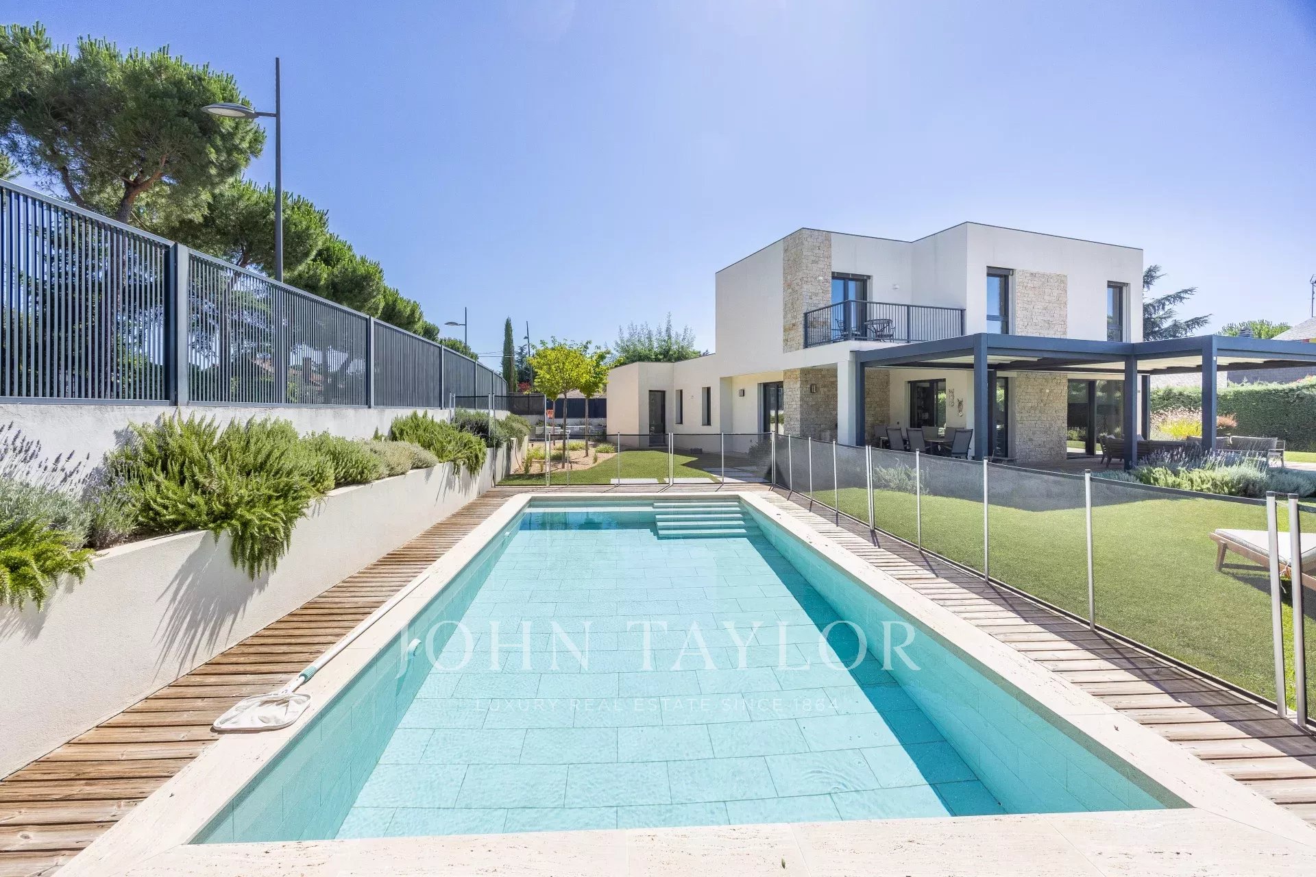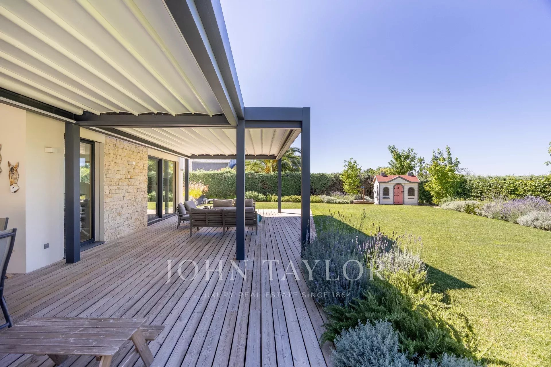 Das Äußere ist vergleichbar, mit einem Garten von einem renommierten Landschaftsarchitekten entworfen, erfüllt auch die Notwendigkeit für einen niedrigen Wasserverbrauch und erstellt mehrere verschiedene Umgebungen, Salzwasser-Schwimmbad, Veranda mit Pergola der italienischen Konstruktion mit versenkbarem Dach und Ofen-behandelten Kiefernholzboden, Gartenbeleuchtung, Lautsprecheranschlüsse...
