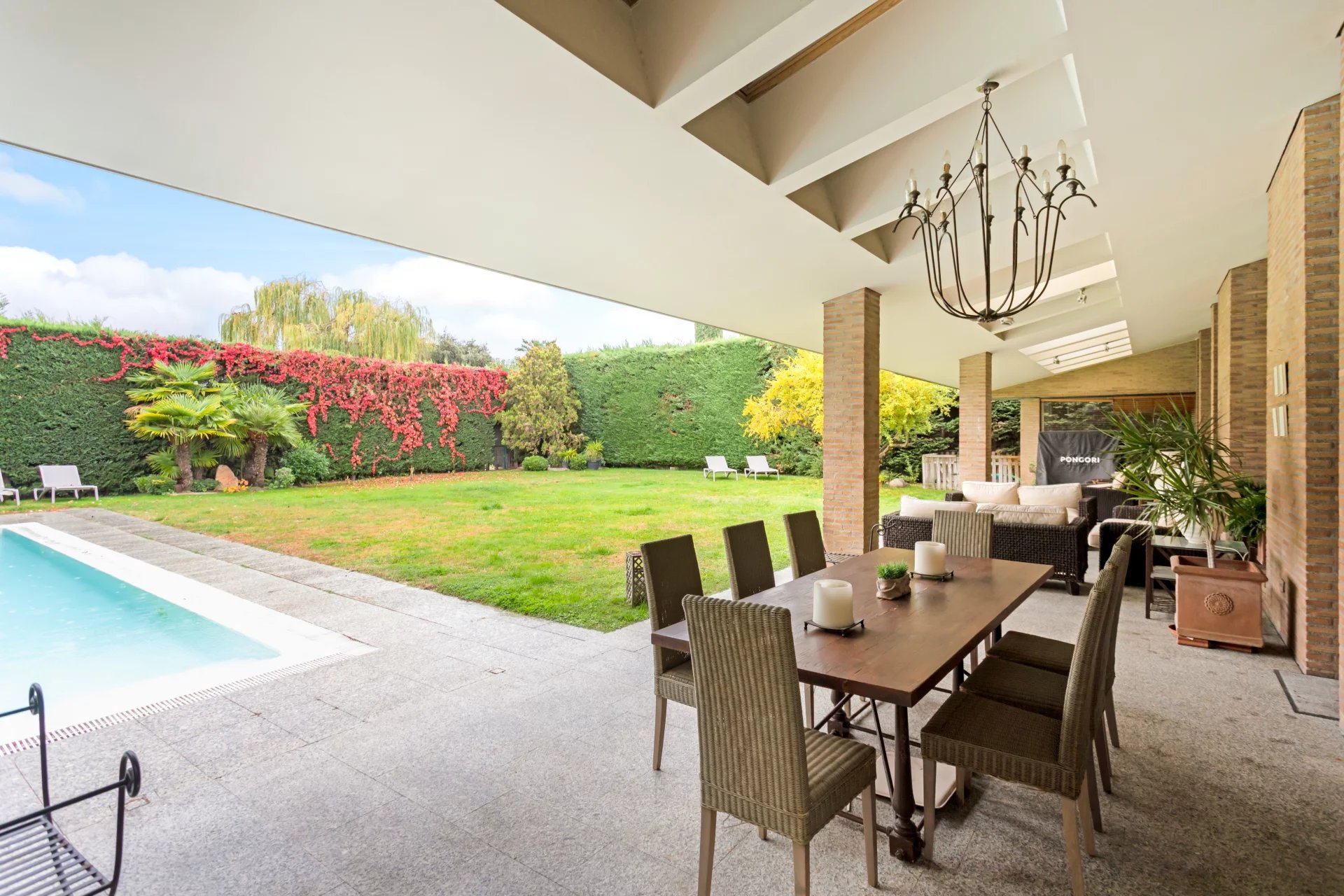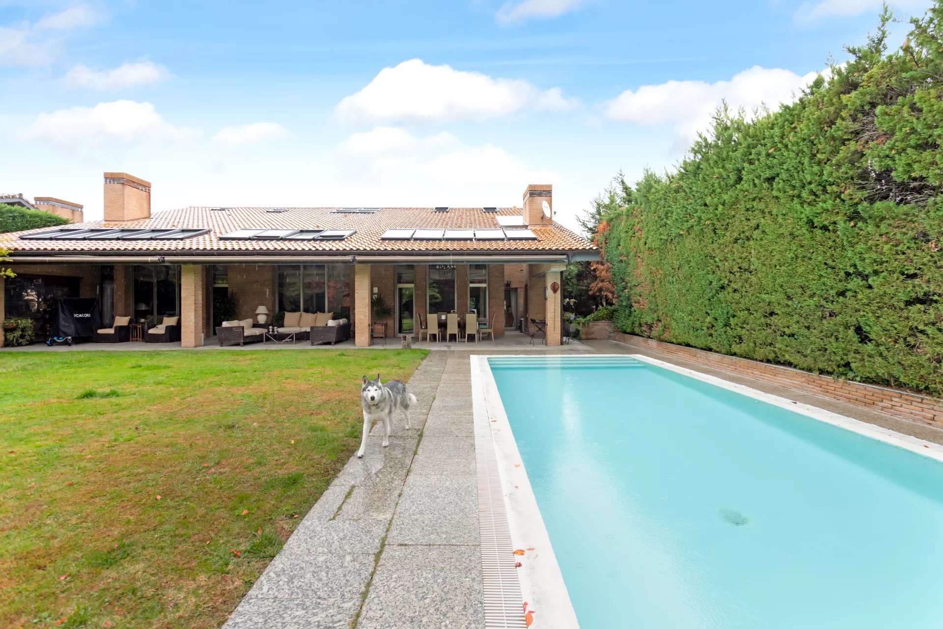 Die Immobilie ist innen und außen mit Holz verkleidet, verfügt über eine individuelle Erdgasheizung, eine Klimaanlage, eine Alarmanlage und einen spektakulären privaten Swimmingpool. Die Urbanisation bietet außerdem eine große zentrale Wiese mit Seen und üppiger Vegetation, die die Umgebung in eine wahre Oase der Ruhe und Exklusivität verwandelt.
