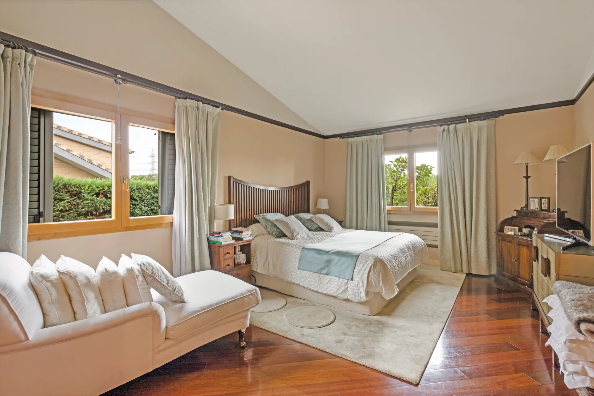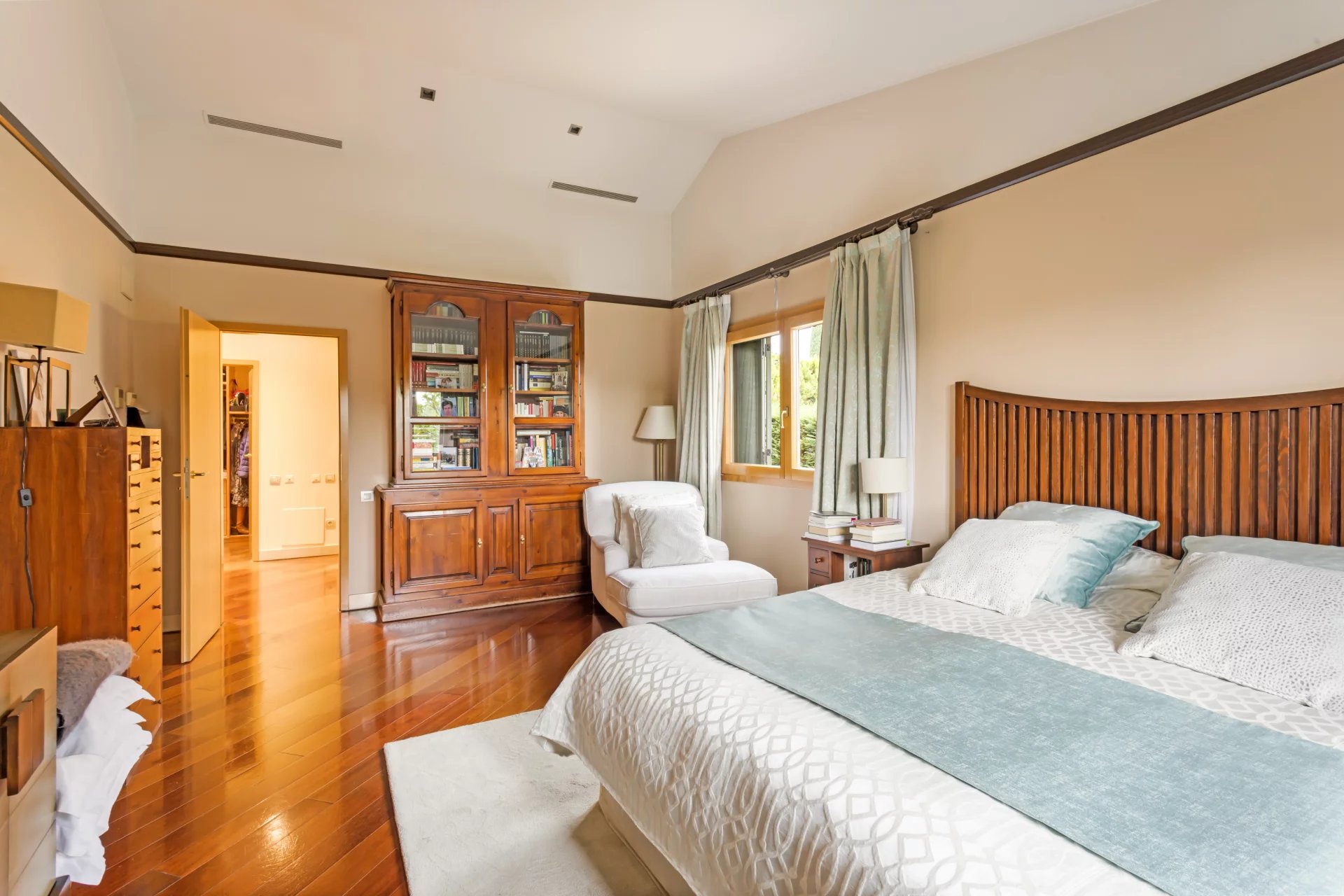 Das Hauptschlafzimmer mit Ankleideraum und eigenem Bad.