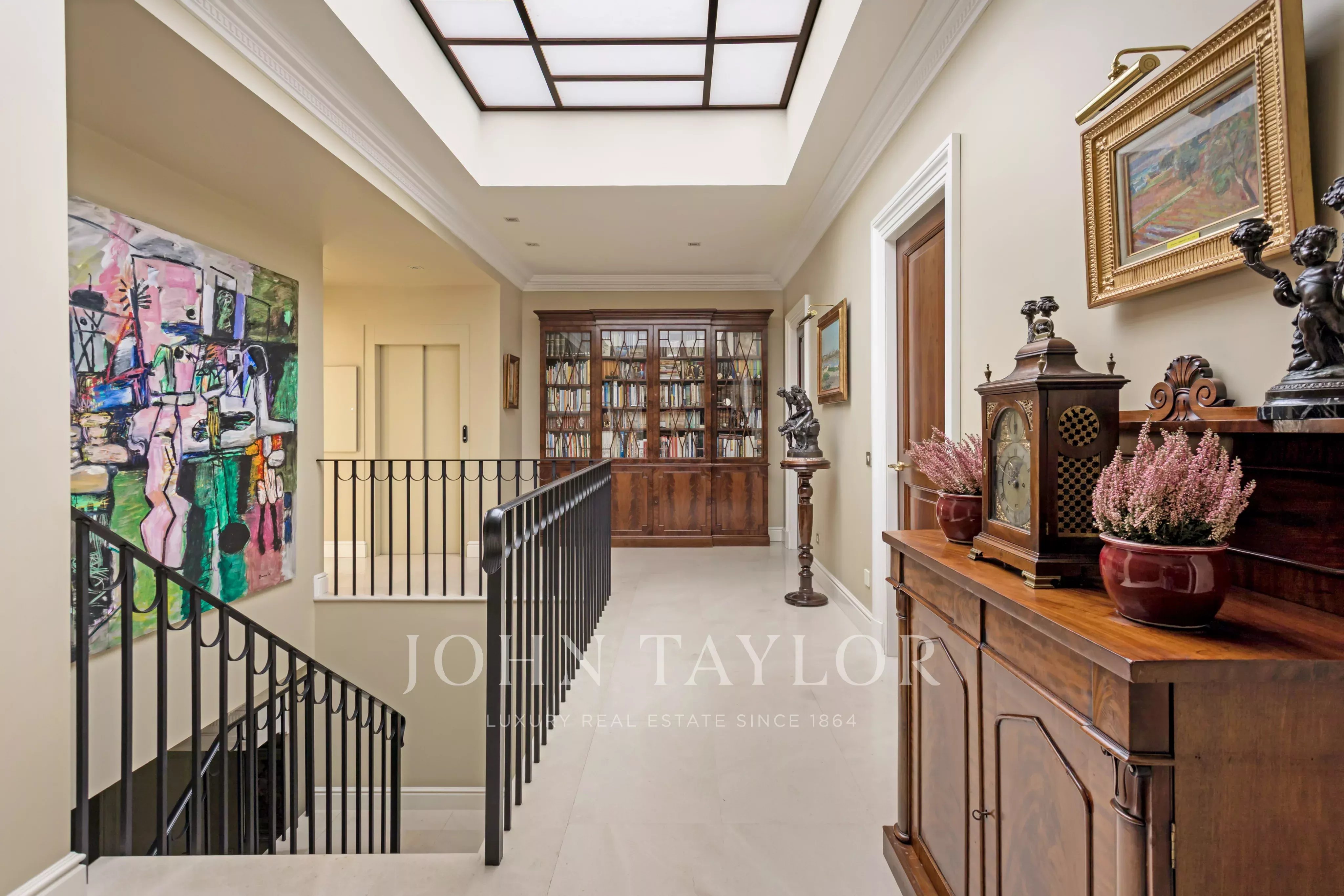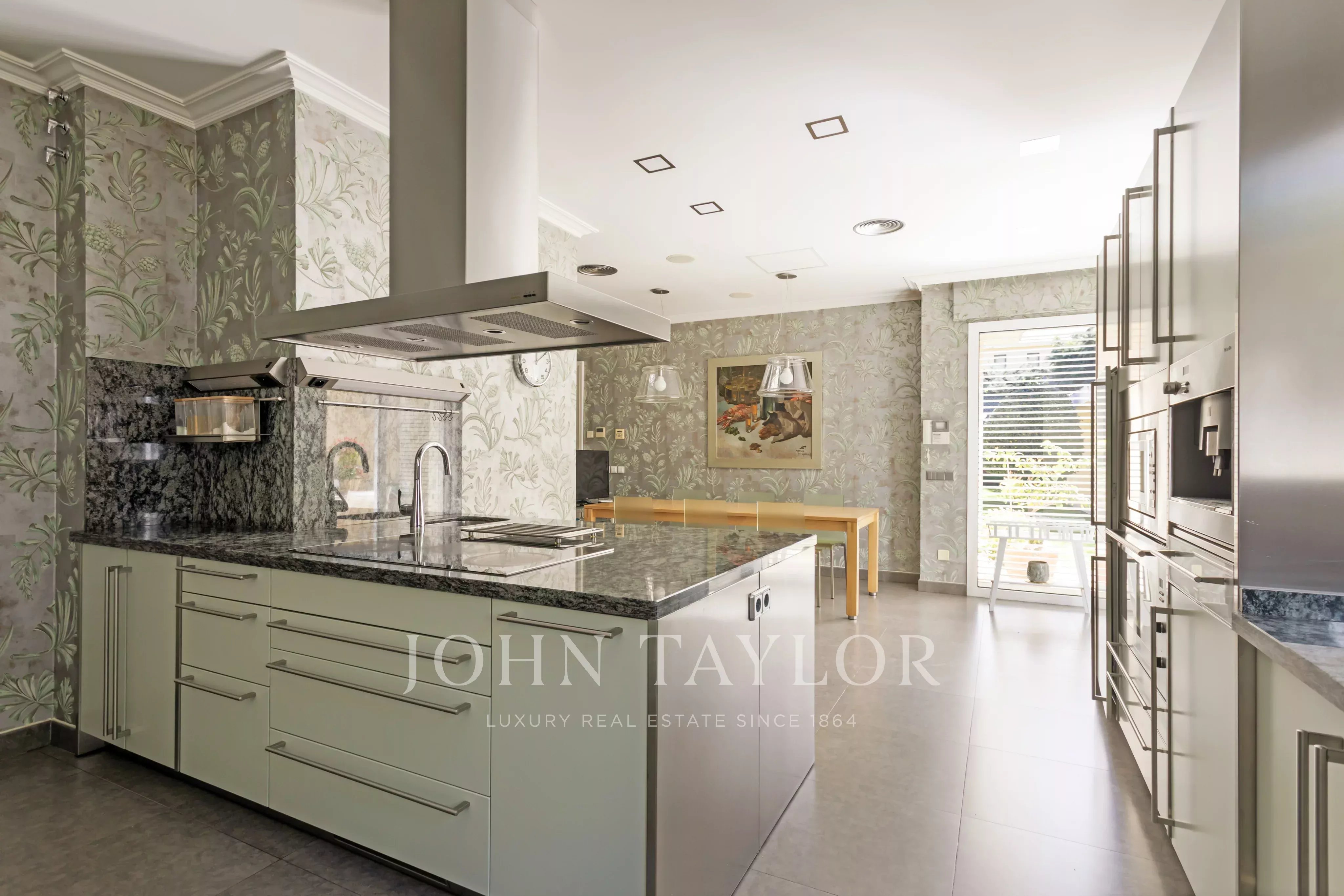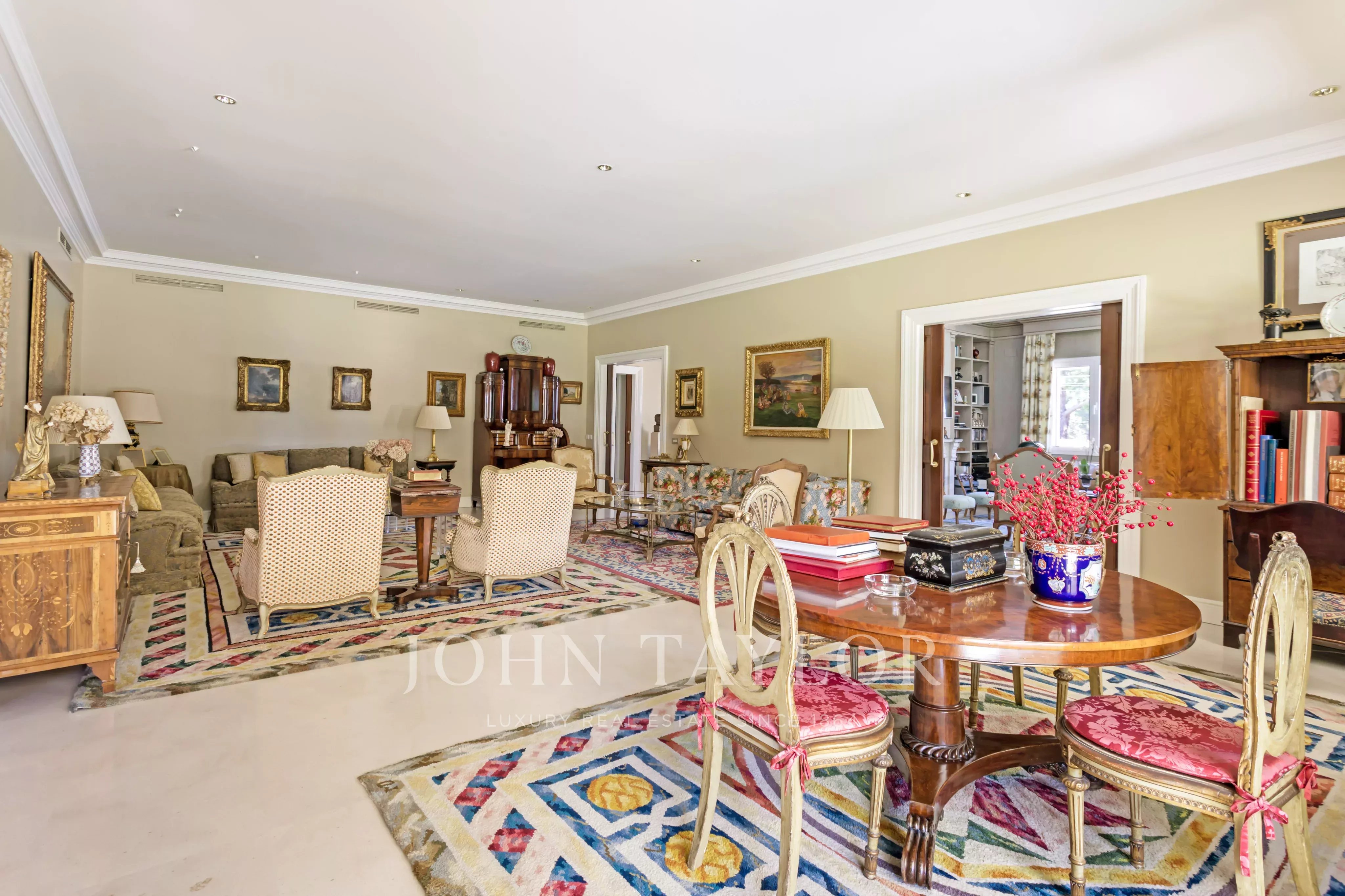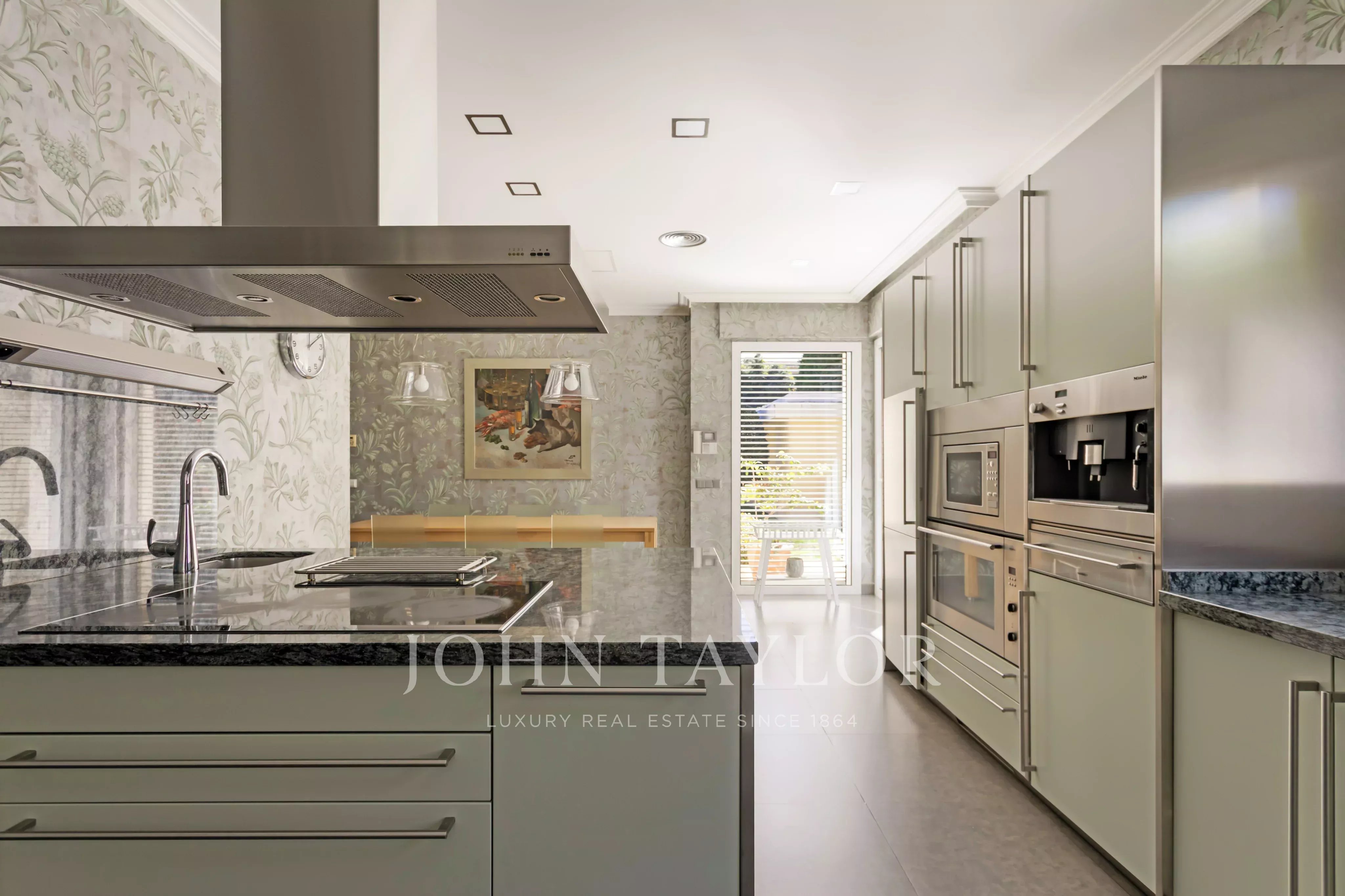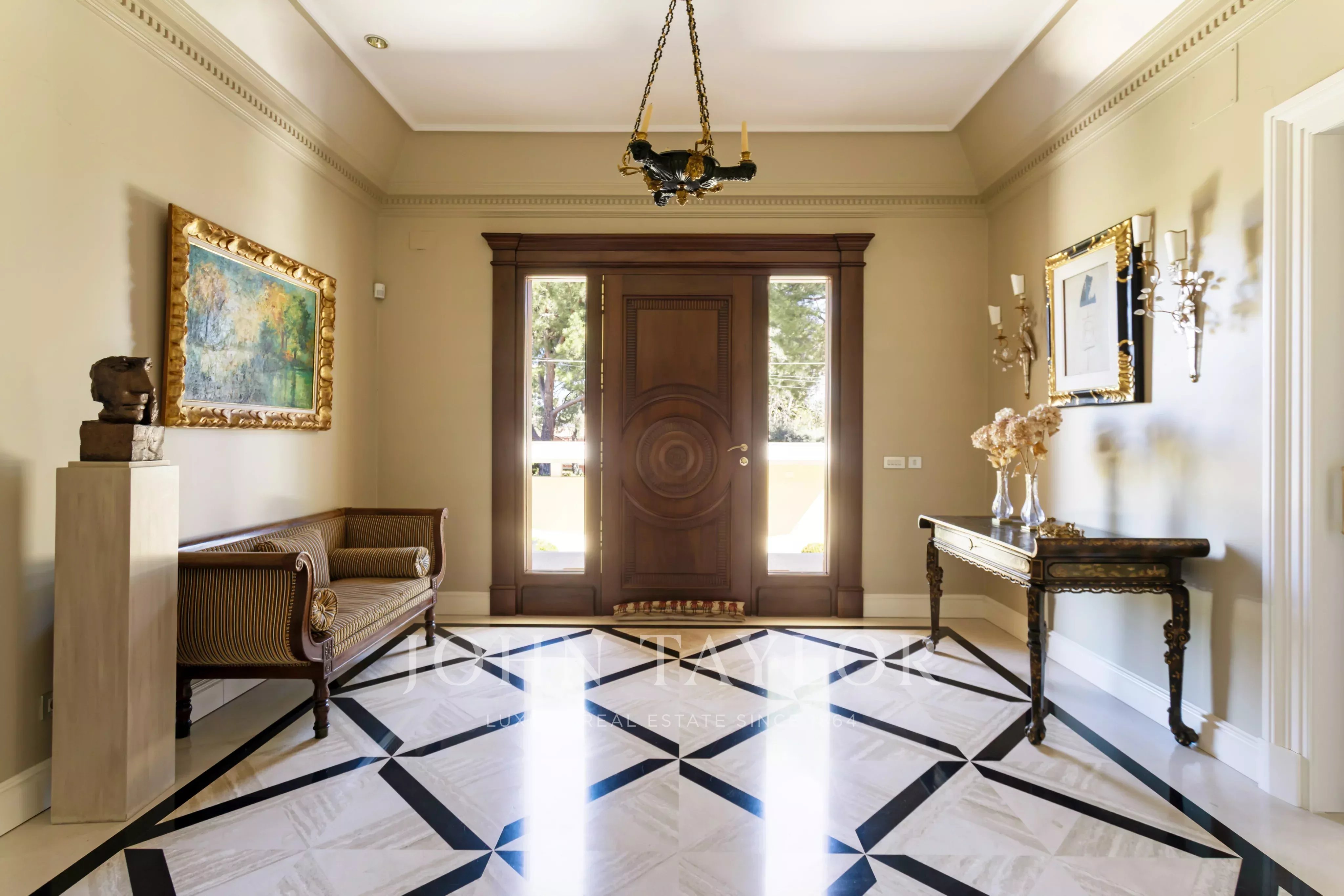 Das absolute Highlight ist der große, private Swimmingpool, der von einer grünen Oase mit prächtigem Rasen umgeben ist. Verbringen Sie unvergessliche Momente mit Familie und Freunden im exklusiven Außenbereich dieser Traumimmobilie. Die Top-Lage im begehrten Viertel Conde Orgaz-Piovera garantiert Ihnen Privatsphäre und hervorragende Lebensqualität in Madrid.