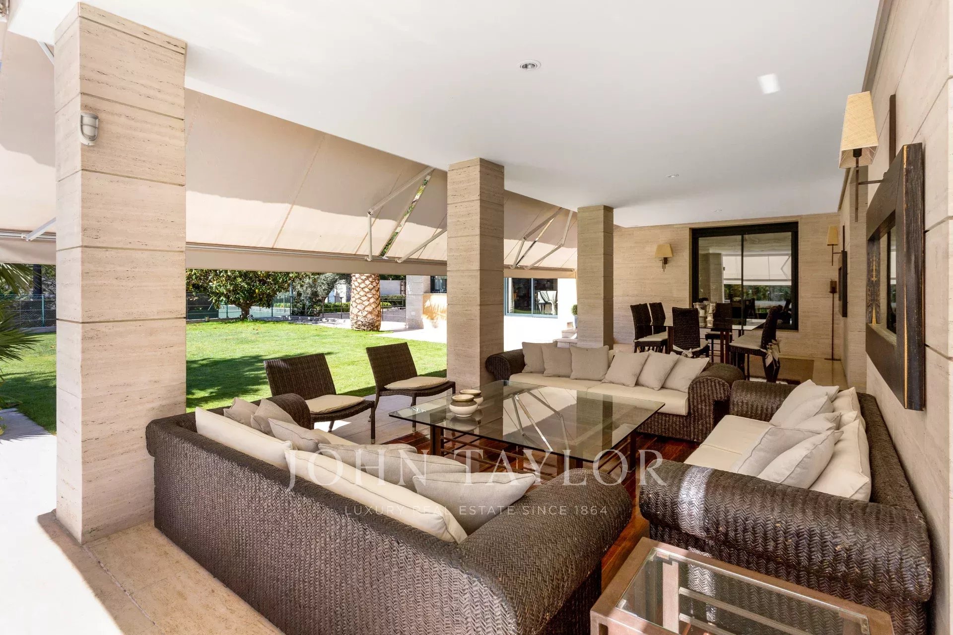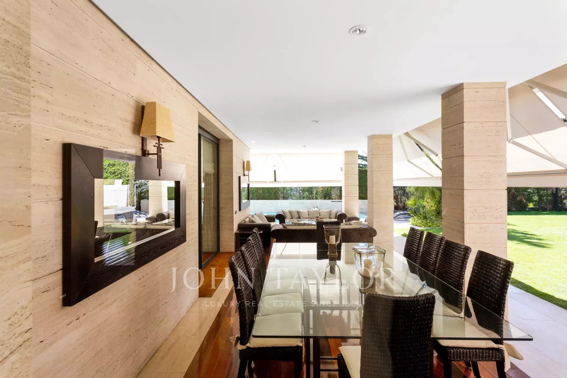 Markisen und elektrische Jalousien, Sicherheitsverglasung, Massivholzböden mit IPE-Finish.