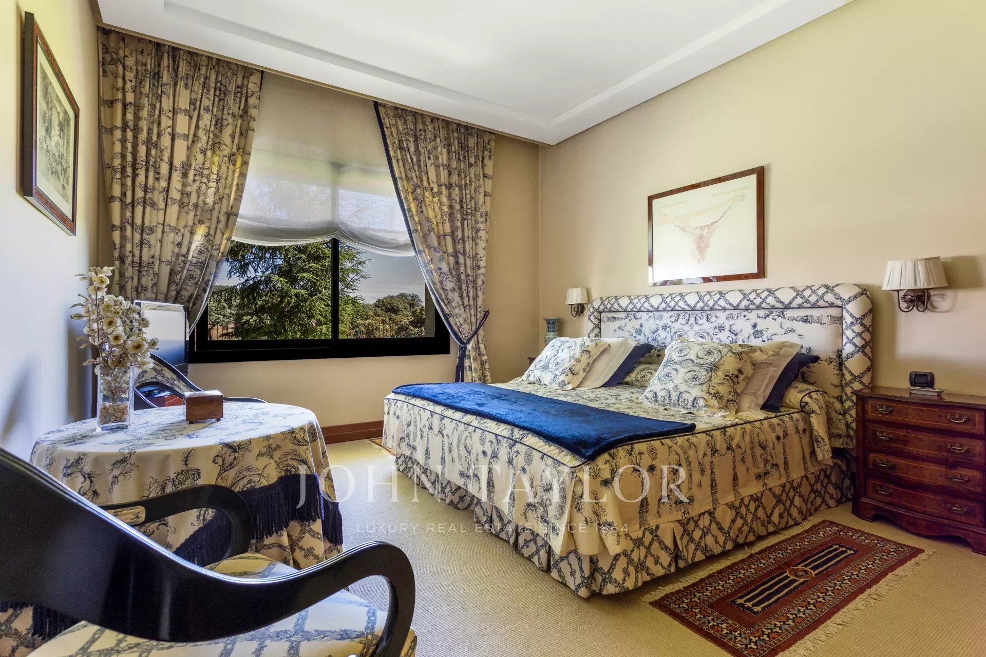 Im Obergeschoss befindet sich ein Arbeitszimmer mit Bibliothek, Büro und Lesebereich mit ausgezeichneter Beleuchtung. Hauptschlafzimmer im Marinestil mit zusätzlichem persönlichem Büro, großen Fenstern und Blick auf El Pardo. Beim Betreten des Hauptschlafzimmers befinden sich zwei große, unabhängige Ankleidezimmer, ein Flur mit Kleiderschränken und zwei Badezimmer: eines mit Toilette und ein weiteres komplettes Badezimmer mit Hydromassage-Dusche.