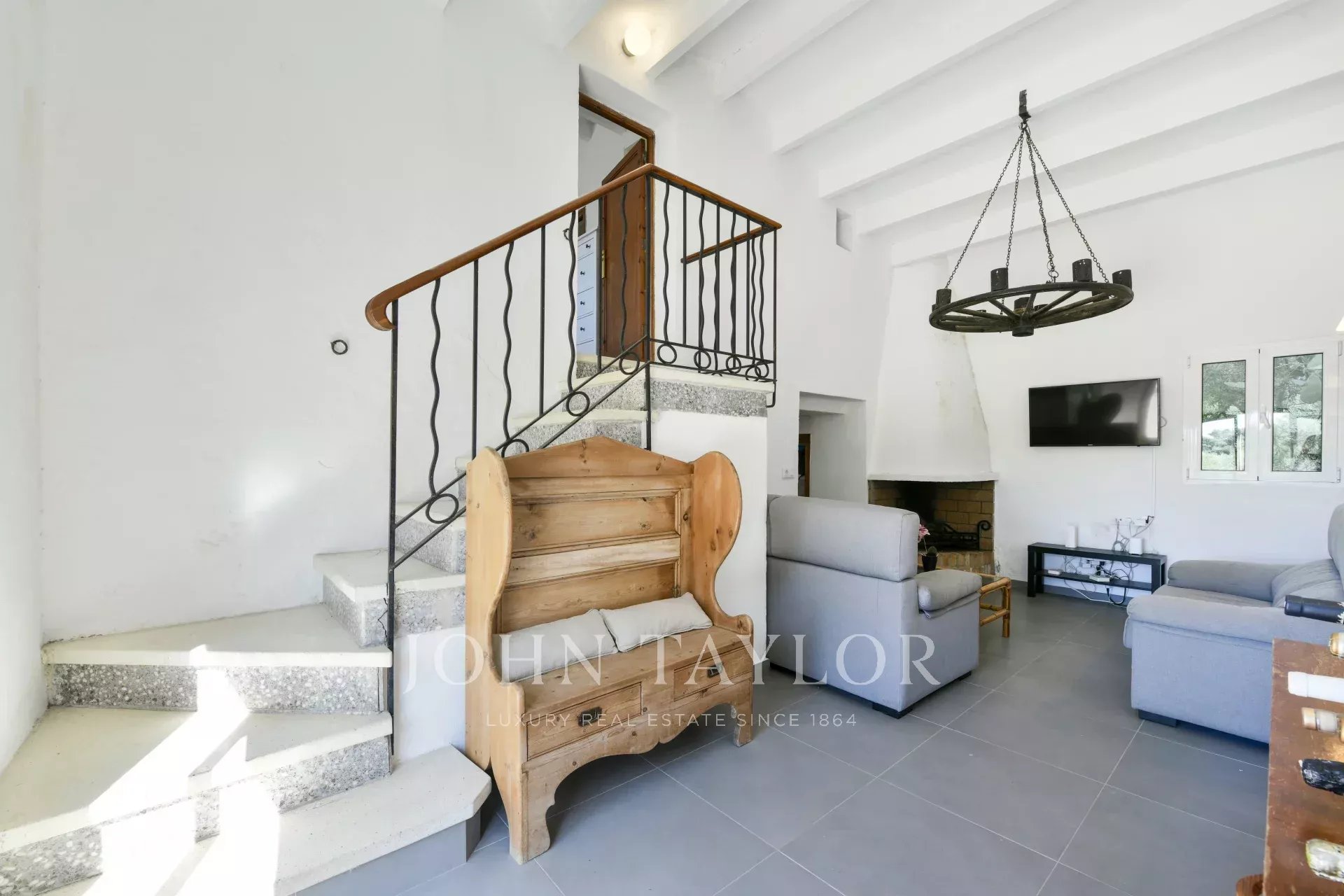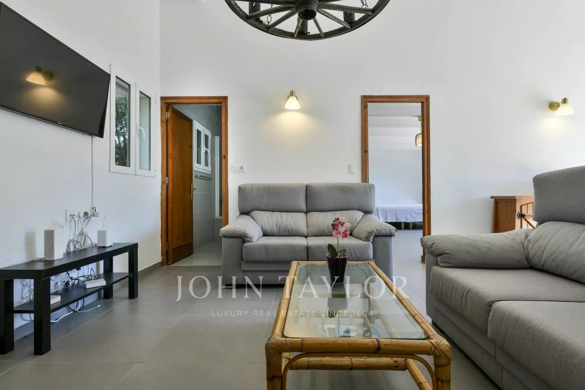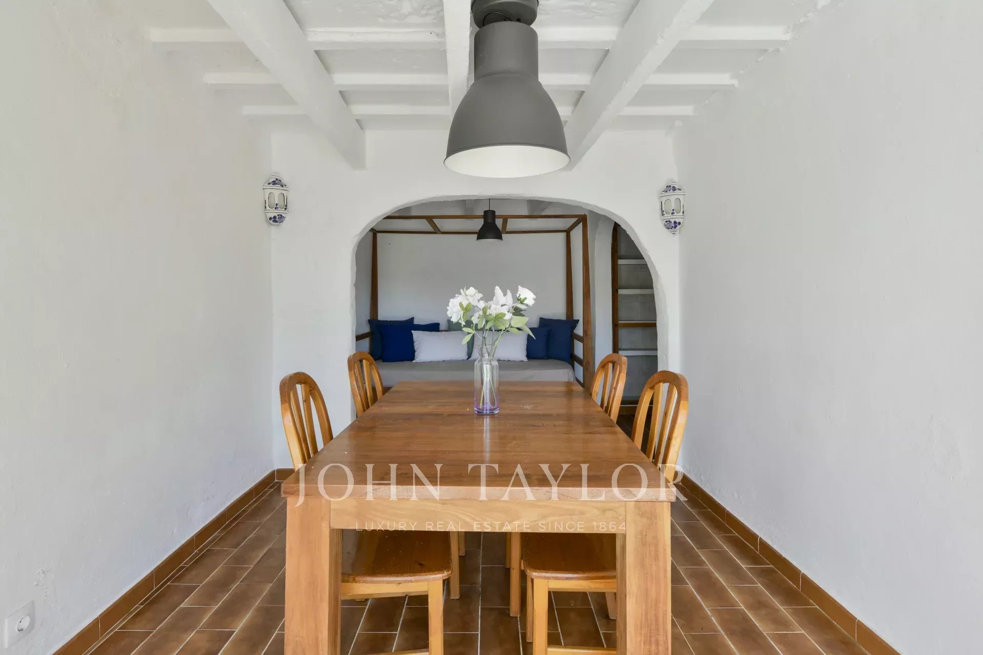Das 177 m² große Anwesen verfügt über ein gemütliches Wohnzimmer mit Kamin, eine voll ausgestattete, unabhängige Küche und ein helles Esszimmer mit direktem Zugang zur Terrasse. Im Erdgeschoss befinden sich außerdem ein komplettes Badezimmer und ein geräumiges Hauptschlafzimmer mit eigenem Bad.