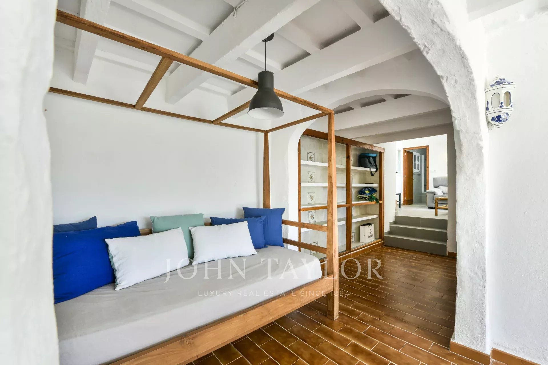 Im Obergeschoss befindet sich ein großzügiger, offener Raum, der derzeit als Schlafzimmer genutzt wird und als zweites Wohnzimmer, Spielzimmer oder Arbeitszimmer genutzt werden kann, sowie zwei weitere kleinere Schlafzimmer, die sich perfekt für Gäste oder als Büro eignen.