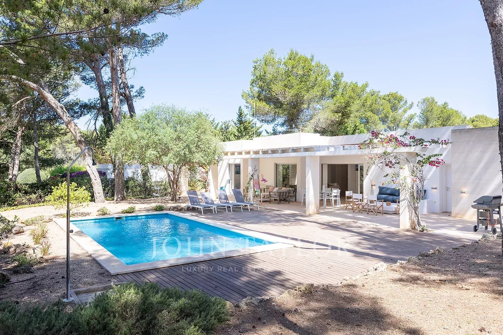 Exklusive Villa mit TOURISMUS-LIZENZ in Son Parc, Menorca, ein privater und eleganter Rückzugsort. Auf einem Grundstück voller Grün gelegen, bietet diese Villa einen einzigartigen Raum inmitten der Natur, mit Blick auf den Wald, der Ruhe und Privatsphäre garantiert. Die 200 m² große, modern gestaltete Immobilie verfügt über 4 Schlafzimmer, 3 Bäder und ein geräumiges Wohnzimmer. Der Garten und der eigene Swimmingpool sind der ideale Ort, um sich in absoluter Privatsphäre zu entspannen. Ausgestattet mit hochmodernen Ventilatoren in allen Räumen, sorgt es für eine angenehme und erfrischende Atmosphäre. Ein exklusives Juwel für alle, die Luxus und Ruhe in einer unschlagbaren Umgebung suchen, nur wenige Gehminuten vom Golfplatz entfernt.