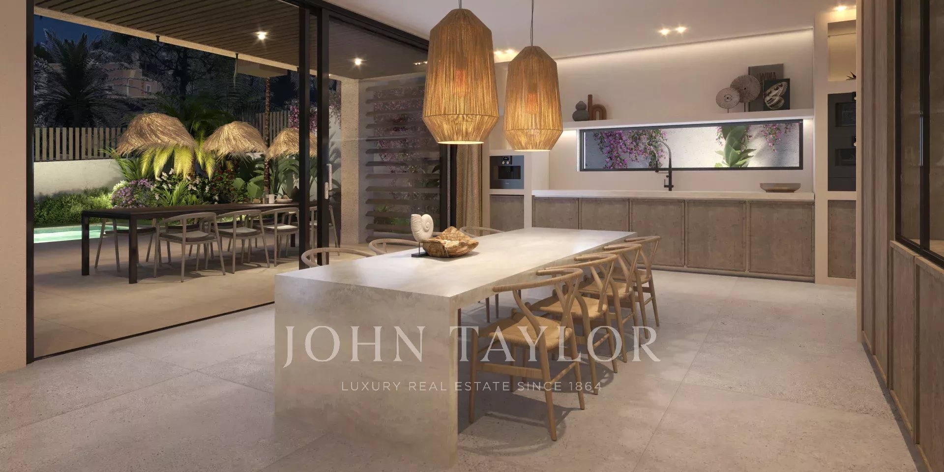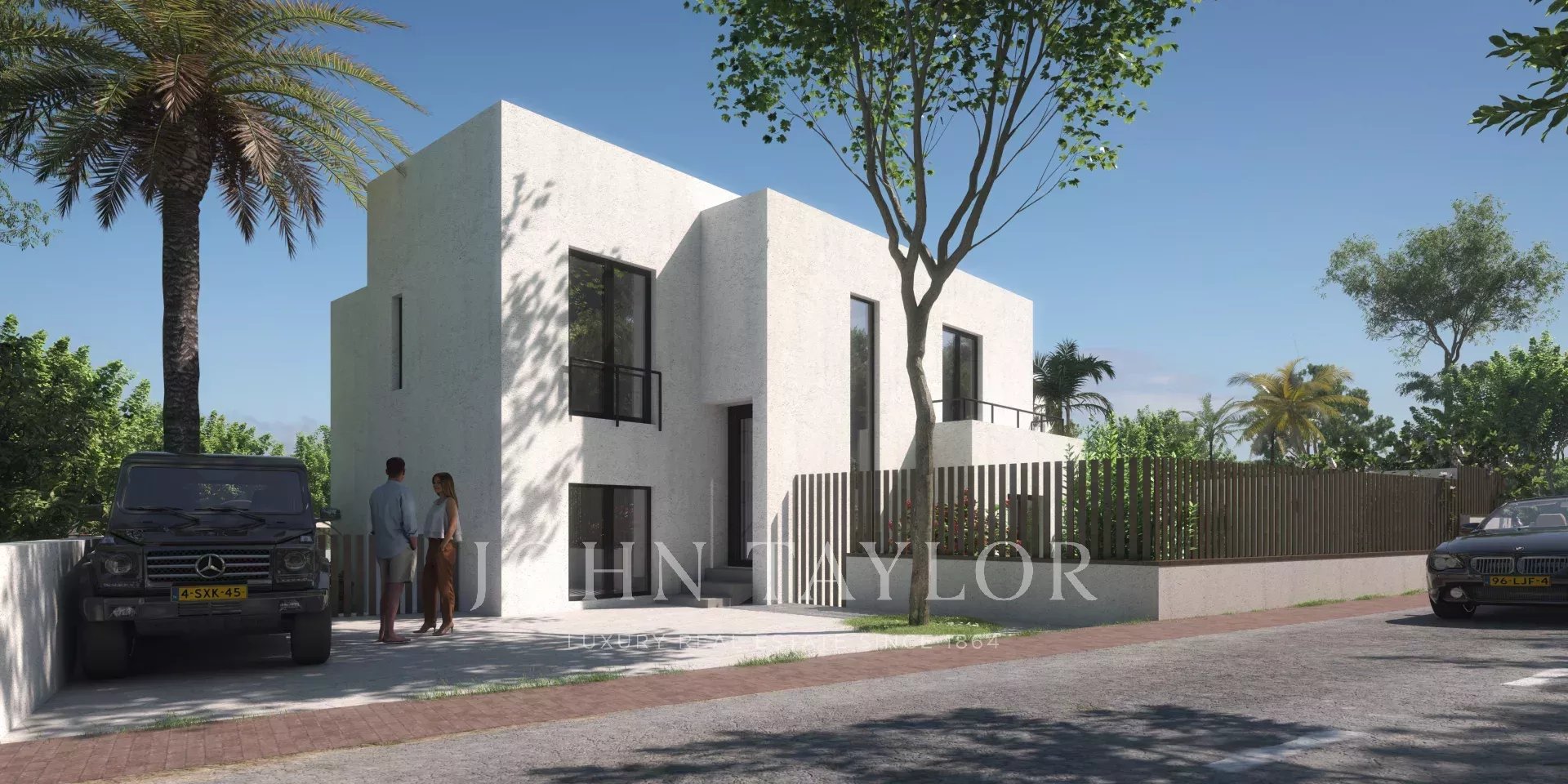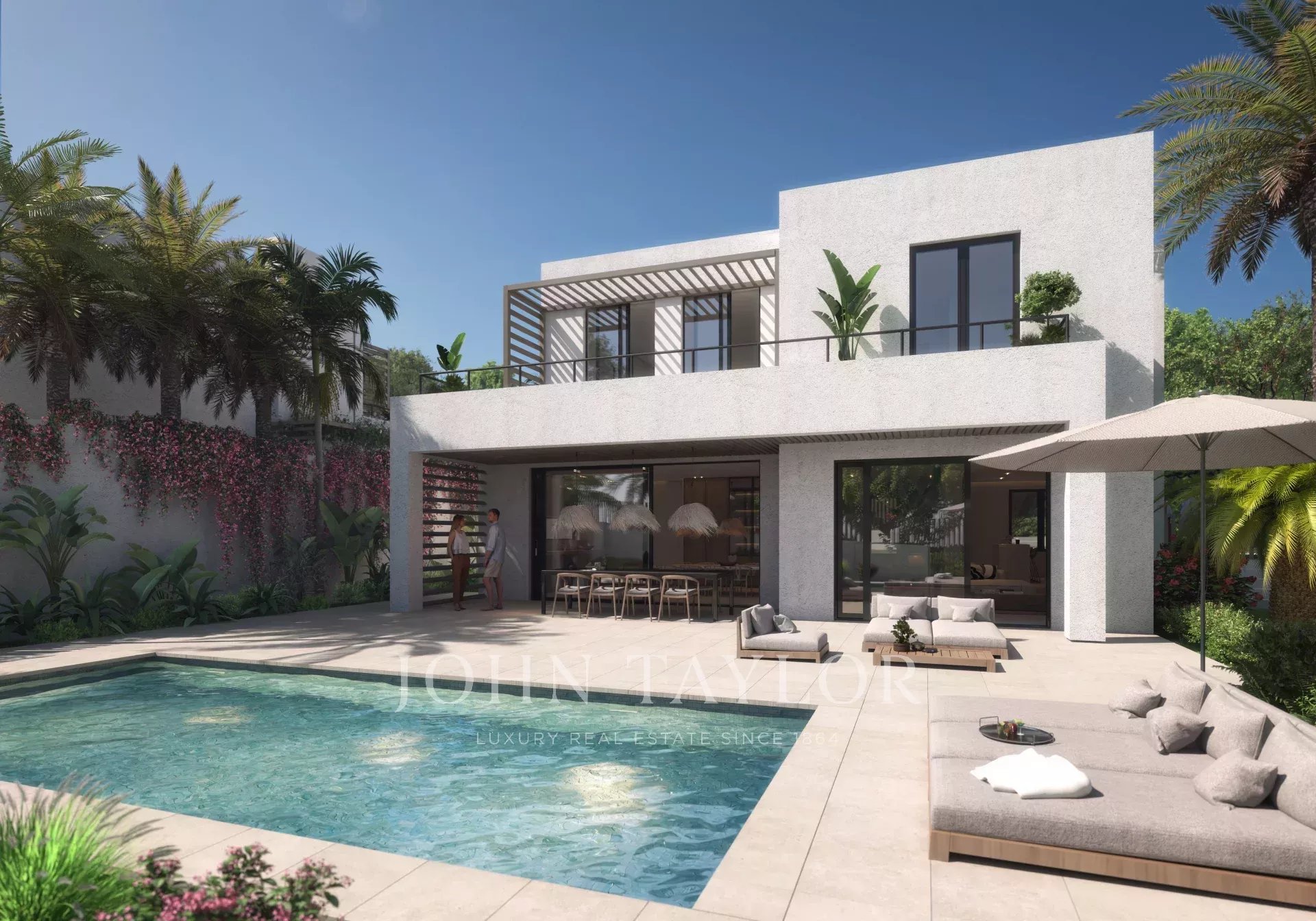 Der Außenbereich ist als private Wohlfühloase gestaltet – mit Garten, Pool, Chill-out-Zone und der Möglichkeit für eine Sommerküche, Grillplatz oder Kamin. Drei private Stellplätze sind ebenfalls inbegriffen.