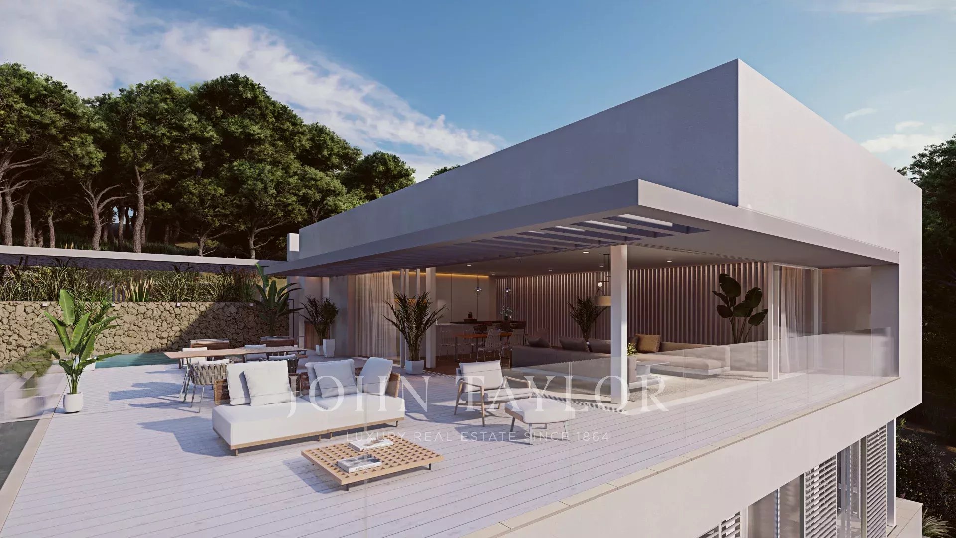 Mit großer Sorgfalt wurden Studien durchgeführt, um sicherzustellen, dass die Sichtachse dieses Grundstücks auf die Bucht von Camp de Mar gerichtet ist. Es wurden auch Höhenstudien für die Terrassen der Wohnräume durchgeführt, um den Blick auf die Bucht und die Privatsphäre für jeden Wohnraum zu gewährleisten. Die Krümmung der Auffahrt, die die Zufahrt darstellt, sorgte dafür, dass ein Grundstück nicht die Sicht auf ein anderes versperrte.