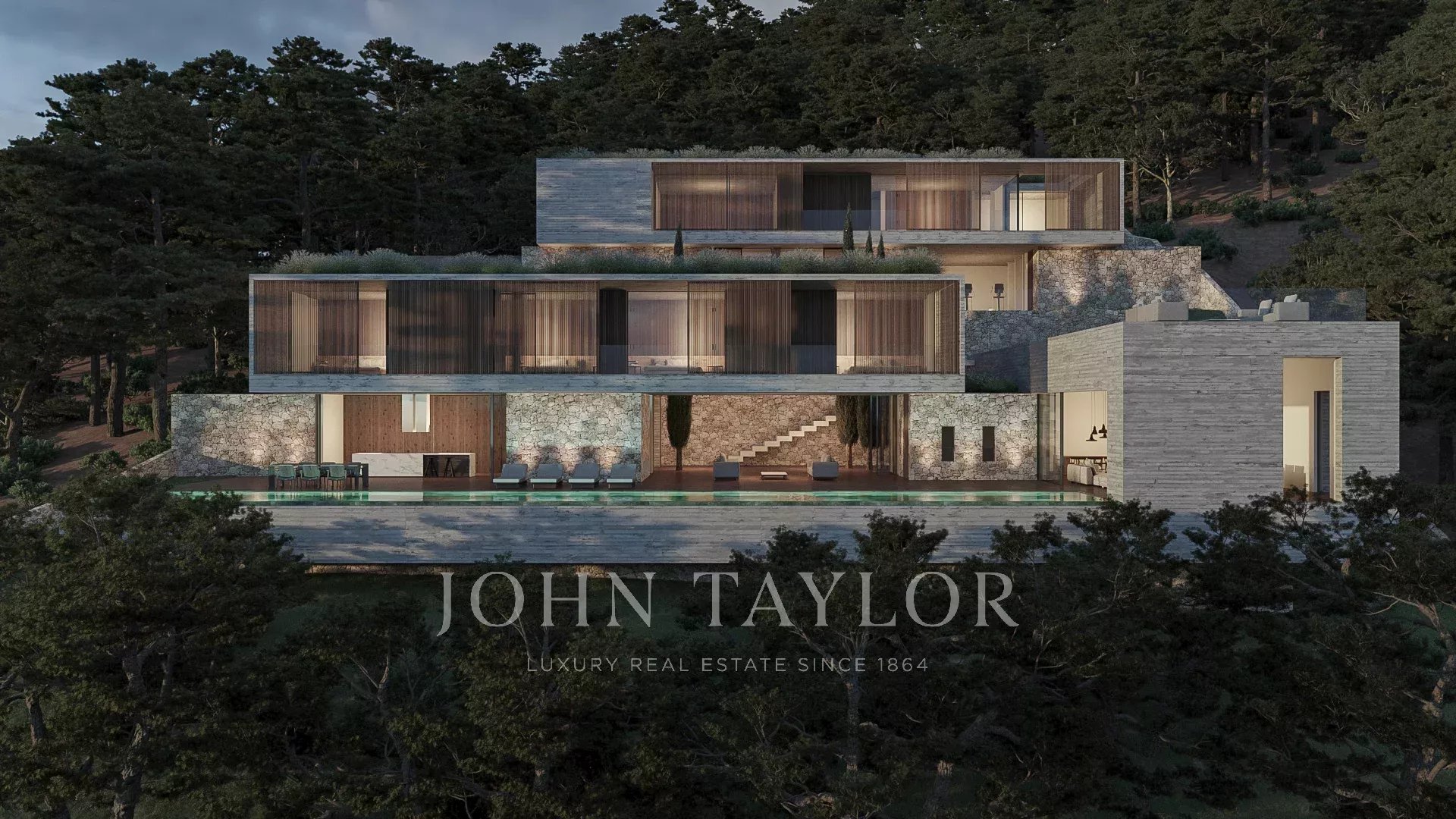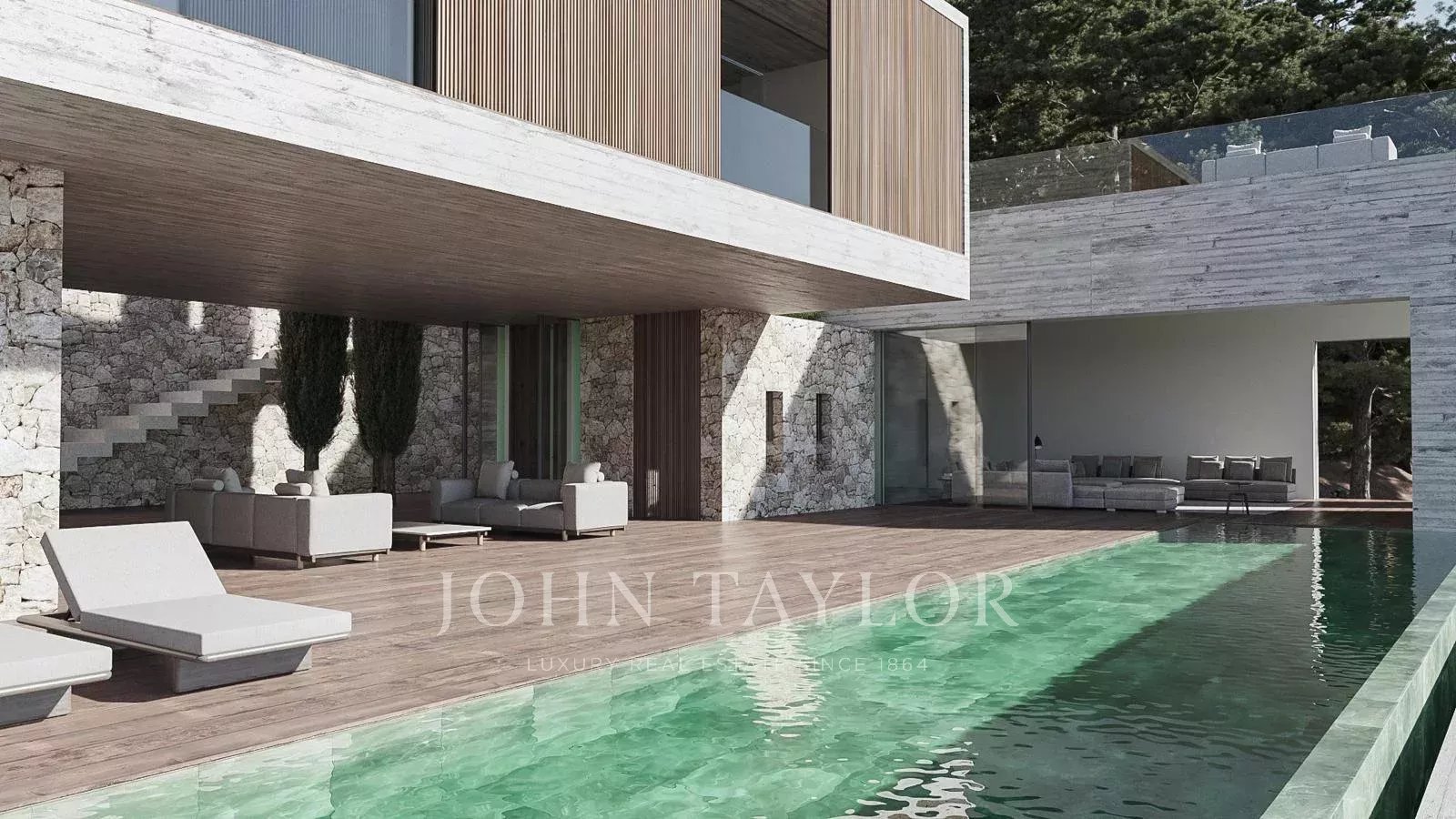Die nächste Ebene ist dem Tagesbereich gewidmet, mit einer Gästetoilette, einer spektakulären Küche, einschließlich einer zweiten Chefküche, einem umfangreichen Weinkeller und einem Wohn-/Esszimmer mit direktem Zugang zur Außenterrasse, einem "Poolhaus" mit Umkleidebereich, Bad und Dusche.