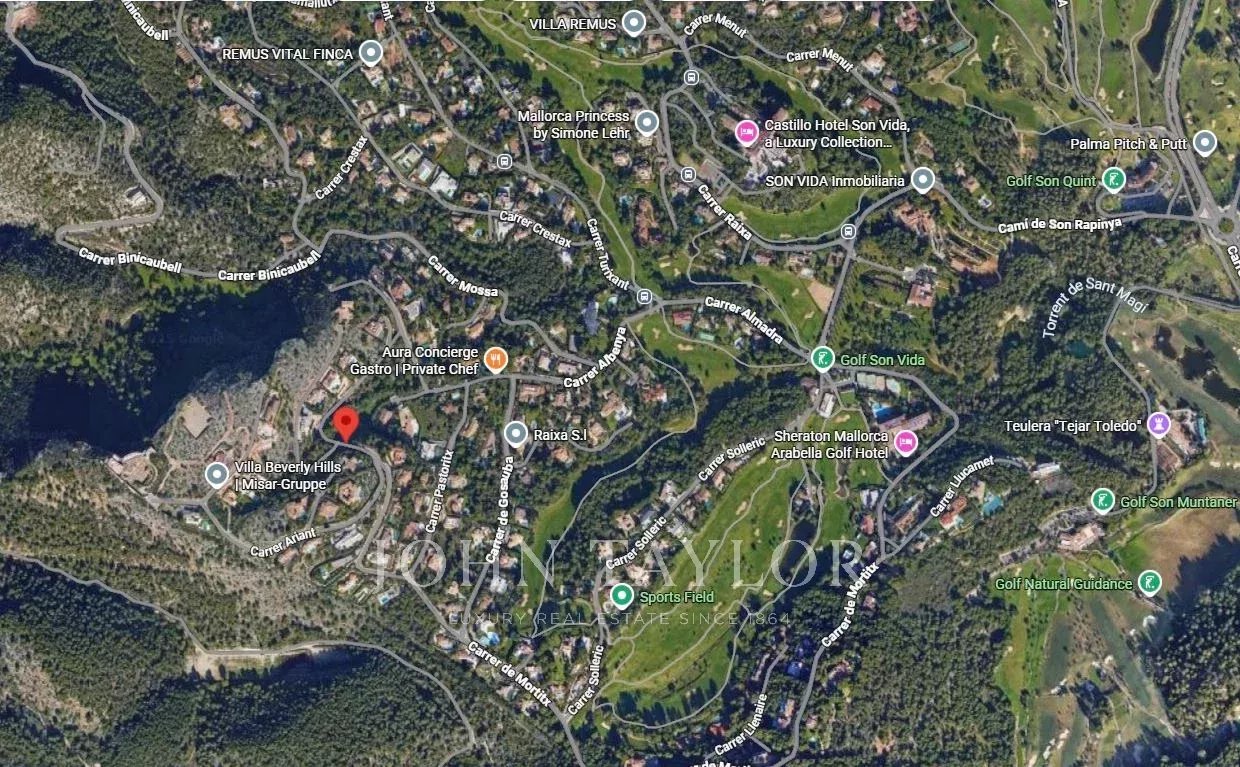 Eine hervorragende Gelegenheit für eine Traumvilla bietet dieses Grundstück mit einem Bauprojekt in einer der begehrtesten Gegenden von Son Vida. Mit einer Gesamtgrundstücksgröße von 3.053 m2 bietet es die perfekten Voraussetzungen für eine luxuriöse Villa mit Panoramablick über die Nachbarschaft und viel Privatsphäre. Entworfen von einem der renommiertesten Architekturbüros der Insel, wird das zukünftige Haus die höchsten Standards in Bezug auf Materialien, Design und Qualität setzen. Es wird 6 Schlafzimmer, 6 Bäder, einen 73 m2 großen Salzwasserpool, einen Spa- und Fitnessbereich sowie Parkplätze für bis zu 5 Autos bieten. Als eines von vier Objekten, die in der Nachbarschaft entwickelt werden, ist es wirklich eine einzigartige Gelegenheit. Es besteht die Möglichkeit, das Projekt mit den bereits beteiligten Architekten zu bauen. Der angegebene Preis beinhaltet keine weitere Planung, Konstruktion oder Änderungen an dem aktuellen Projekt.